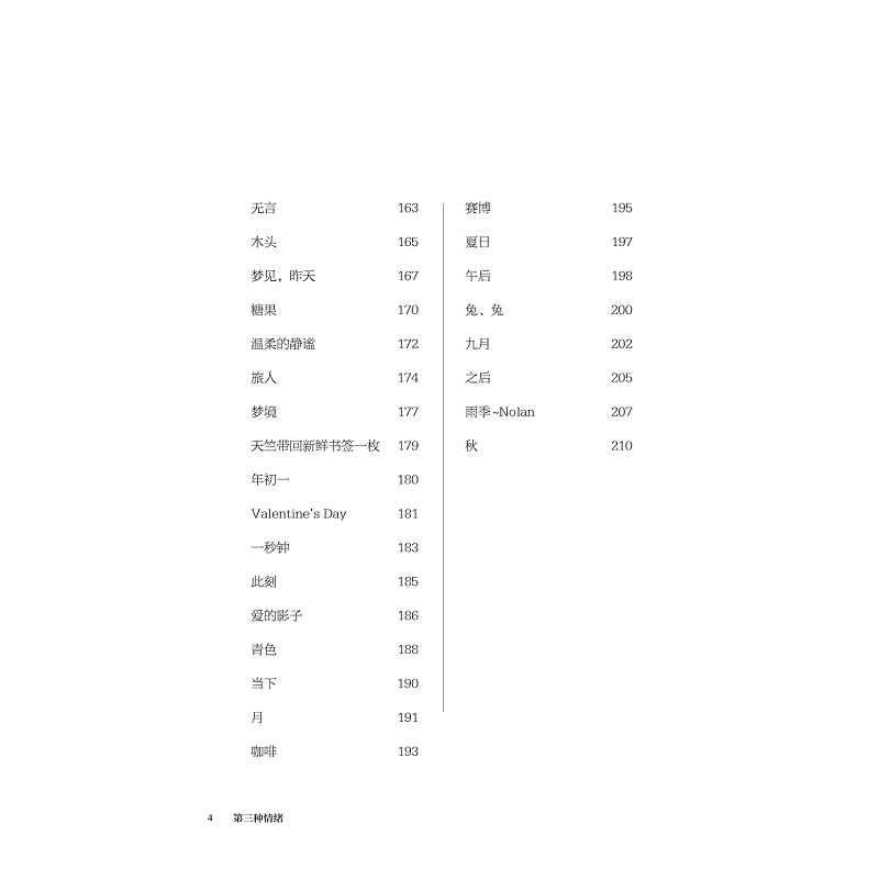 作者认为,写诗是一件自然而然的事,是一种情绪的抒发,一个鲜活瞬间的记录。本书记录了某段时光涌进作者脑海时引发的美好回忆,以及当下片刻的发现和触动,有时极简,有时极繁。作者种种不一样的心绪,自然而然汇成一些句子,它们仿佛吉光片羽,照亮她依旧时时不安波动的内心。当意识转化为语言,繁也就渐渐趋于简,不安和波动也就渐渐远去。时间流逝,当一切都可以被接纳和被梳理,那就是作者认为书写和记录的意义所在。人在不同的时期所需求的东西也是很不一样,每一个片刻都在成长,作者希望通过本书让每个人都能找到自我陪伴的最佳方式,去体会生命原本自有的喜悦,无论置身于怎样的环境,都能去发现生活中种种不同的美好,哪怕是微小的平凡的,都能在其中感受到活着的快乐,呼吸与同。