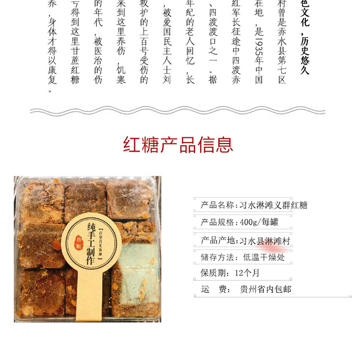 遵义习水【淋滩红糖】400g/罐 古法熬制 沙软绵密 纯手工制作 无添加 部分地区不发货