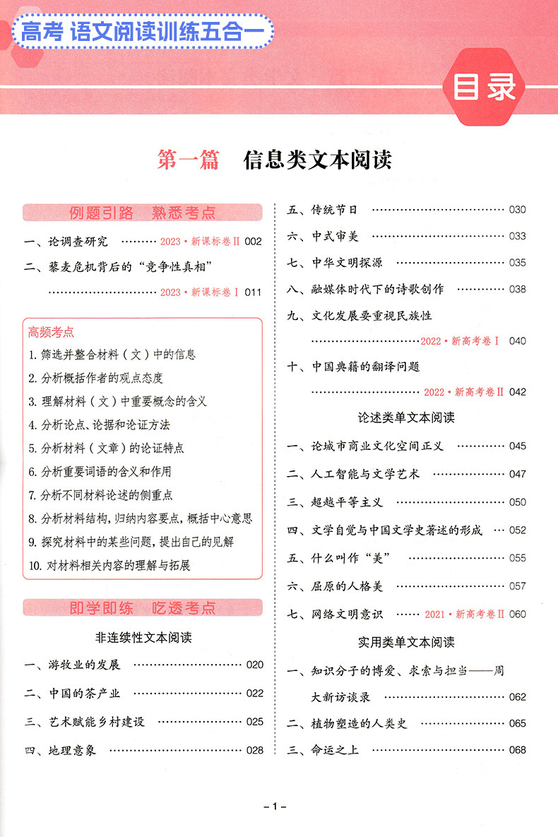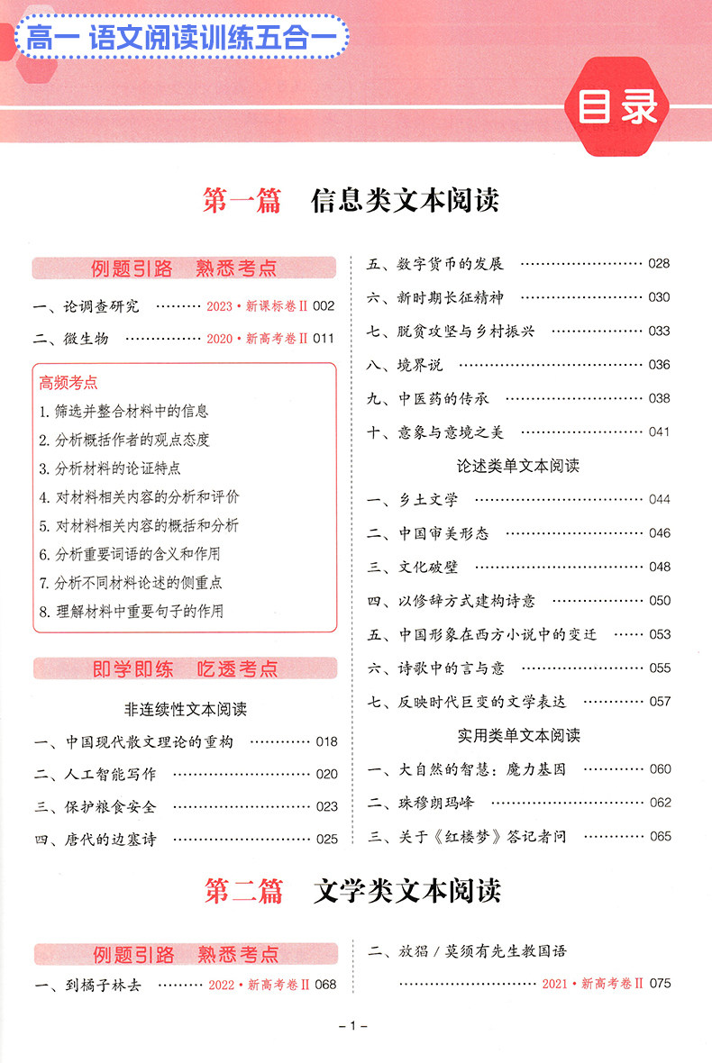 2025一本高中语文阅读训练五合一文言文古诗文现代文高一二三高考