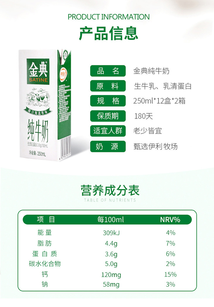 【百汇到家】伊利金典纯牛奶250ml/盒 【12盒/箱】