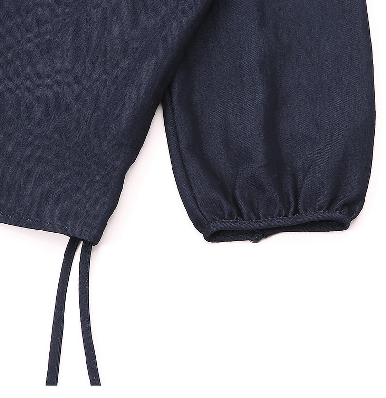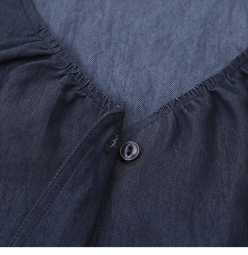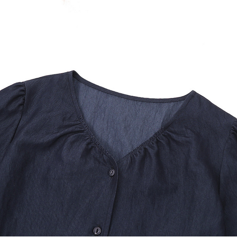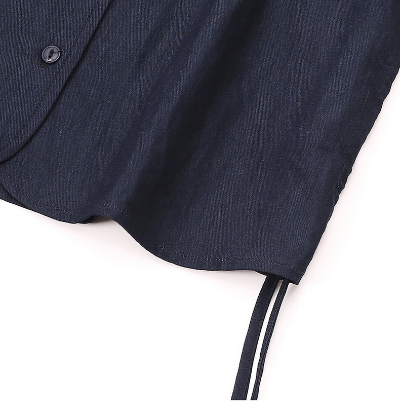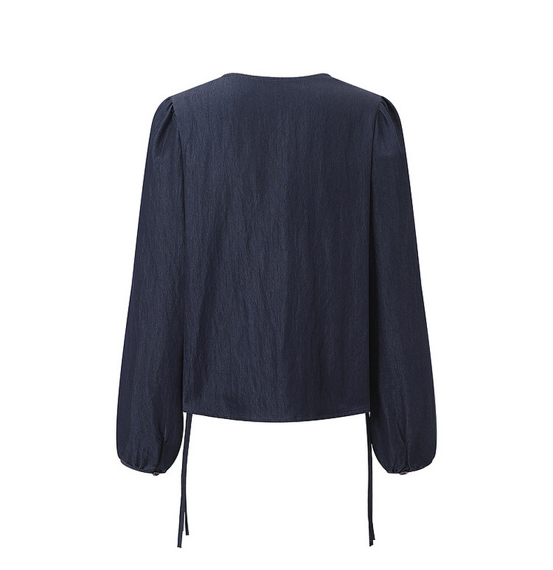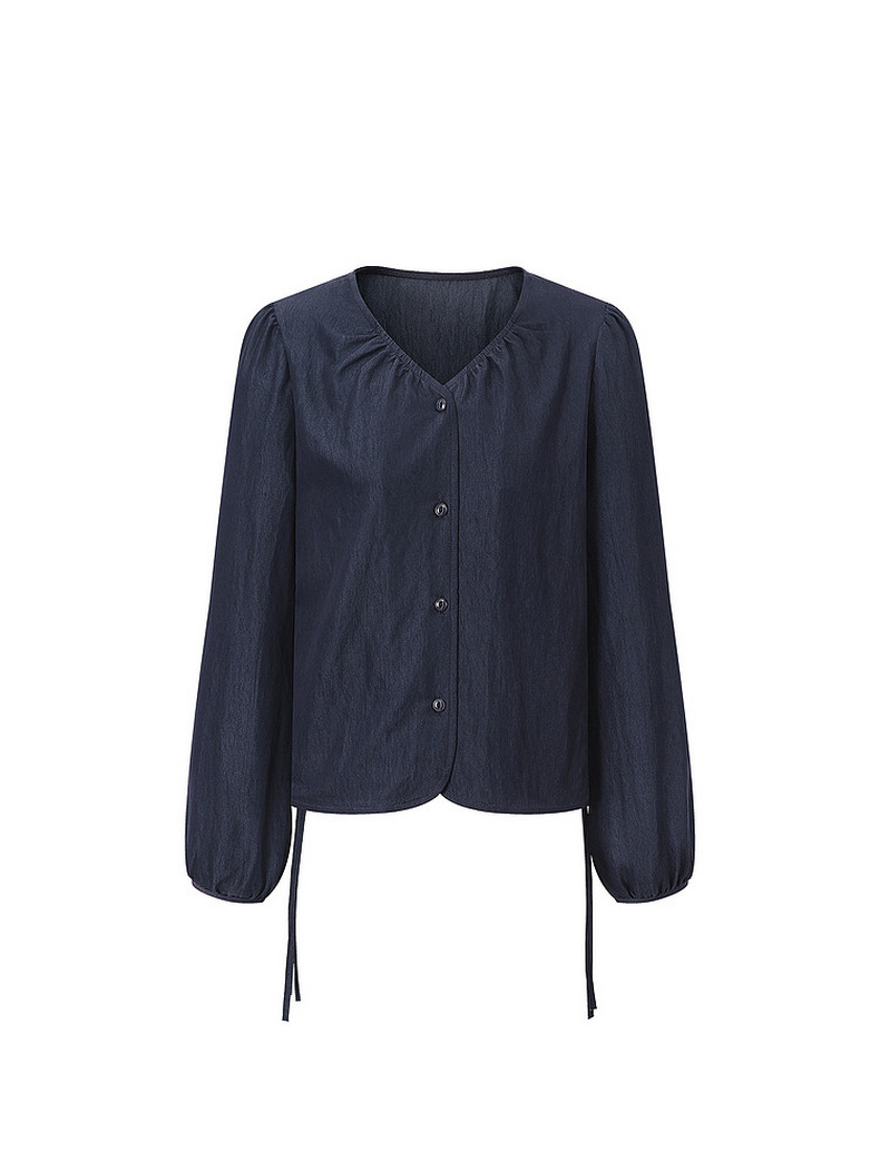 天猫同步【垂坠~免熨烫】拉夏贝尔/La Chapelle气质时尚V领排扣两侧系带设计仿牛仔长袖衬衫舒适上衣女