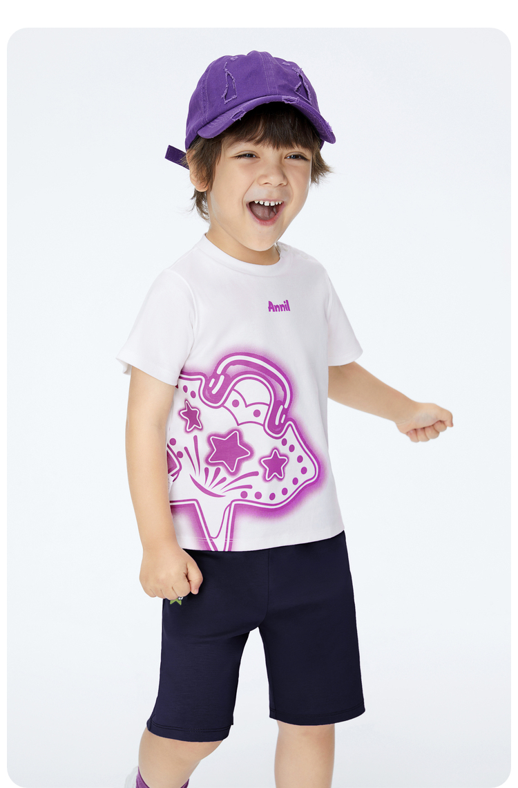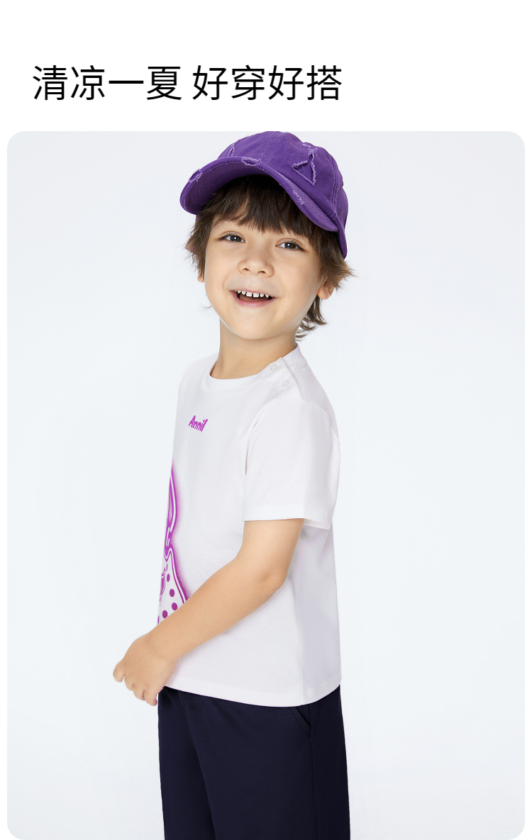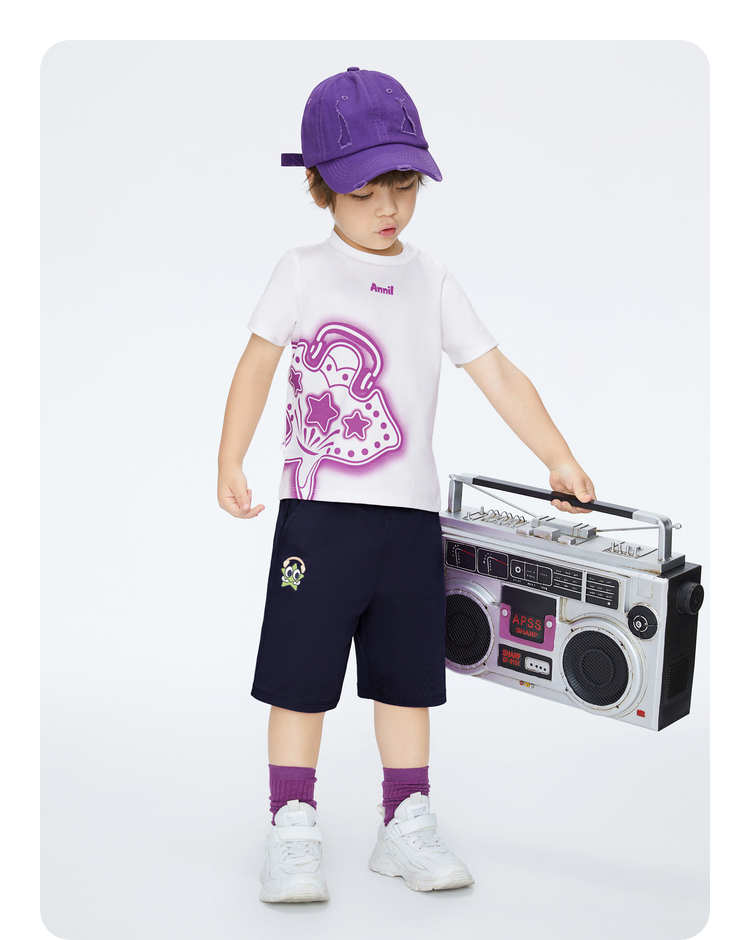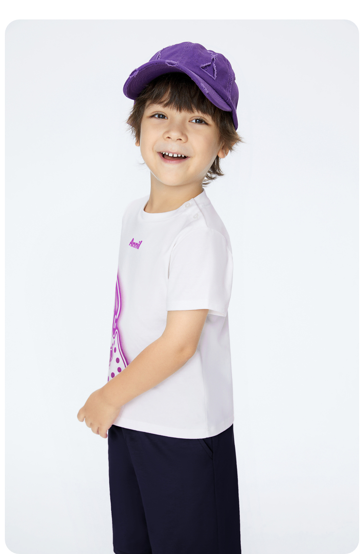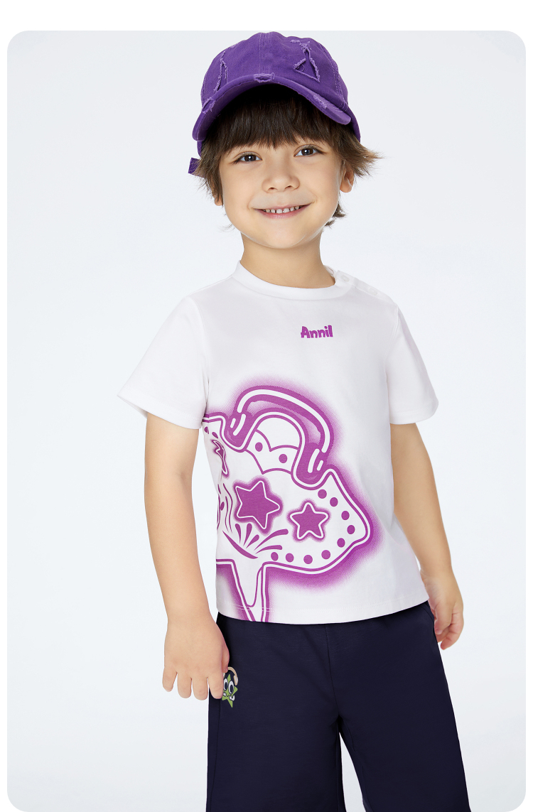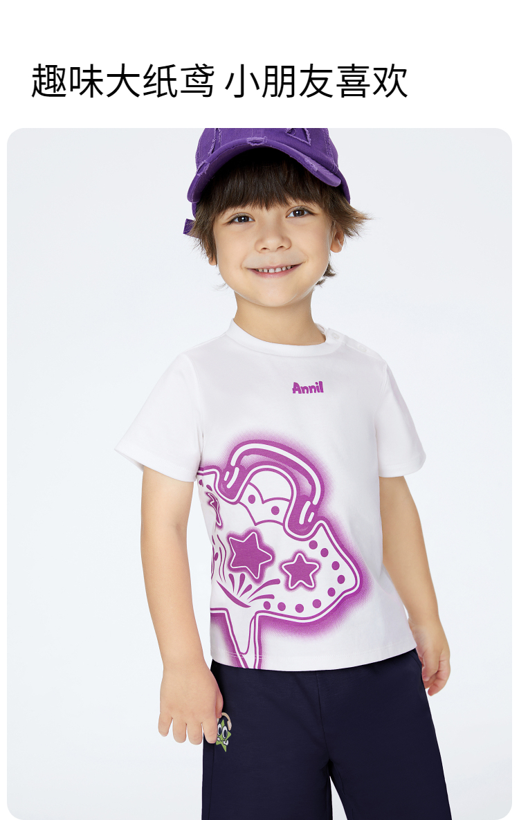 男童趣味全棉T恤短袖圆领上衣夏季新款安奈儿童装实体店同款XB421671
