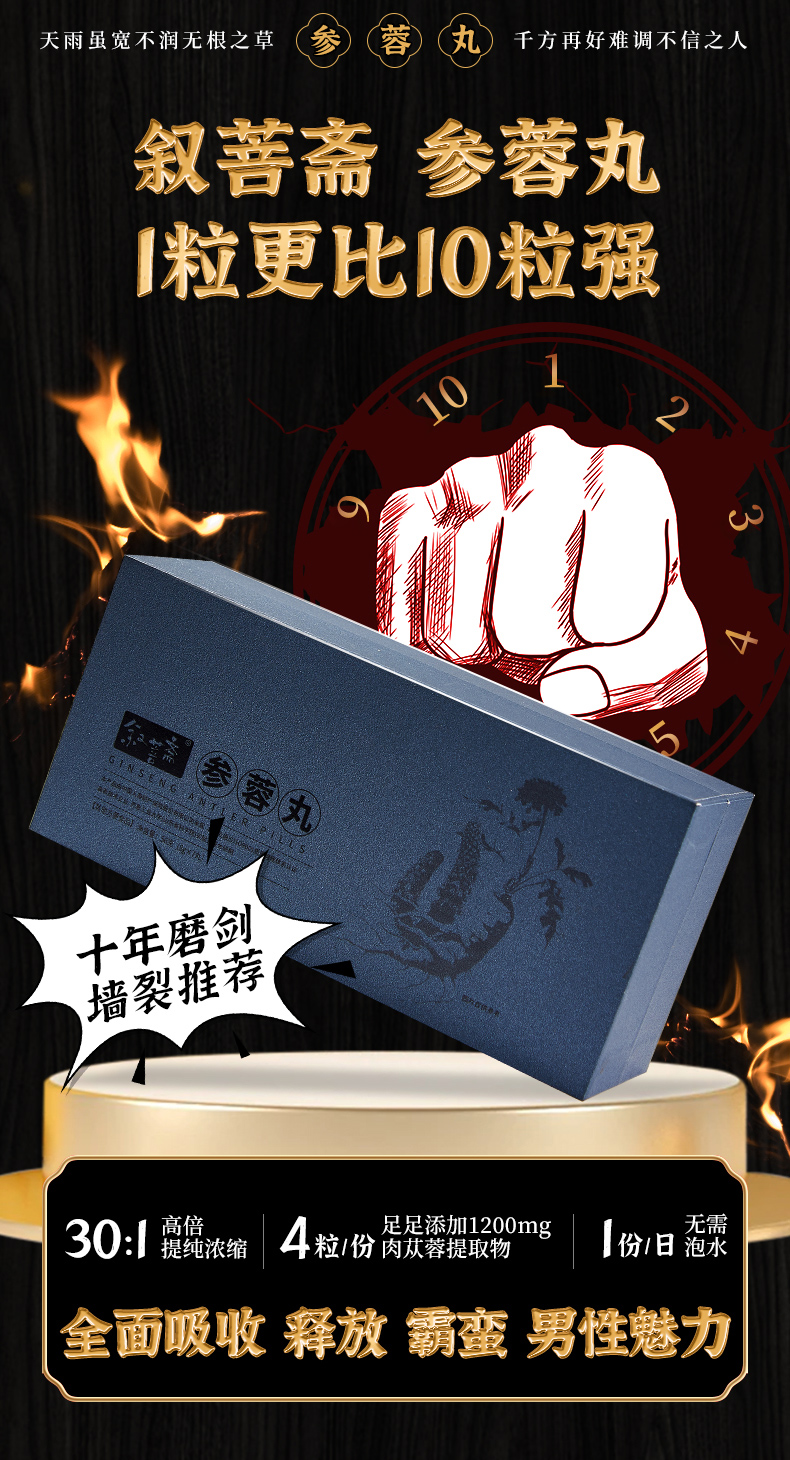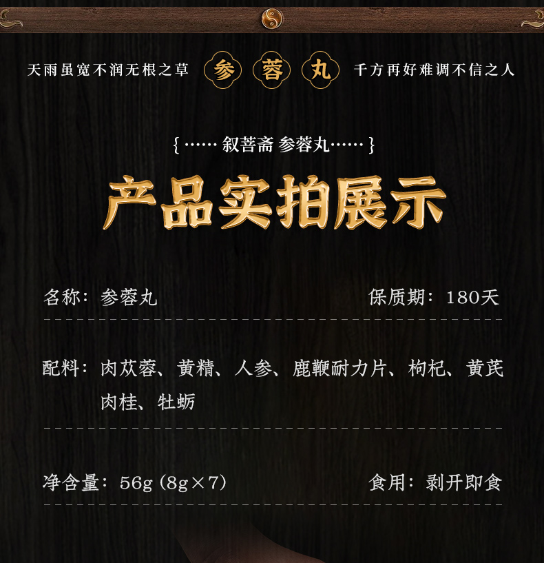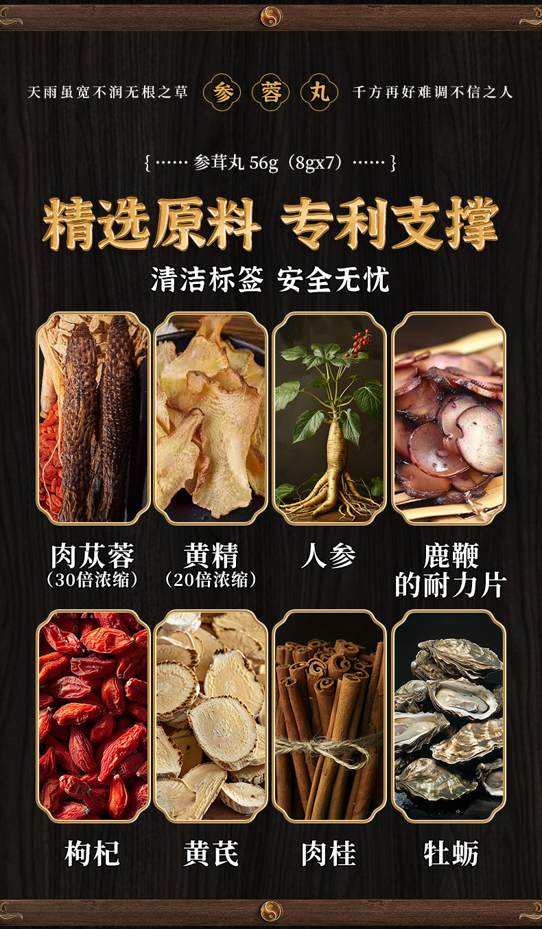 【2盒立减100】参蓉丸 内蒙古阿拉善肉苁蓉 牡蛎 鹿鞭 黄精 人参 纯植物成分 古法制丸 56g/盒