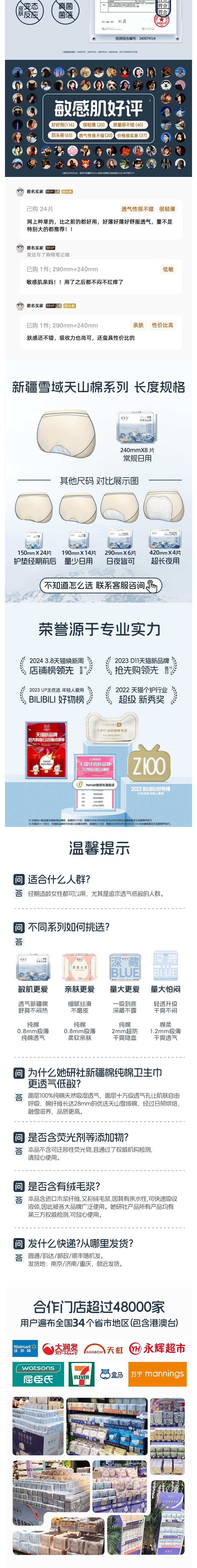 她研社 新疆棉卫生巾超长夜用420mm*4片超薄加大尾扇 6974354666202