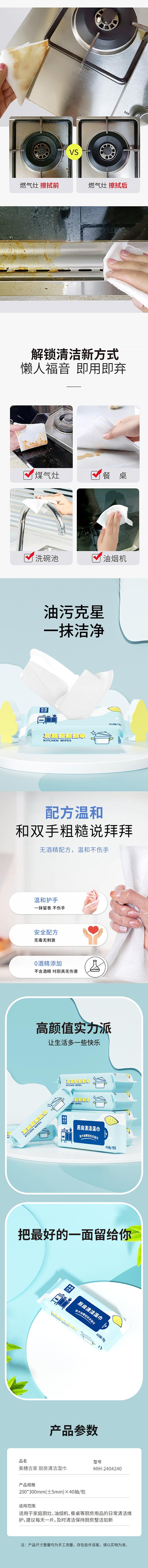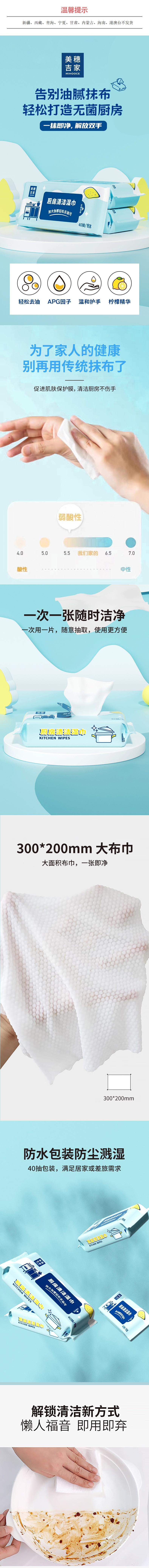 美穗吉家 厨房清洁湿巾加大款40抽/包 MIH-2404240