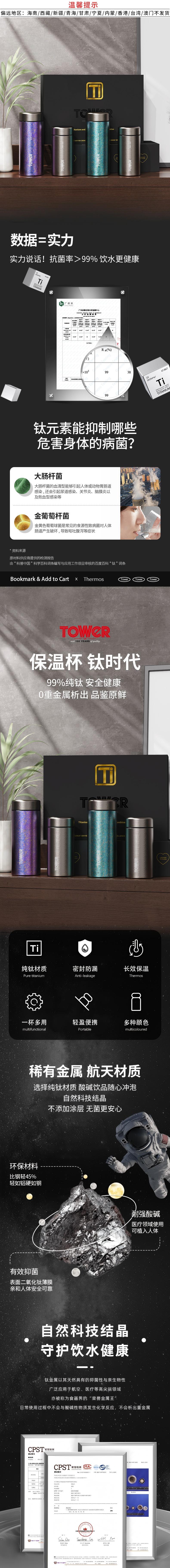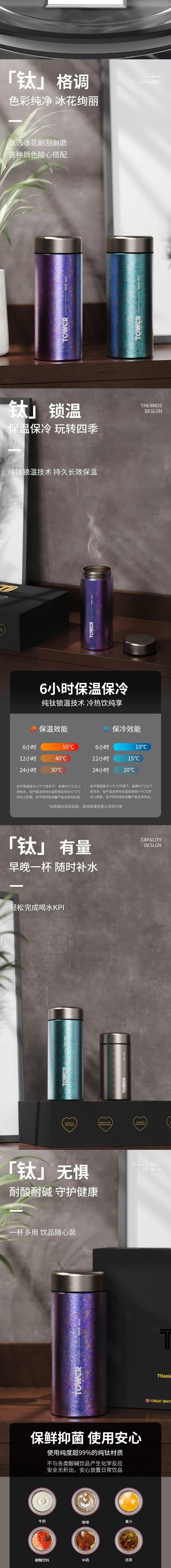 TOWER 钛合双生钛杯组合300ml+200ml蓝色 T865038B
