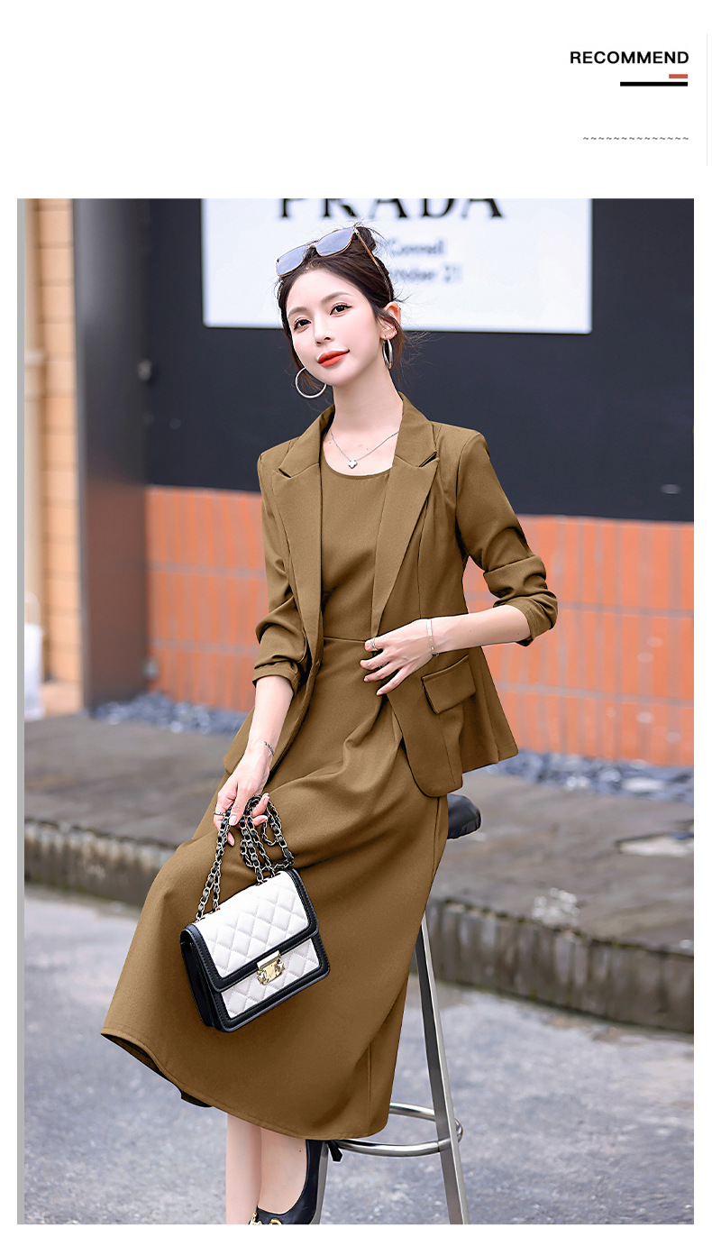 吊带裙西装外套两件套,百搭气质修身连衣裙两件套HR-HMQY2809
