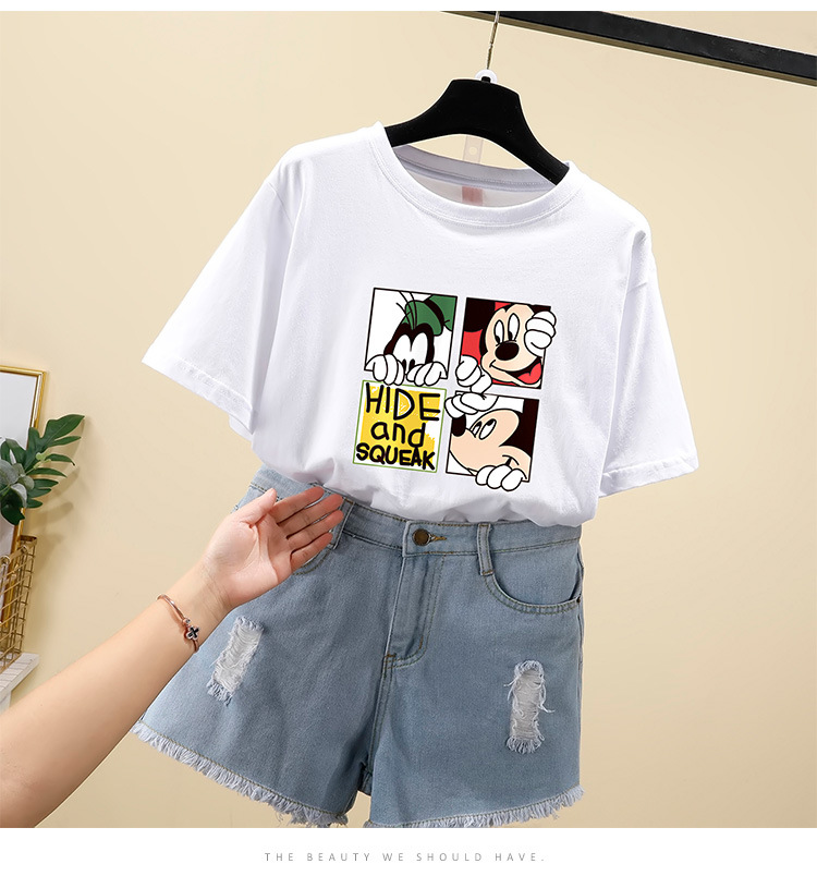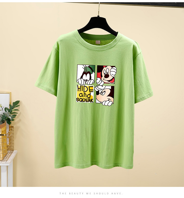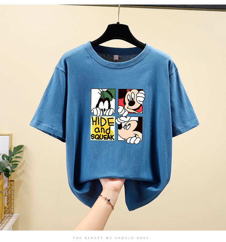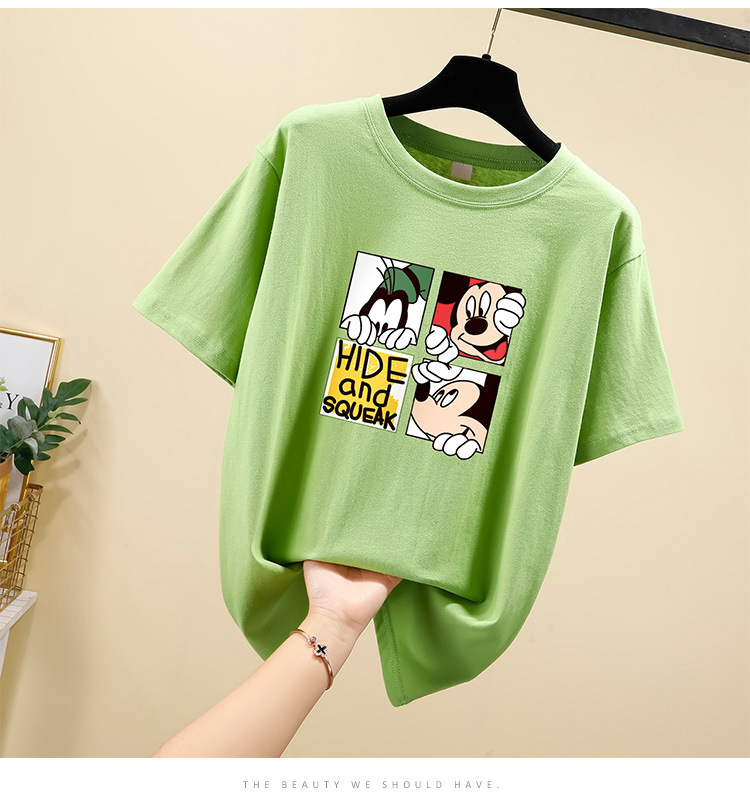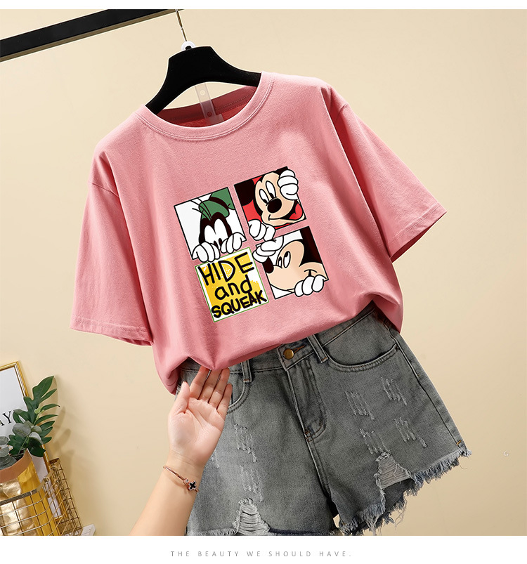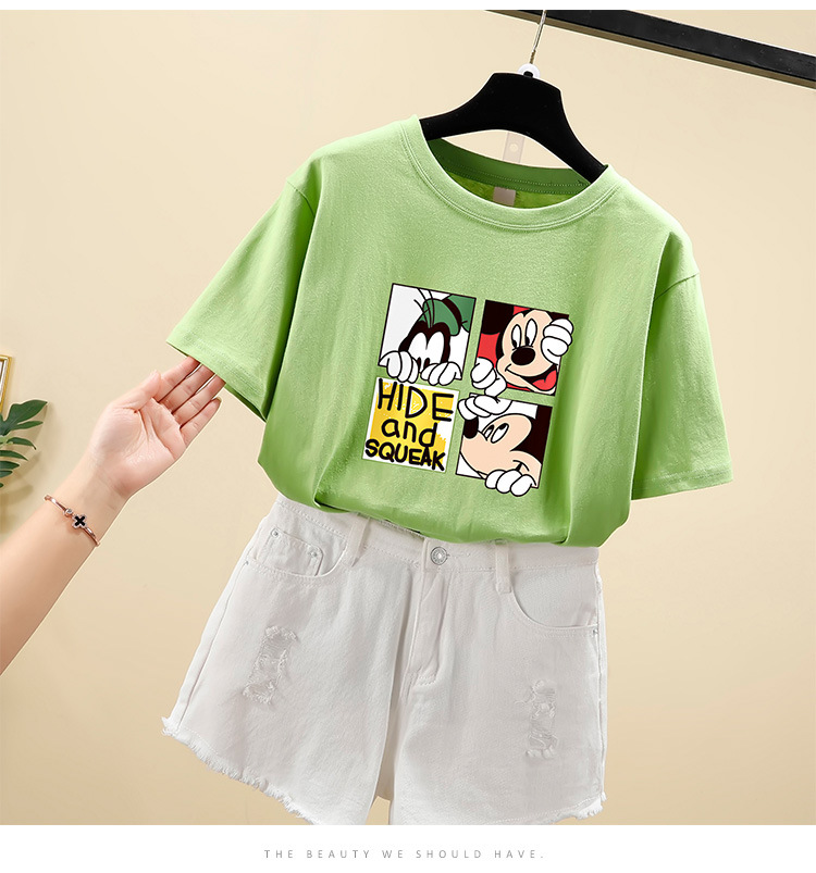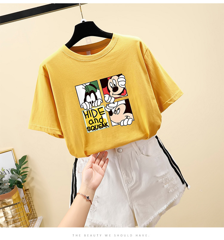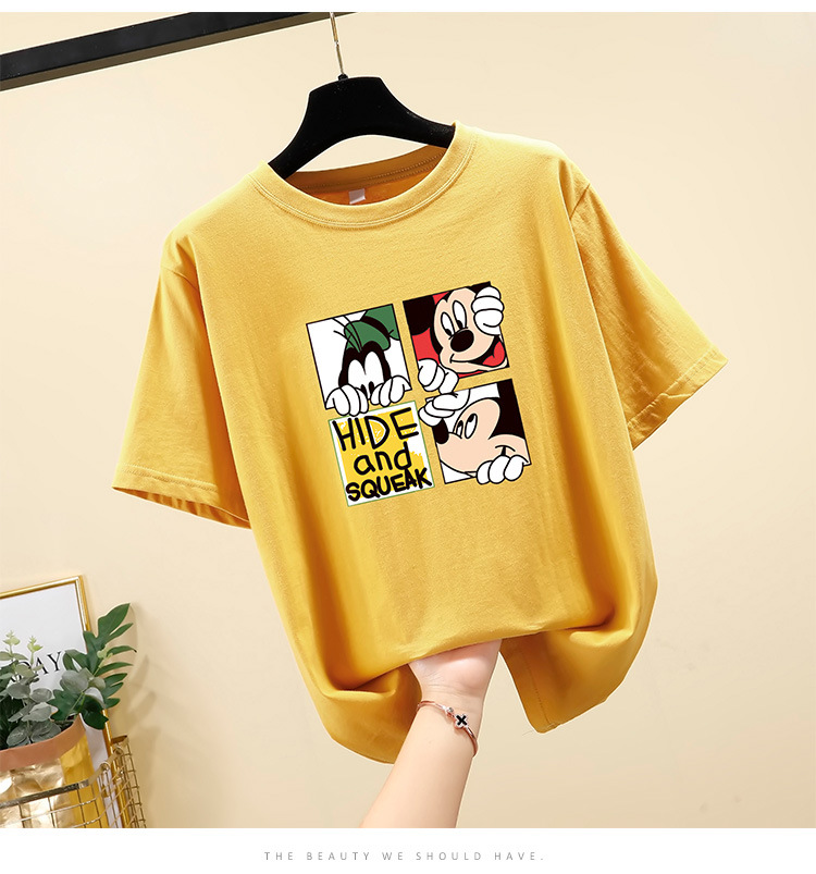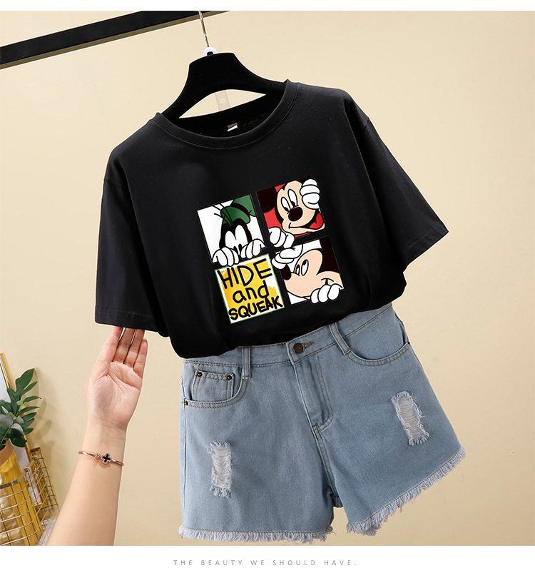 NRJ-4F-C405-F287-宽松大码米奇短款圆领短袖T恤女ZXH