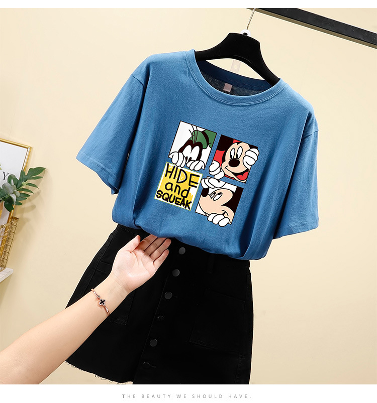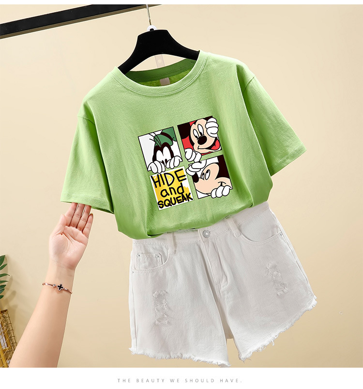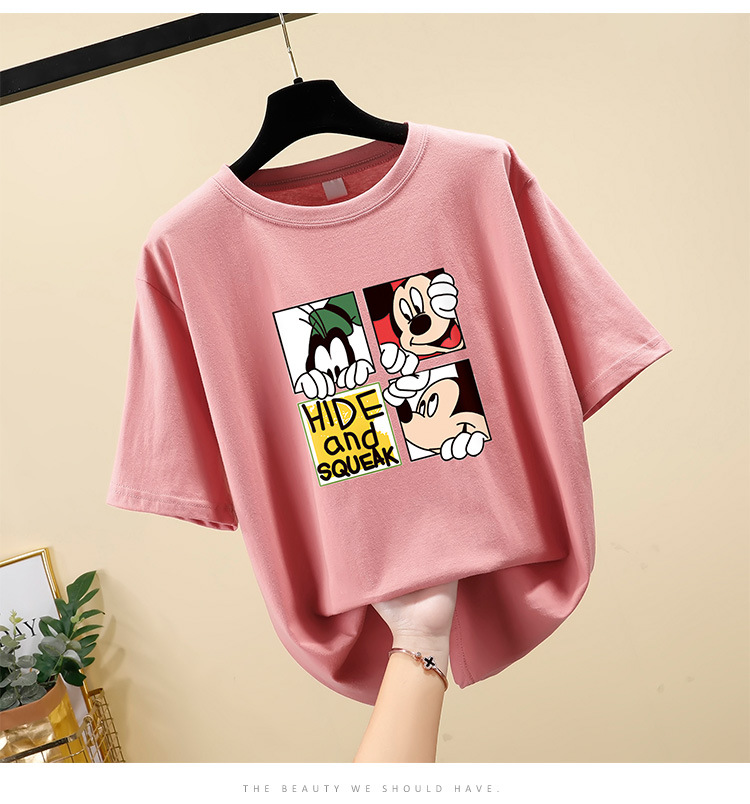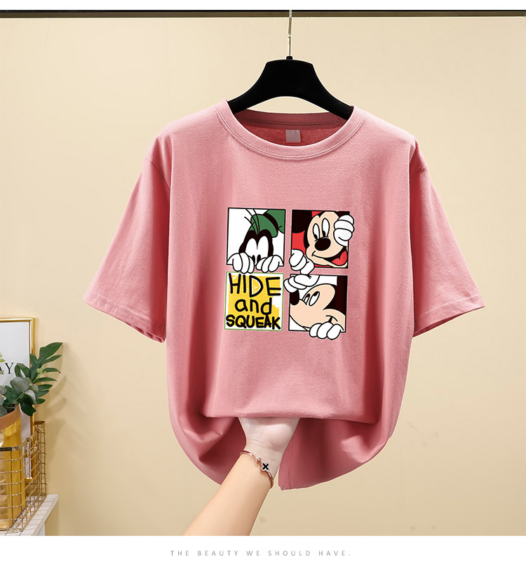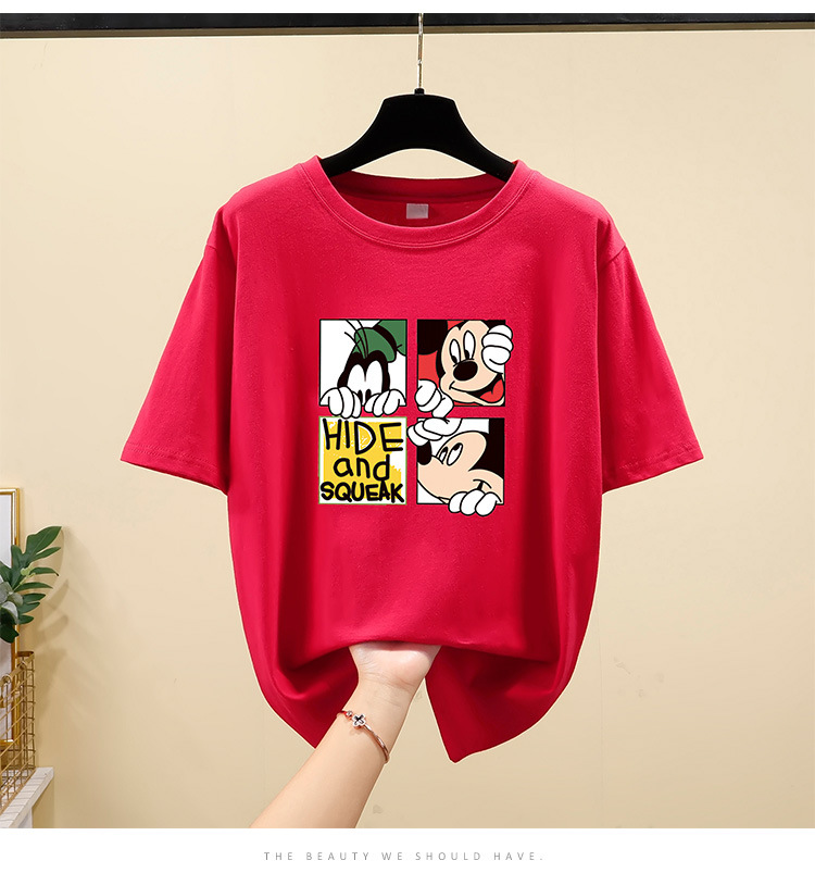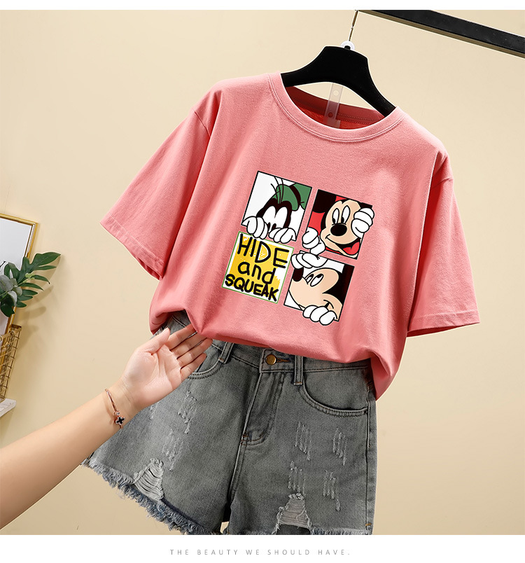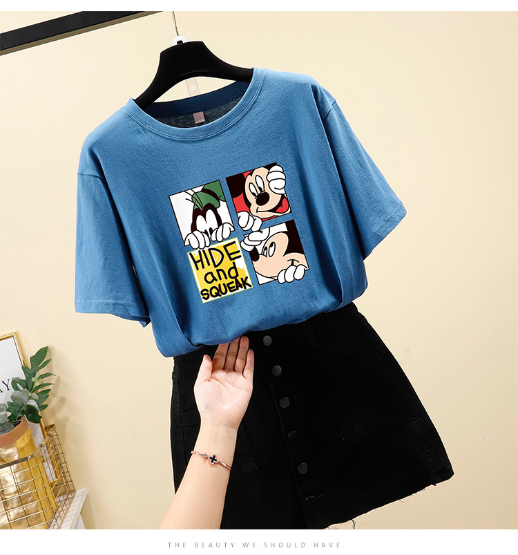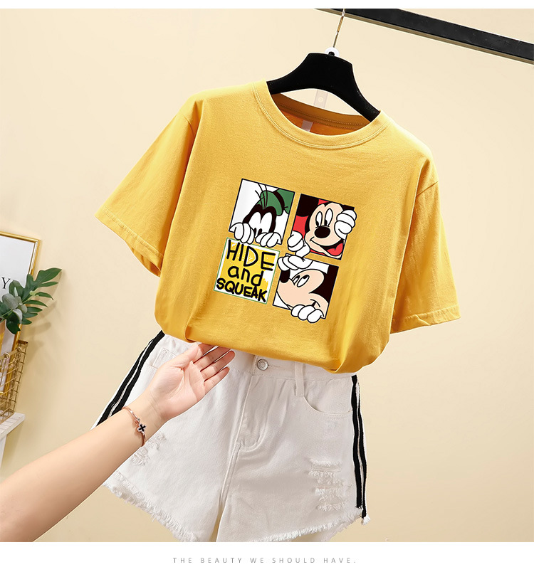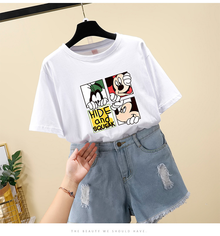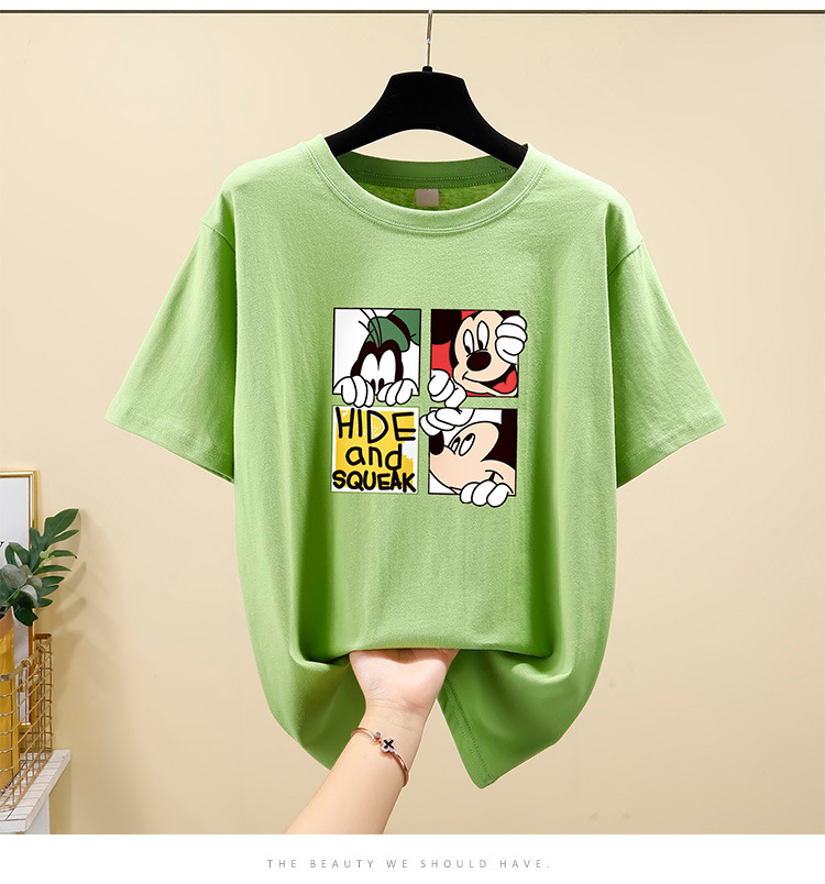 NRJ-4F-C405-F287-宽松大码米奇短款圆领短袖T恤女ZXH
