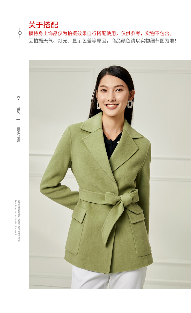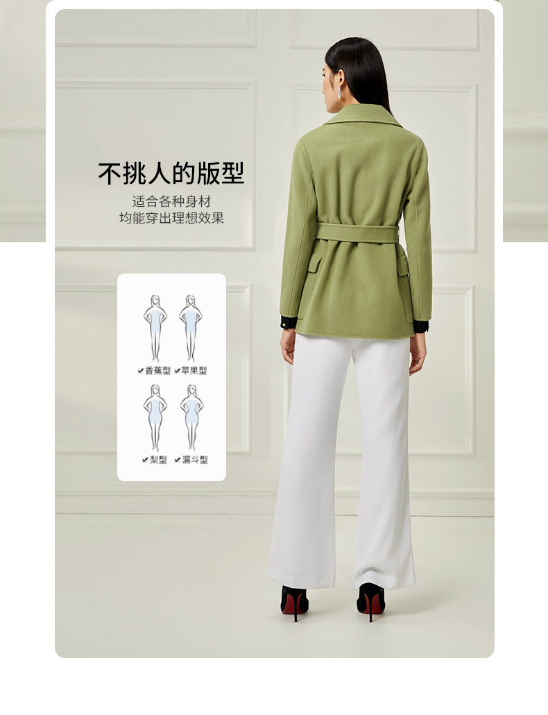 EITIE爱特爱新款纯羊毛系带收腰百搭气质外套大衣6814506
