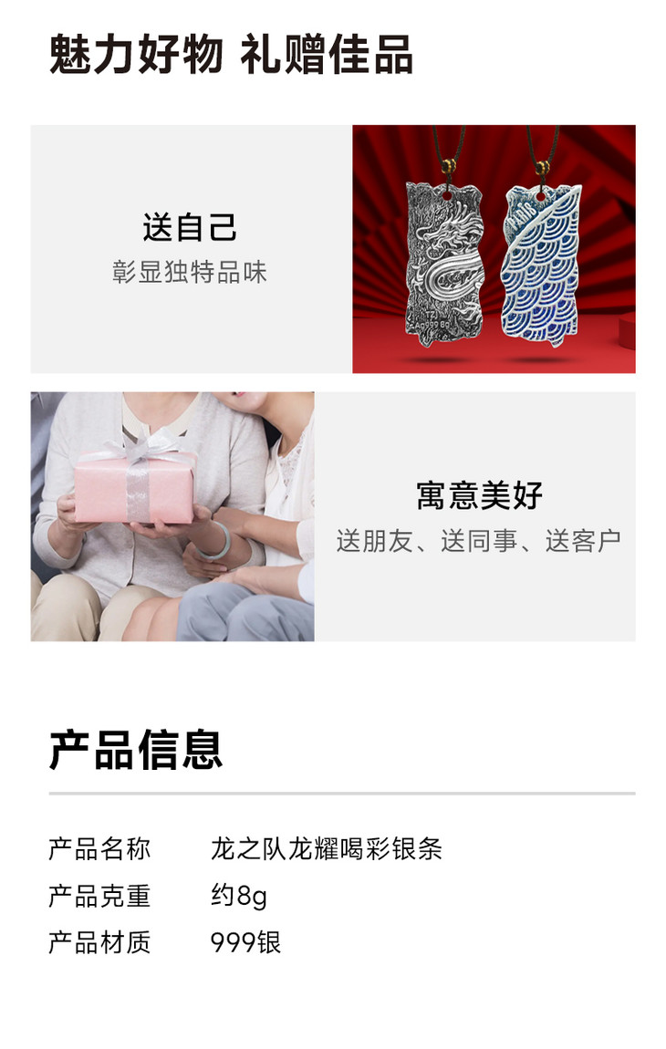 龙之队·巴黎奥运龙耀银条 含纯银8克 赠项链可佩戴