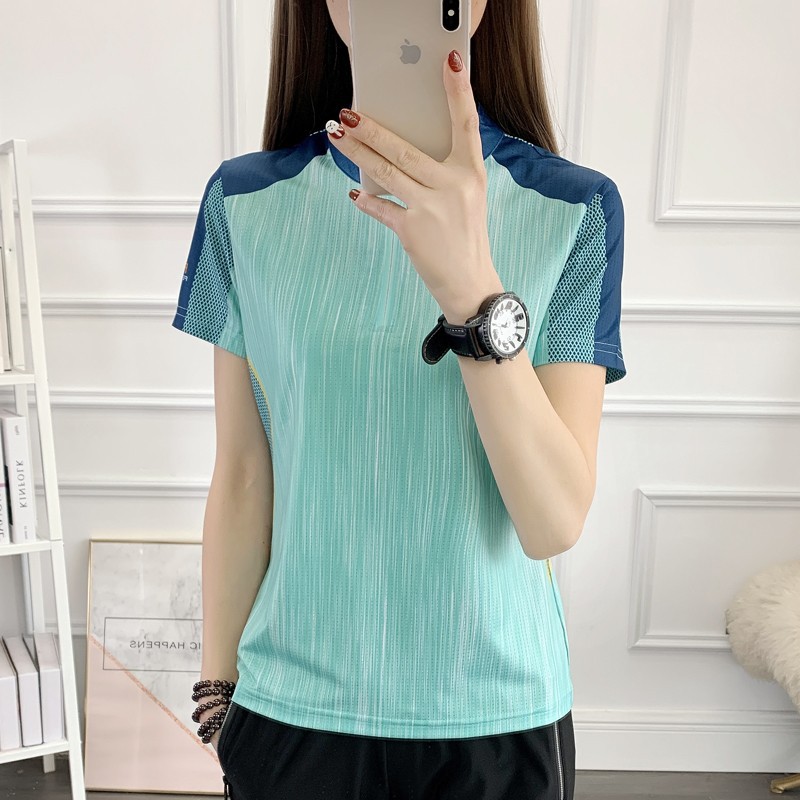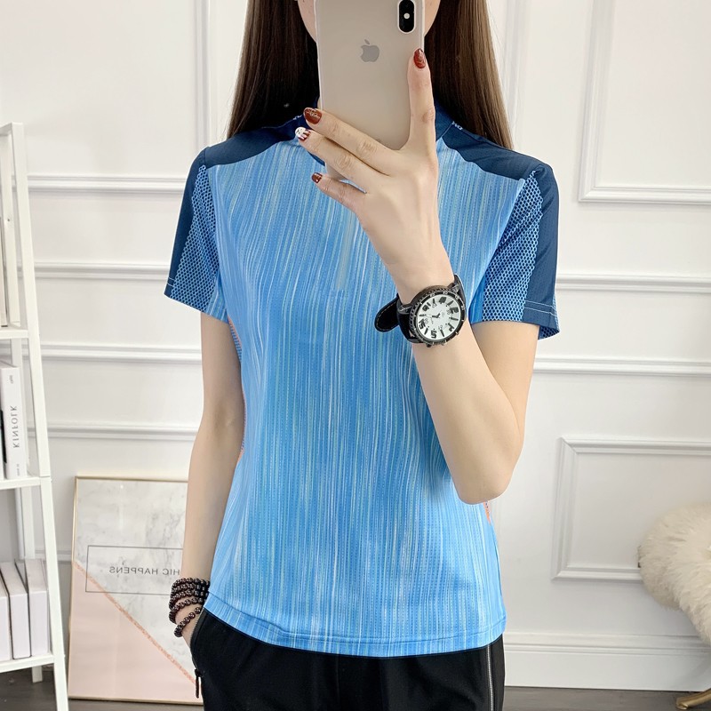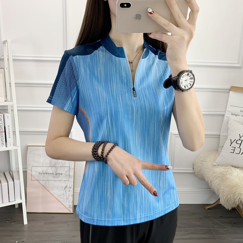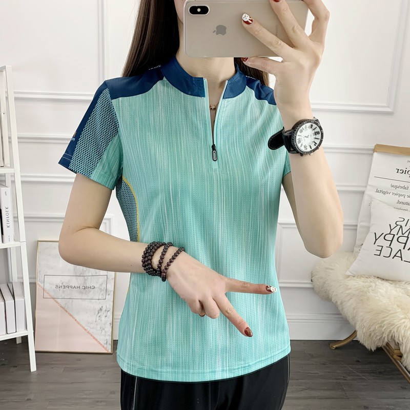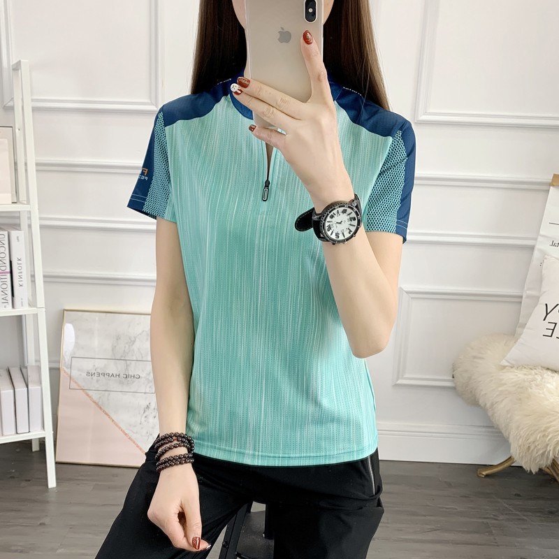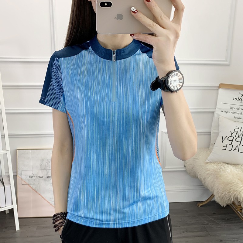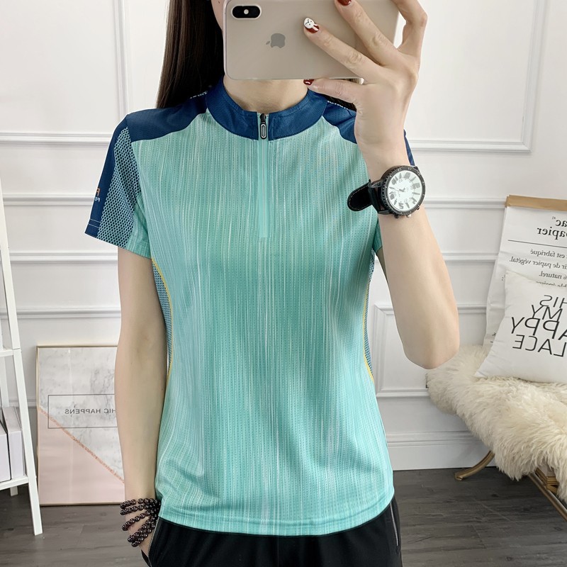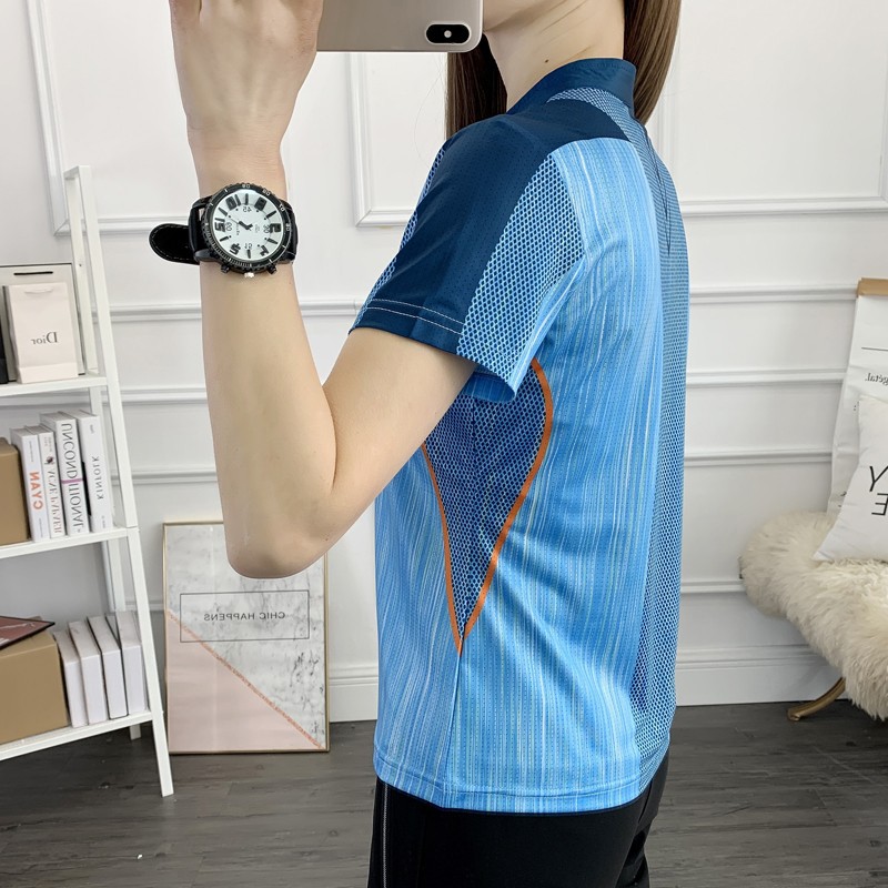 丁摩 情侣速干衣女短袖夏季立领透气弹力户外运动跑步健身打球快干T恤5ZF-31