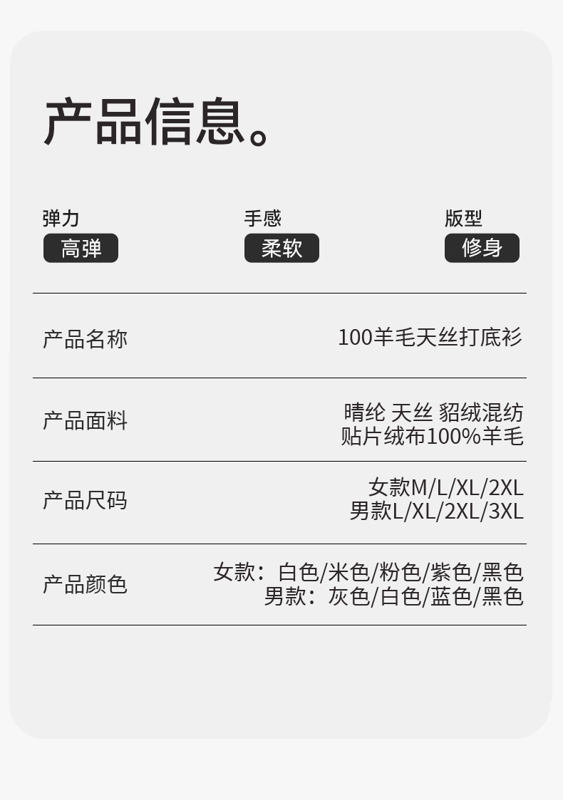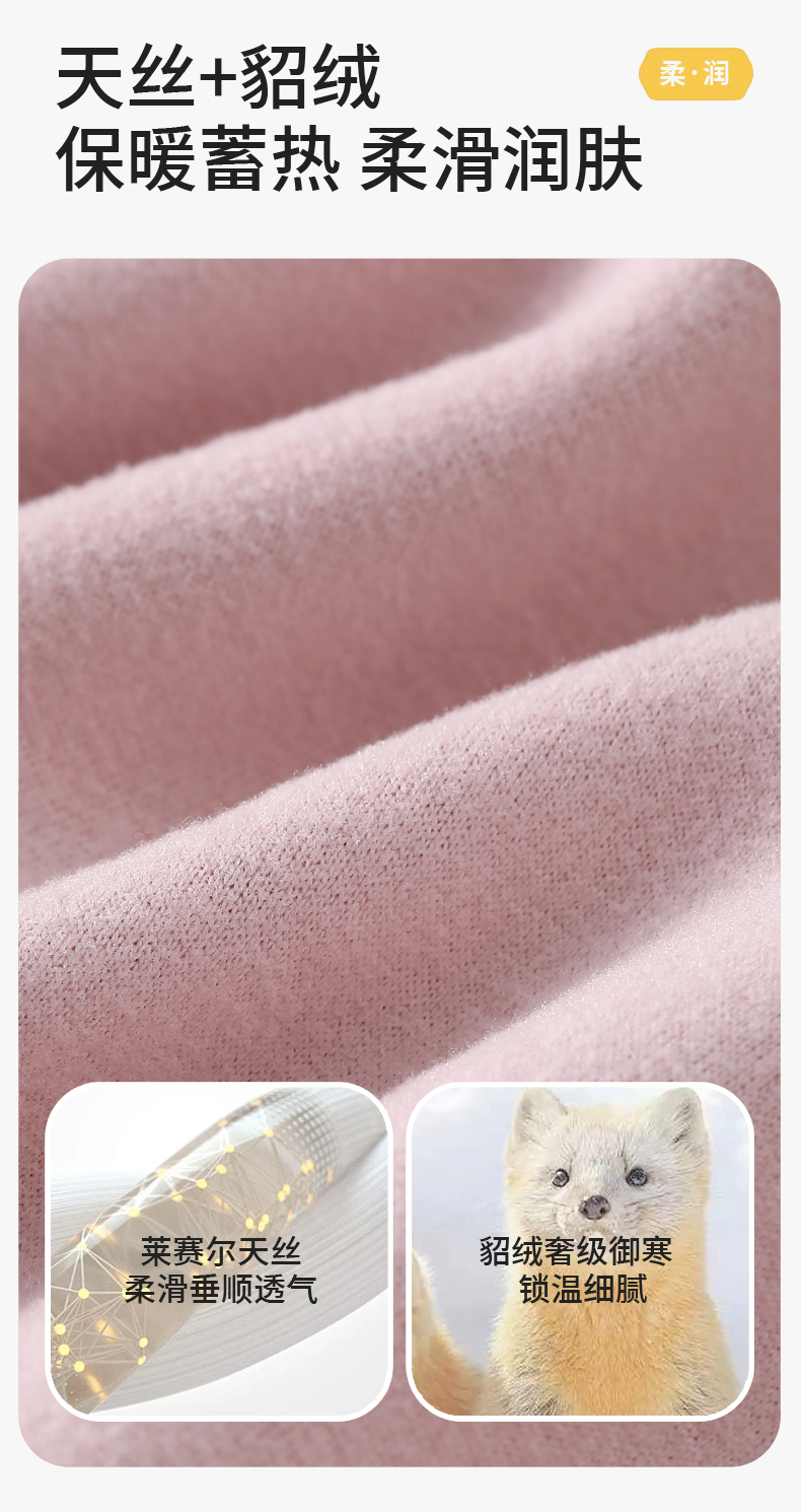 【100%羊毛填充 特别添加貂绒 抗静电】莱赛尔天丝10A抑菌防螨羊毛天丝打底衫