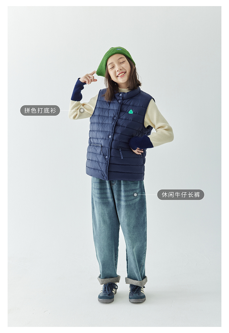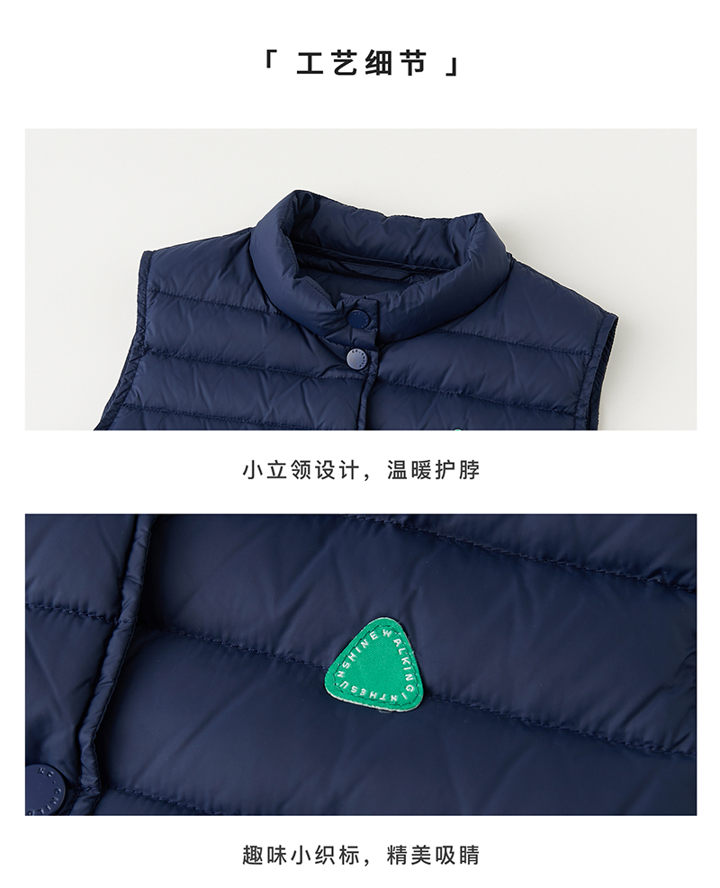 预售12.26发 棵初秋冬新品小立领防泼水羽绒马甲儿童外穿保暖无袖上衣
