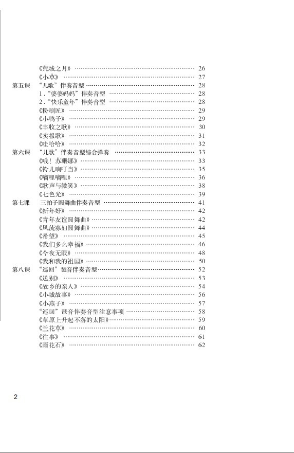 本书以高等师范院校音乐专业学生为对象,结合作者多年教学实践和经验总结编写而成。本教程的最大特点为:分上篇(带旋律伴奏)和下篇(无旋律伴奏),采用完整的经典简谱歌曲谱例,配以和弦及伴奏音型,并附上完整的五线谱对照版本作为参考,使学习者在弹奏过程中领悟到即兴伴奏的编配方法及弹奏方法,能真正运用到实践中。