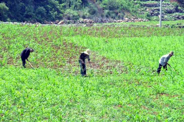 除草的话是人工除草,不用除草剂。玉米基地的人们顶着烈日,细致地将玉米周边的杂草拔去。除虫的话也是人工和生物除虫,种植一些可以驱虫的作物,或者用害虫的天敌来制约。