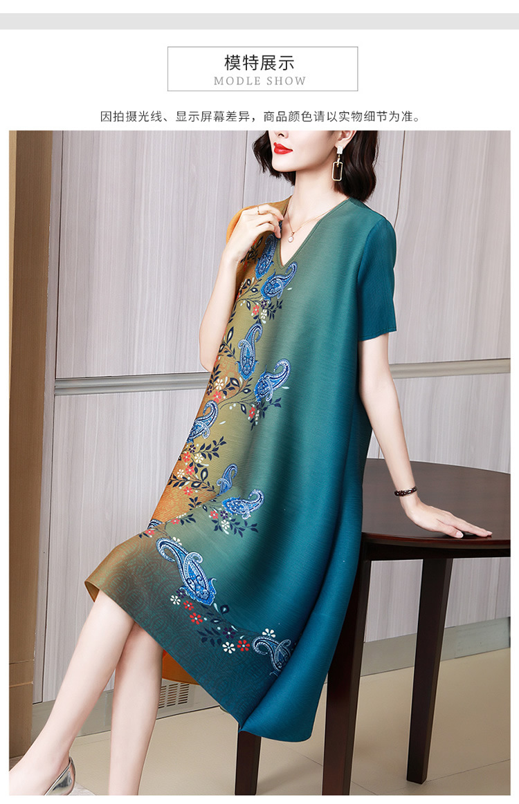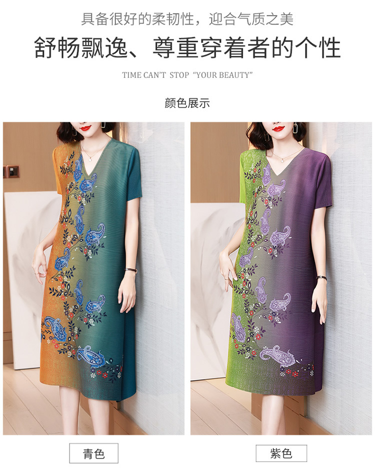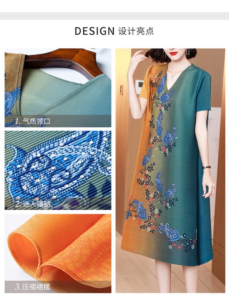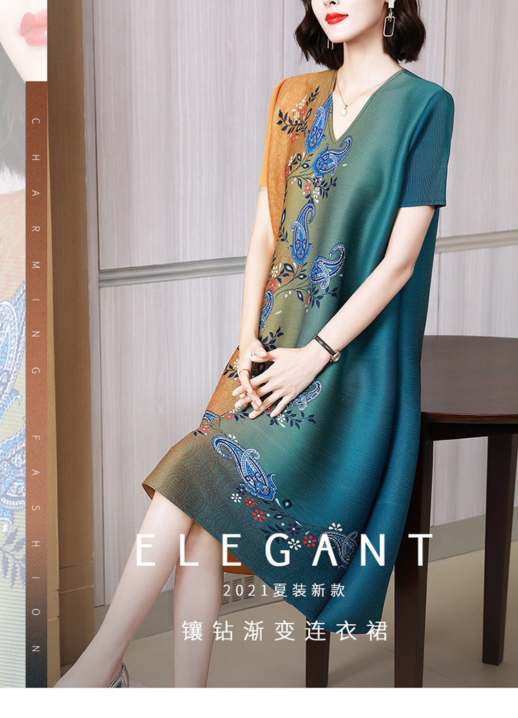 上海旗袍厂JN-K210501洋气褶皱连衣裙2021夏季新款V领时尚宽松三宅裙