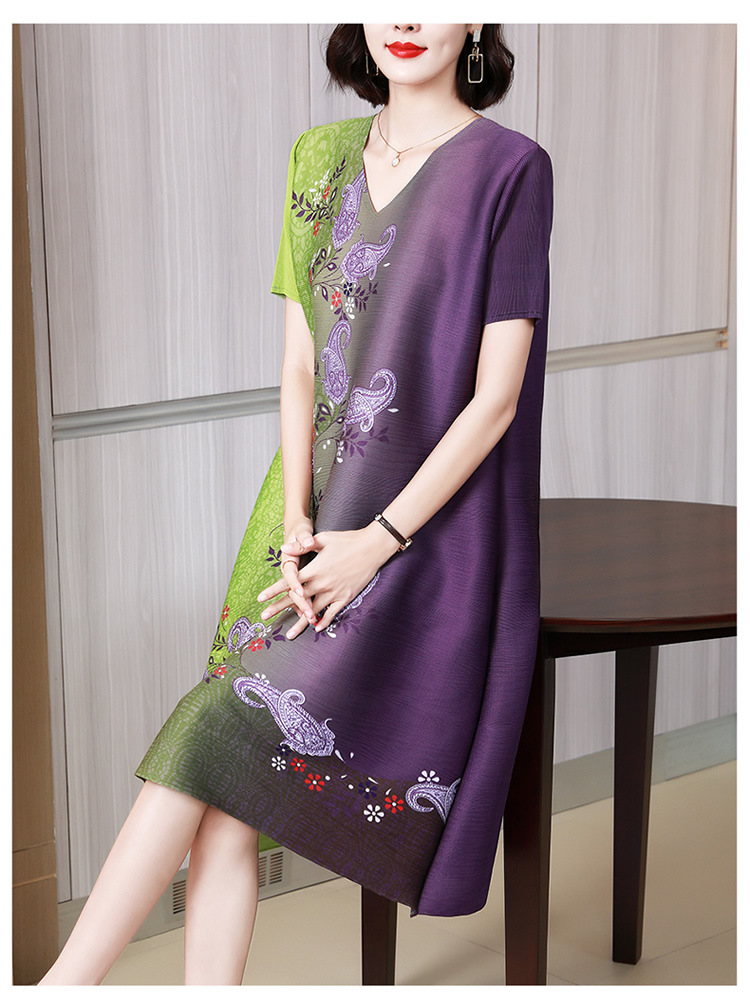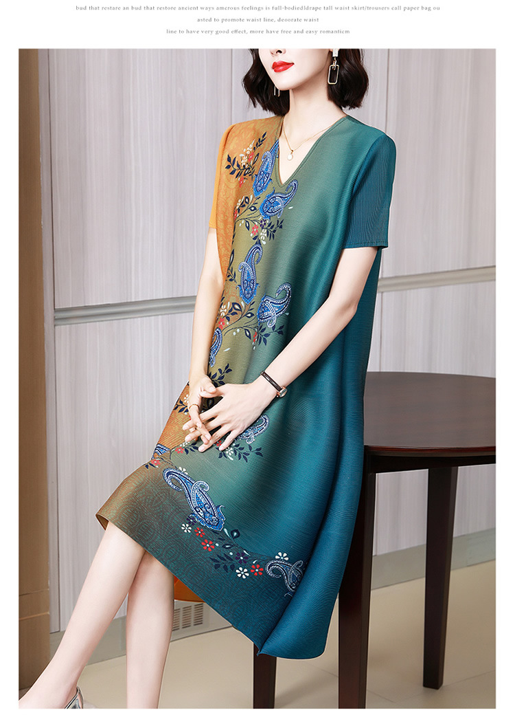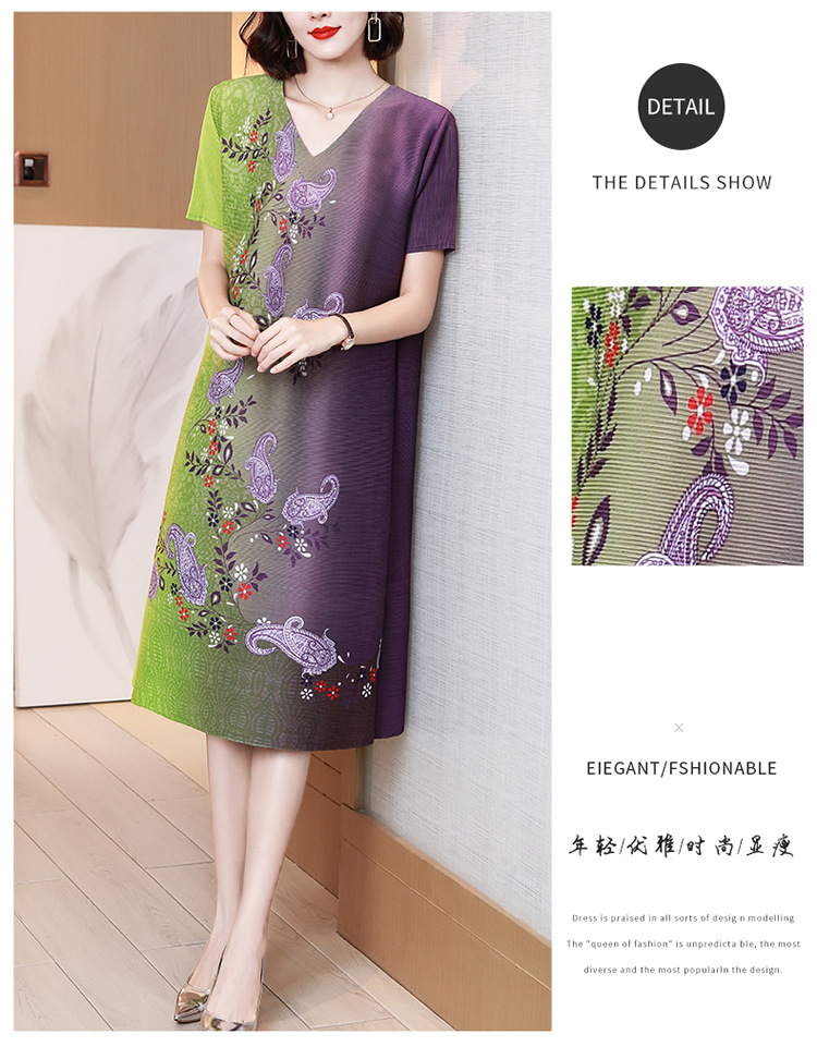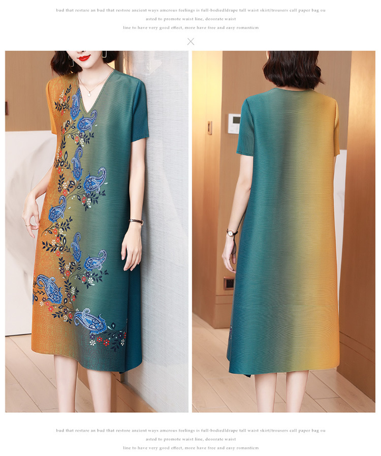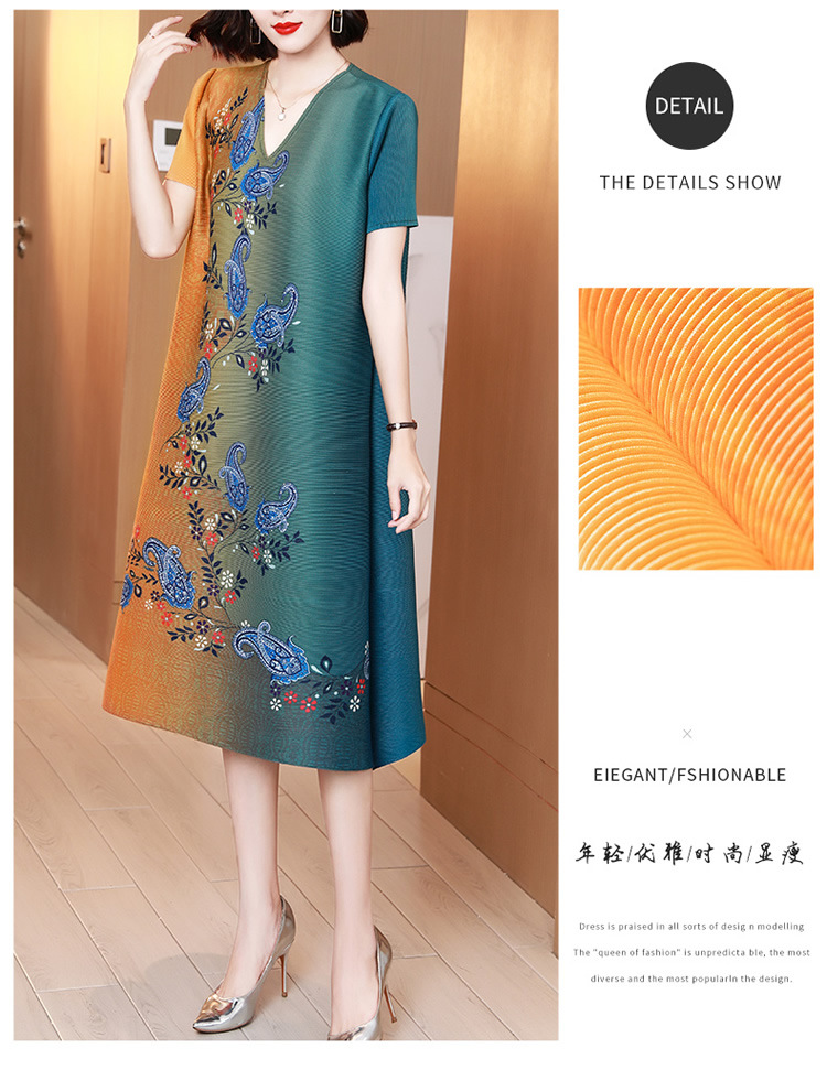 上海旗袍厂JN-K210501洋气褶皱连衣裙2021夏季新款V领时尚宽松三宅裙