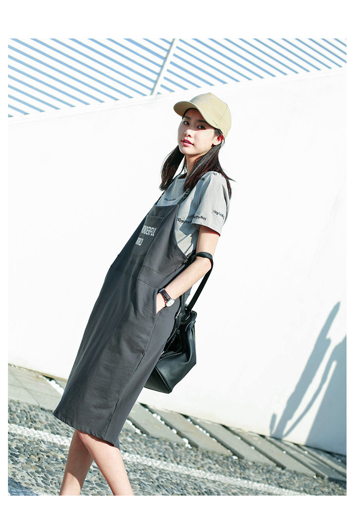 JIANG女装夏装韩版休闲宽松背带裙中长款连衣裙女L5164