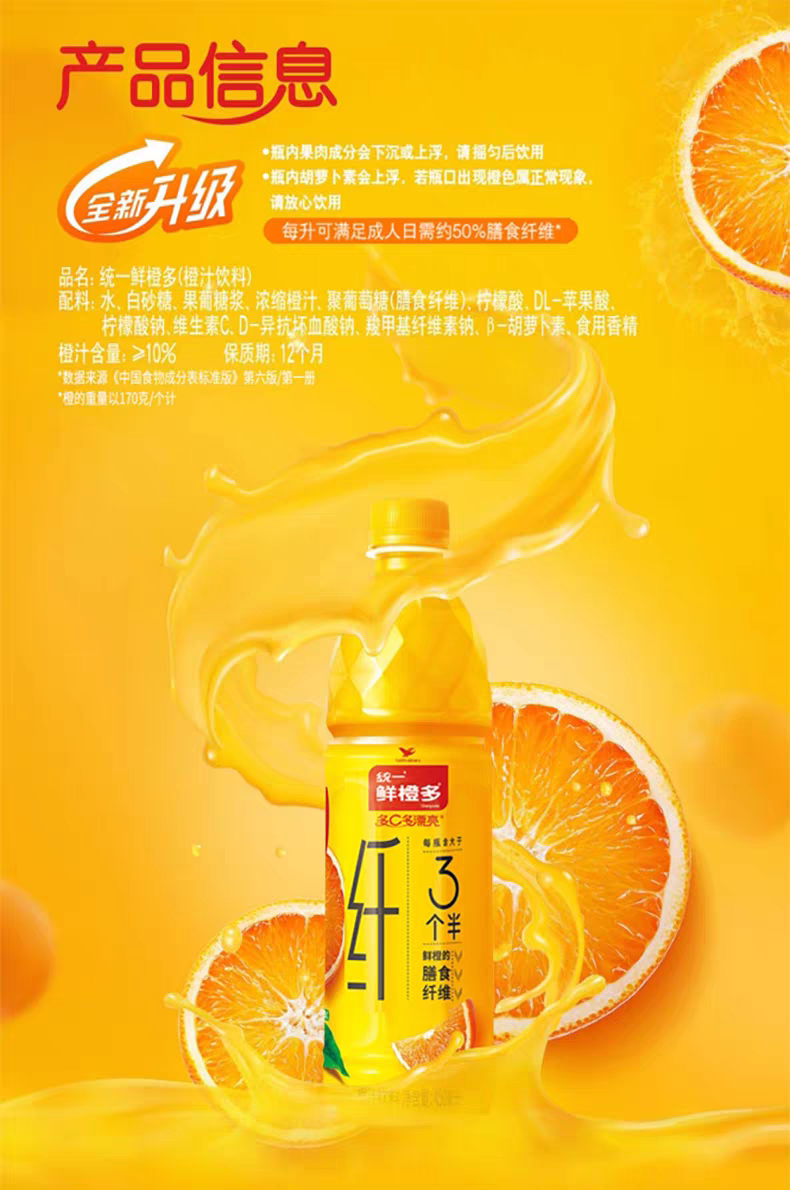 【统一鲜橙多450ml*15瓶整箱装】橙汁饮料 富含维生素C