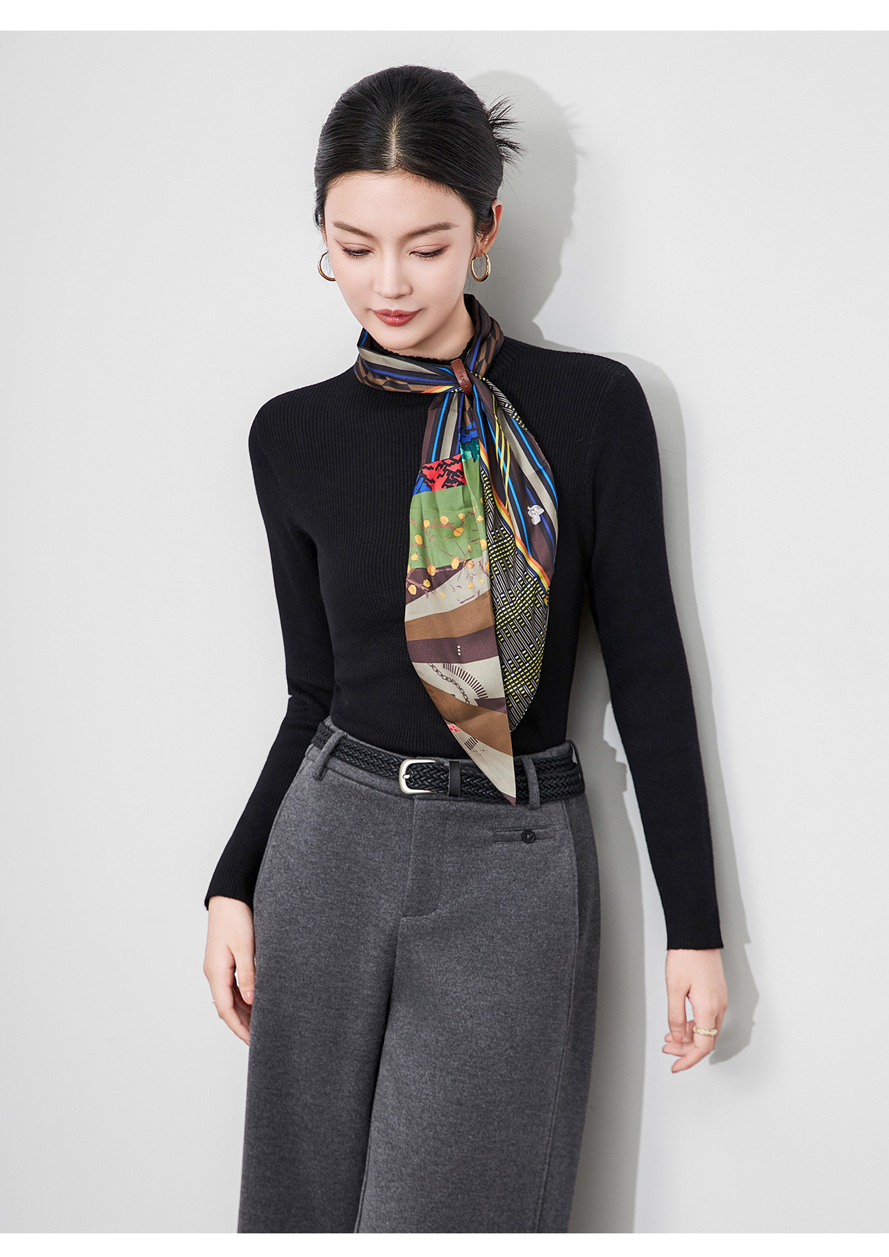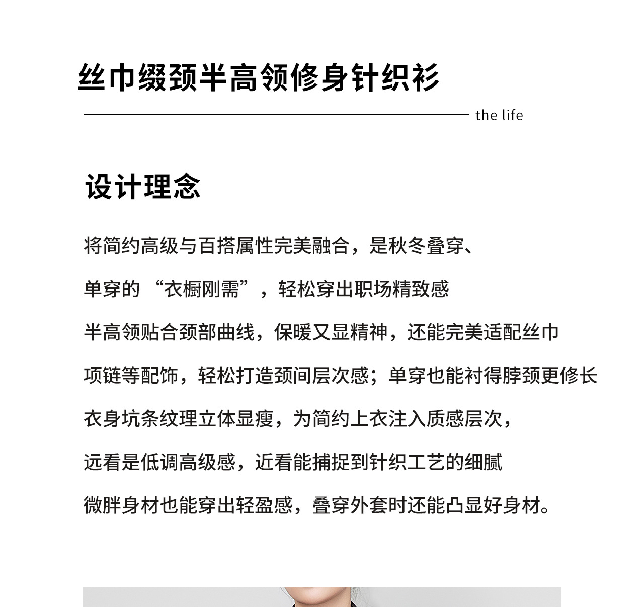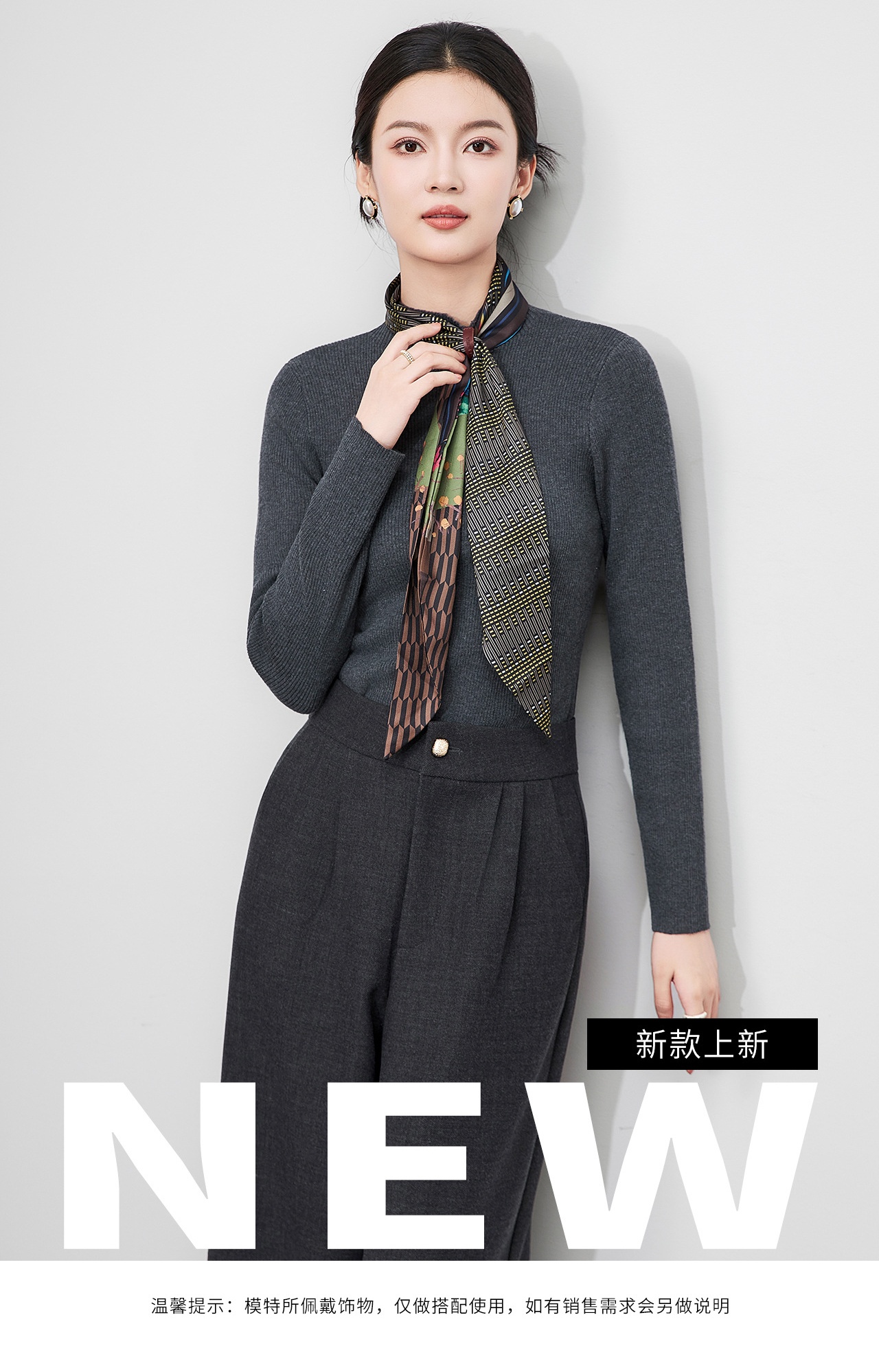 「高货wl」全新升级【铂金会员220/天猫289/差价69】(01412)洛诗琳2025秋冬法式优雅小高领长袖丝巾挂脖羊毛针织衫女