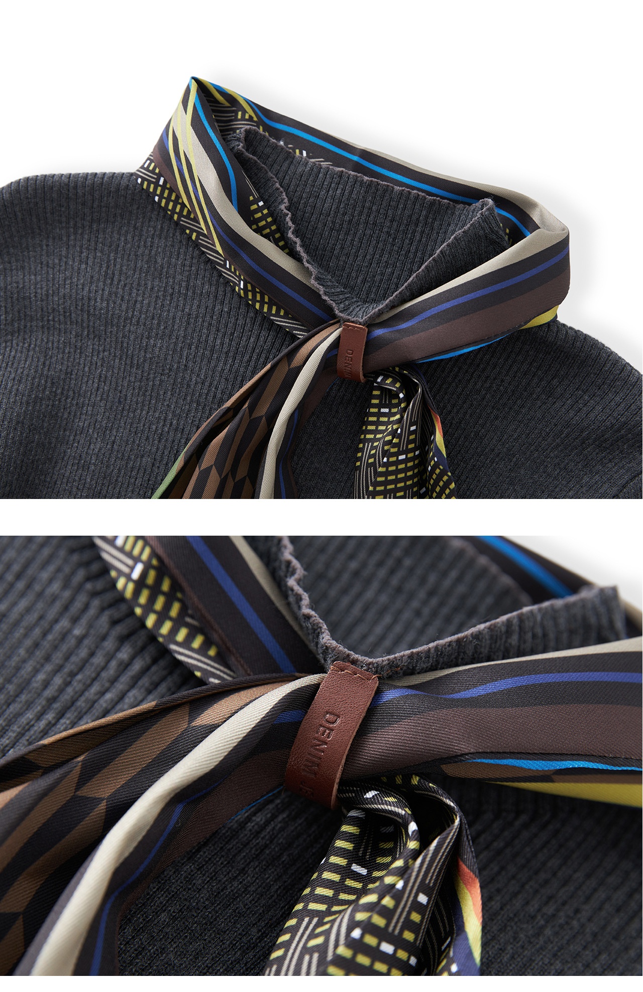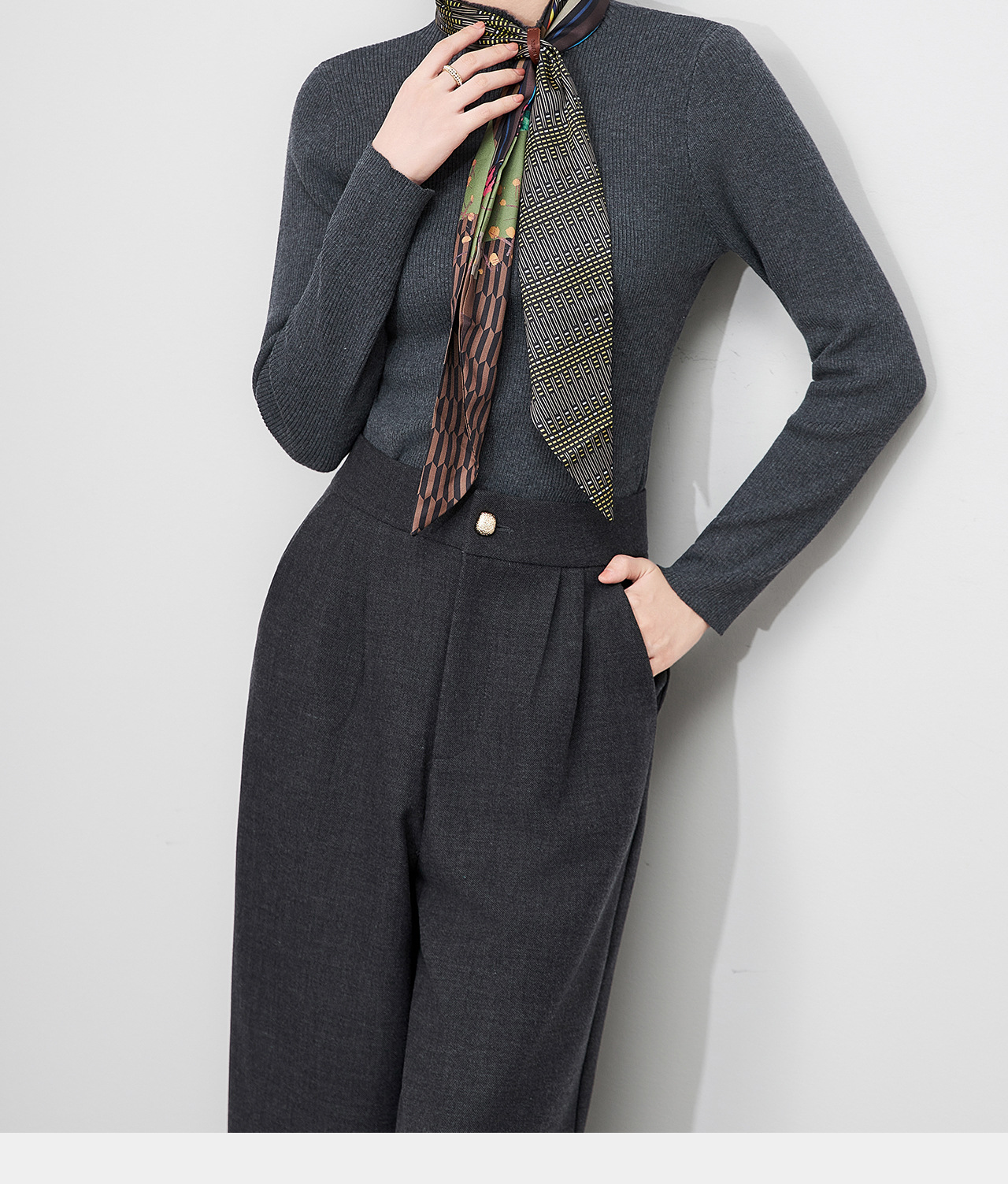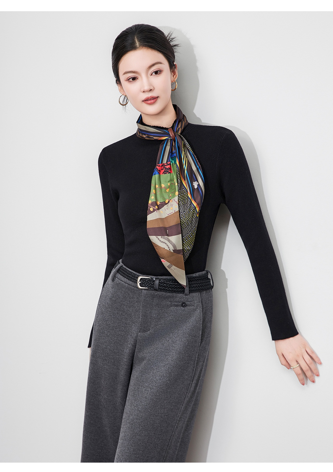 「高货wl」全新升级【铂金会员220/天猫289/差价69】(01412)洛诗琳2025秋冬法式优雅小高领长袖丝巾挂脖羊毛针织衫女