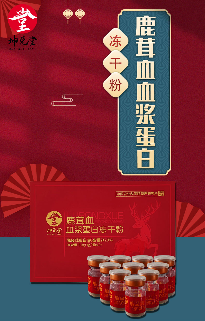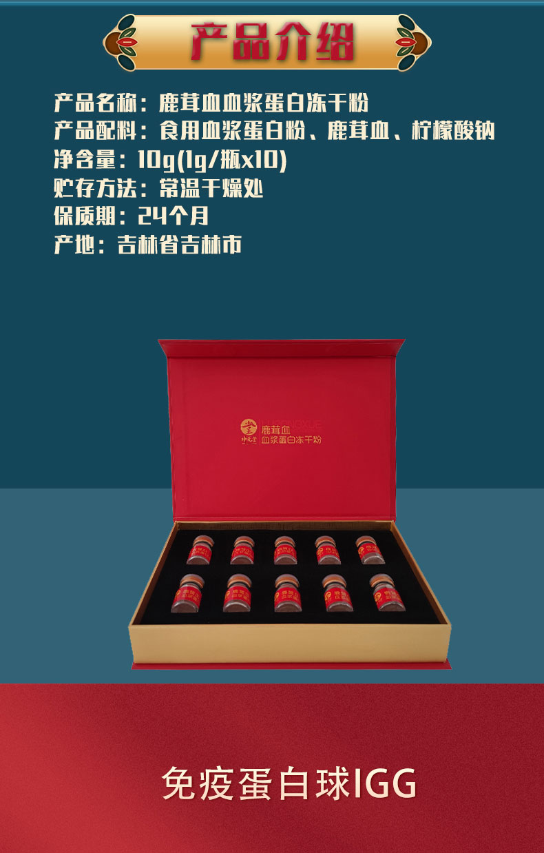 【中国农业科学院特产研究所研发】鹿茸血血浆蛋白冻干粉1g*10瓶/盒
