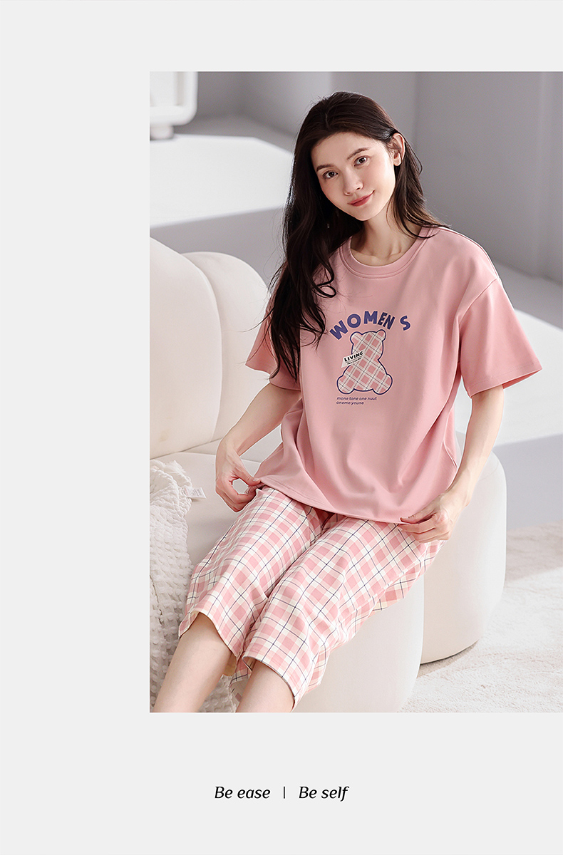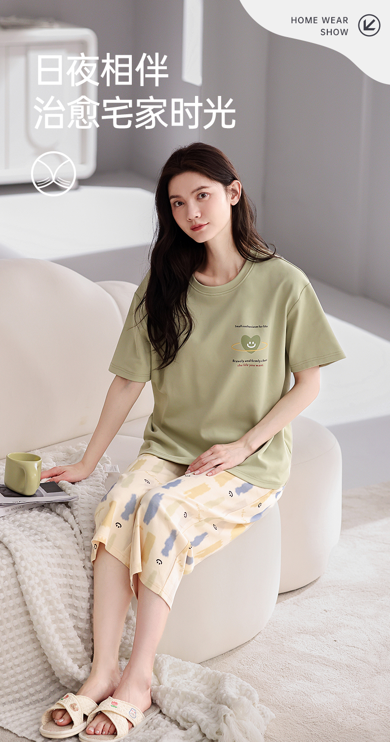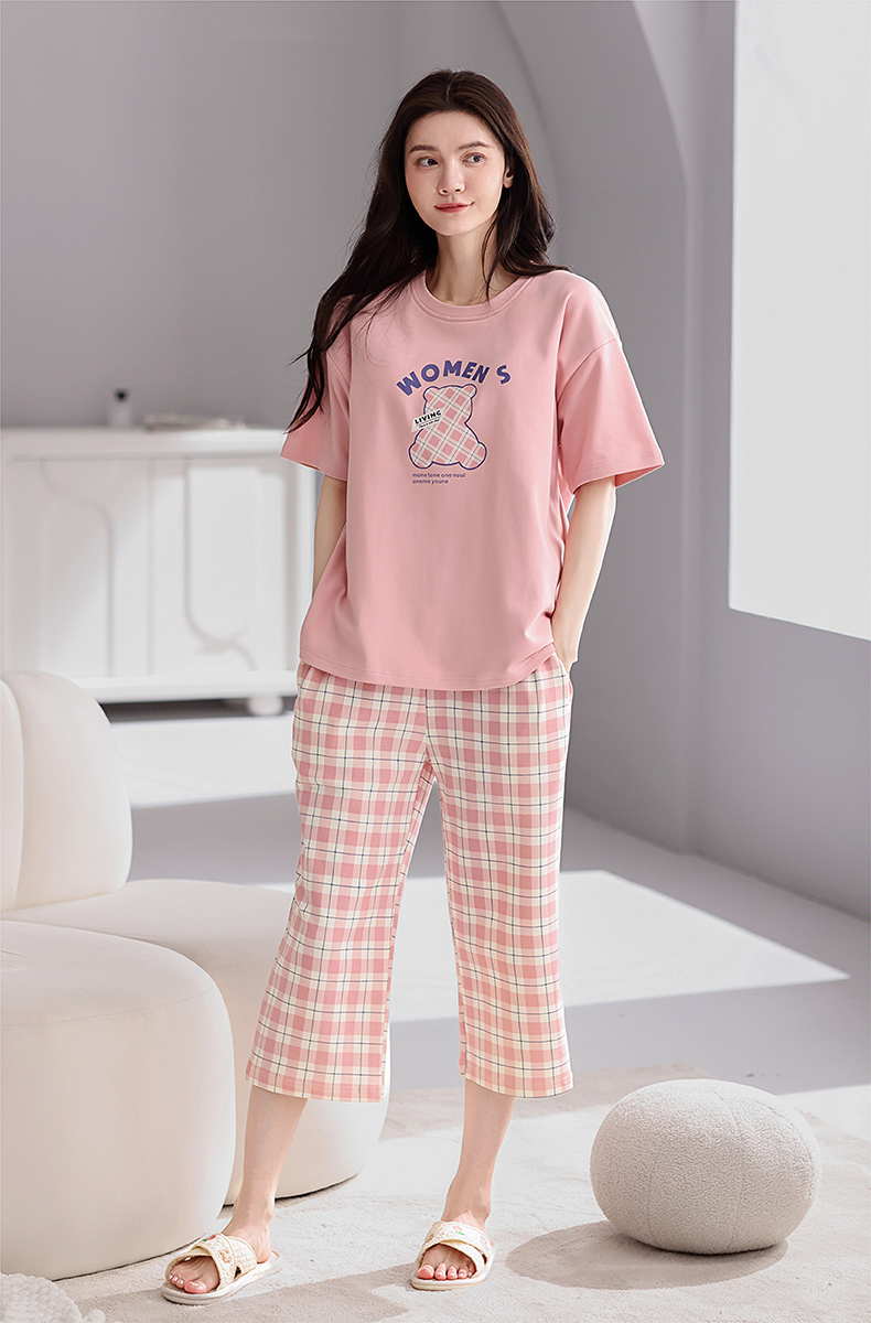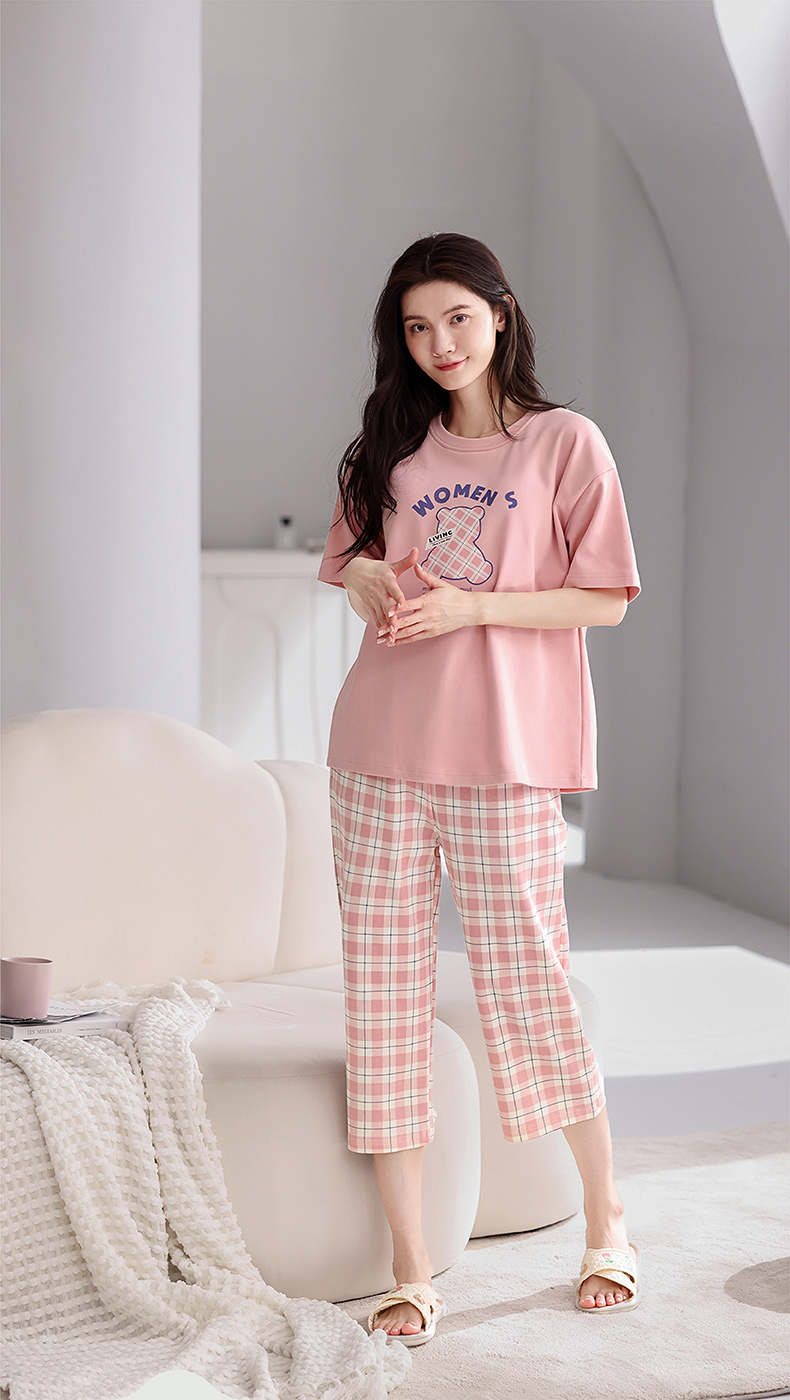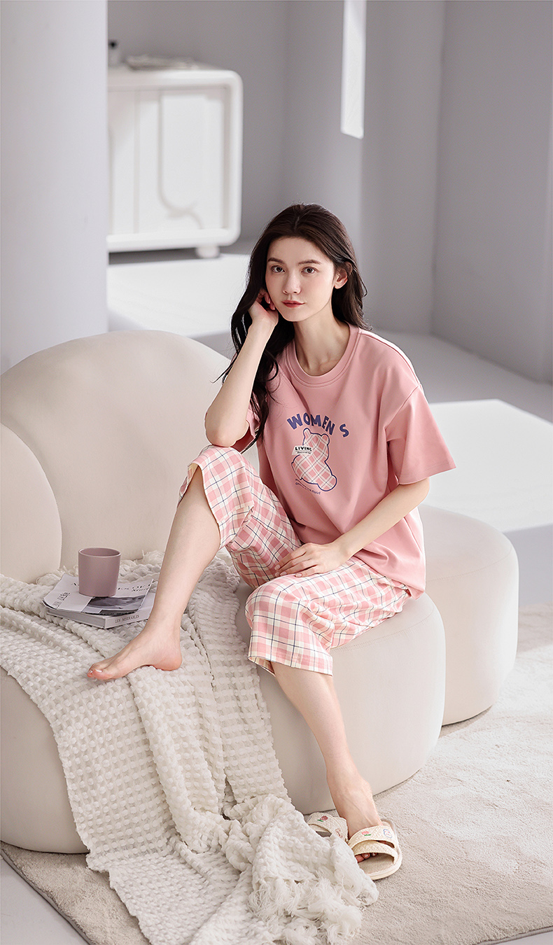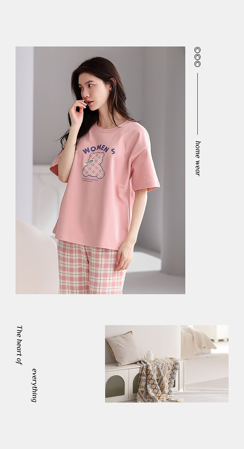 芬腾【带胸垫】薄款睡衣卡通宽松女士夏天短袖纯棉可爱家居服套装