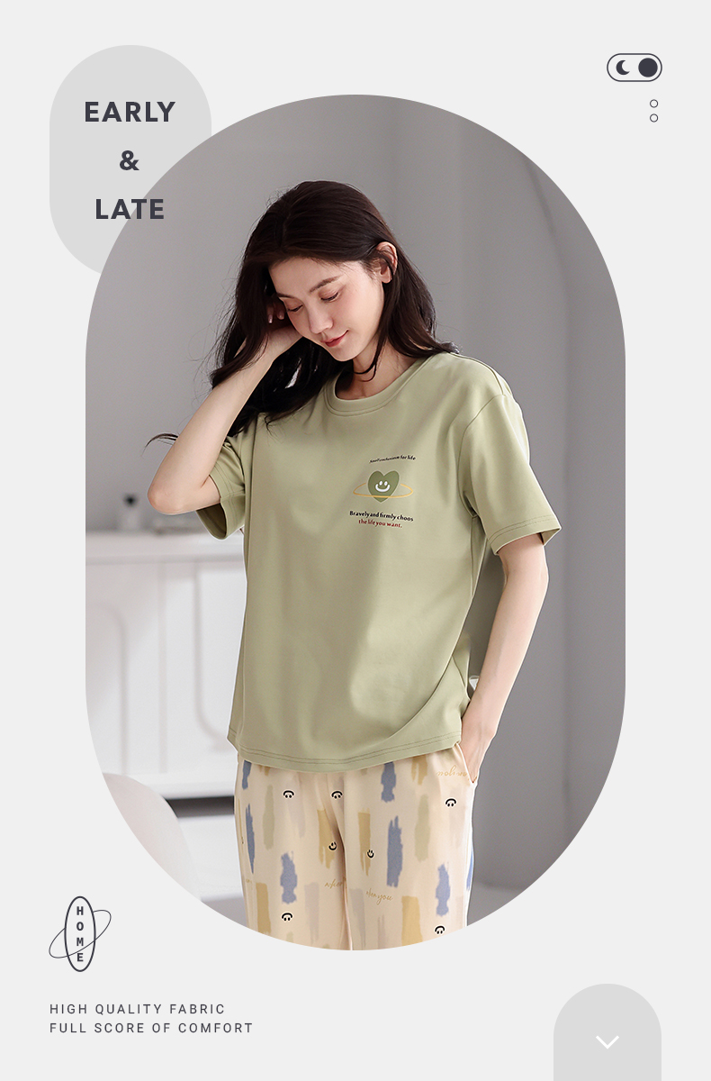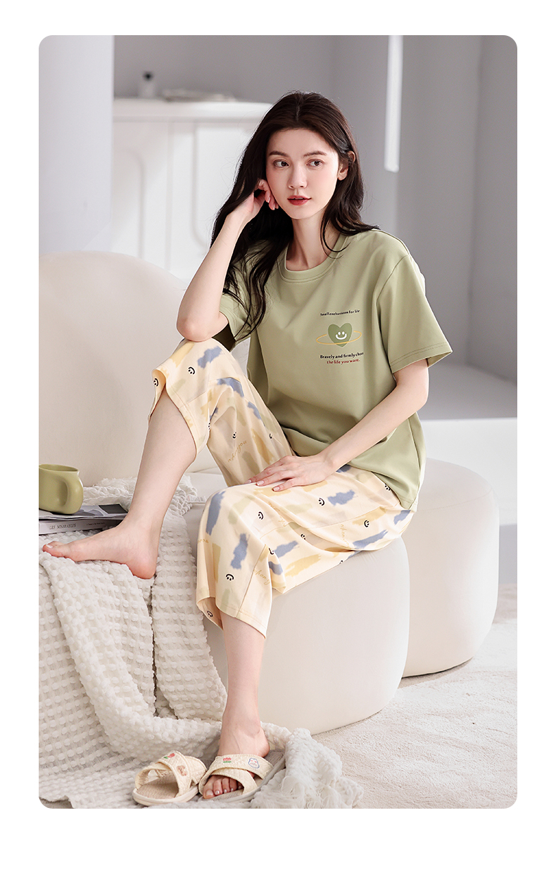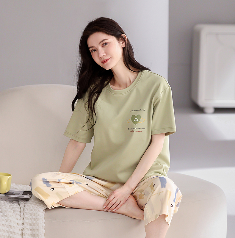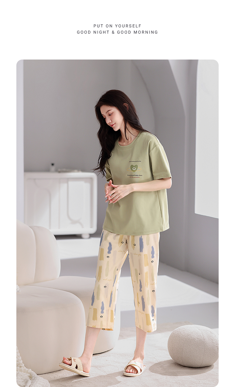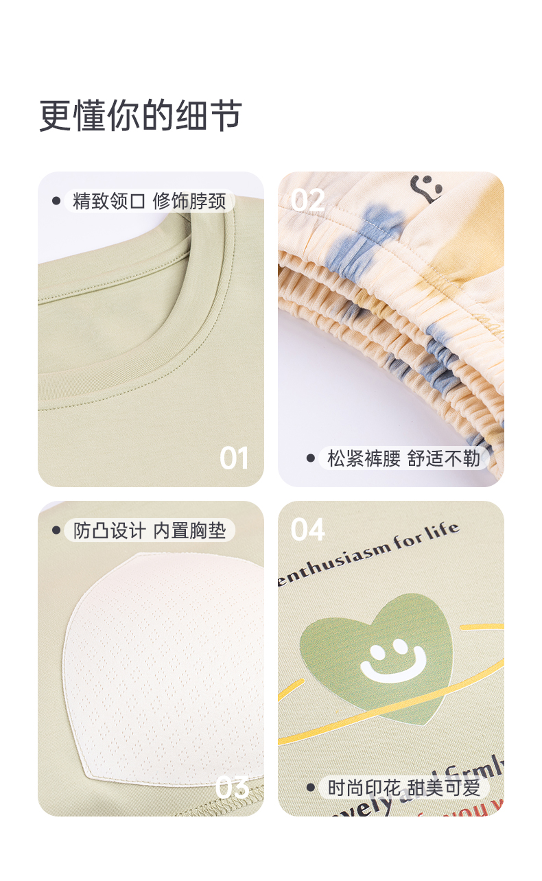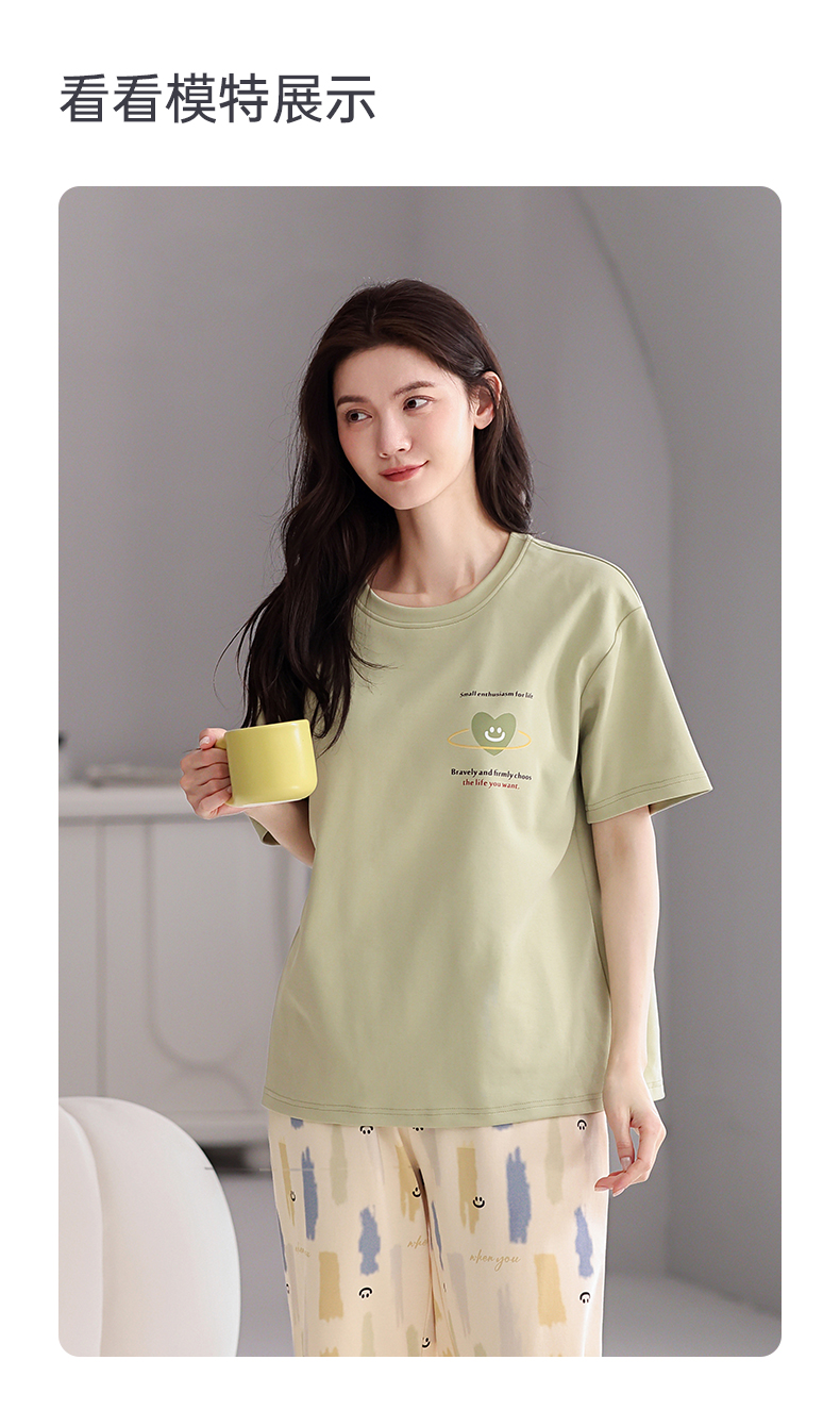 芬腾【带胸垫】薄款睡衣卡通宽松女士夏天短袖纯棉可爱家居服套装
