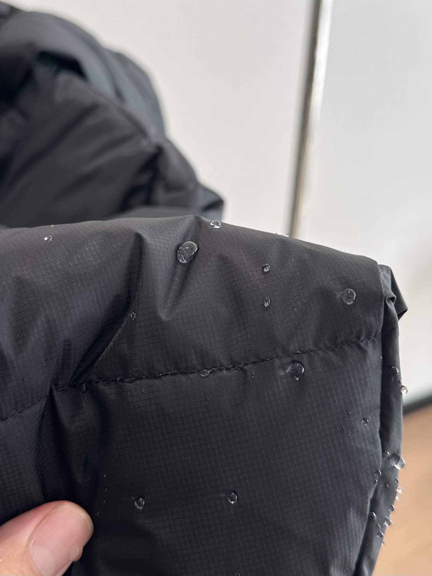 密度高,防风防泼效果超棒,遇到毛毛细雨或飞溅的泥水,水珠直接滑落,用湿巾一擦就干净,户外出行或通勤遇到突发天气也能从容应对,抗撕裂性能也超强,耐磨耐穿不易变形,穿好几年都依旧有型。