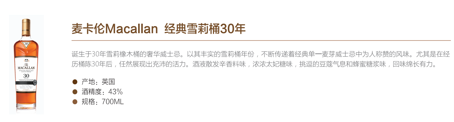 麦卡伦 Macallan 30年单一麦芽苏格兰威士忌