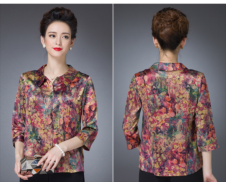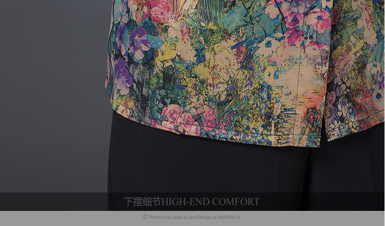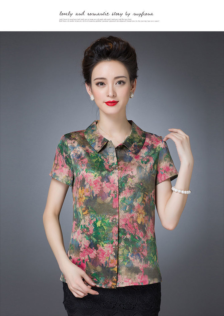 W-FGY21702夏新款宽松大码印花妈妈装薄款打底衬衫