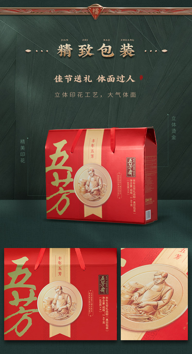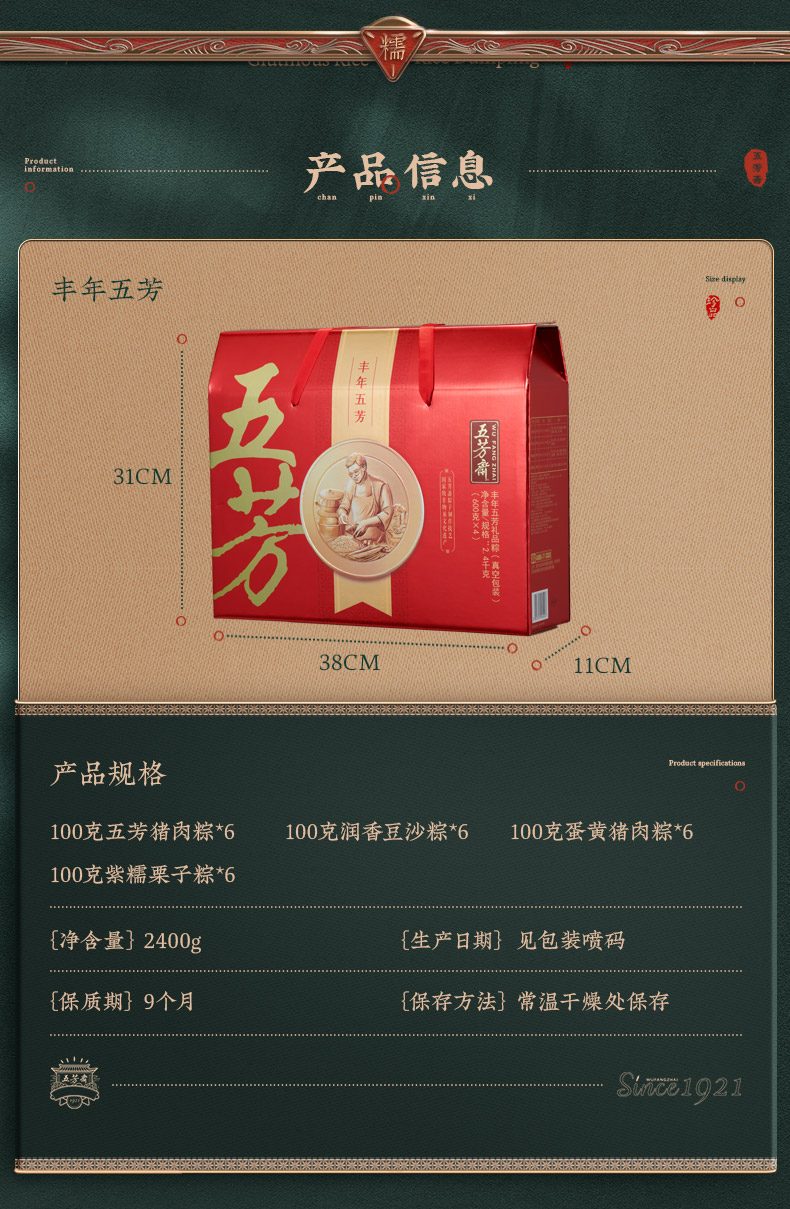 五芳斋 粽子礼盒 嘉兴特产 丰年五芳粽子礼盒2400g/盒 24支粽子 足足4斤8两