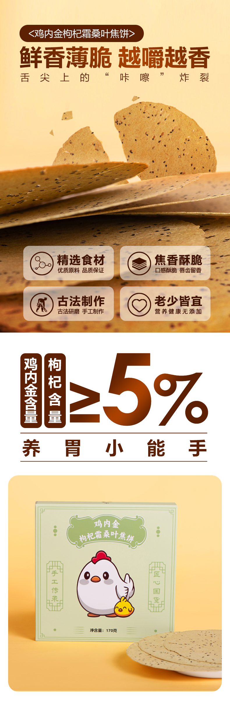 鸡内金山药茯苓焦饼 170g*2盒/4盒装 新增鸡内金枸杞霜桑叶焦饼