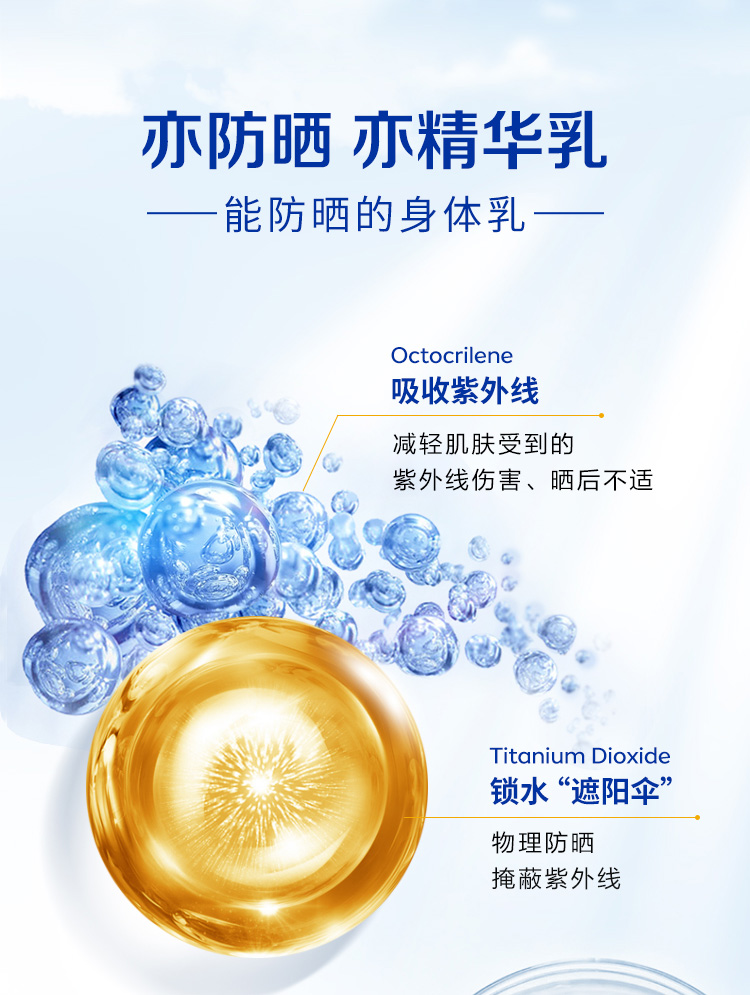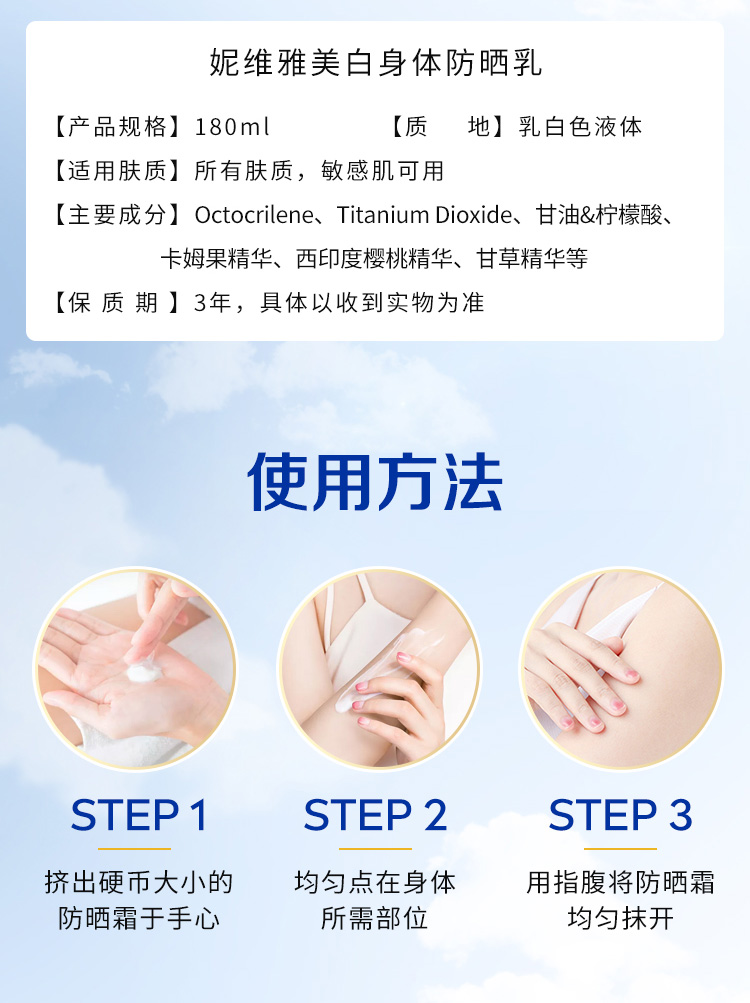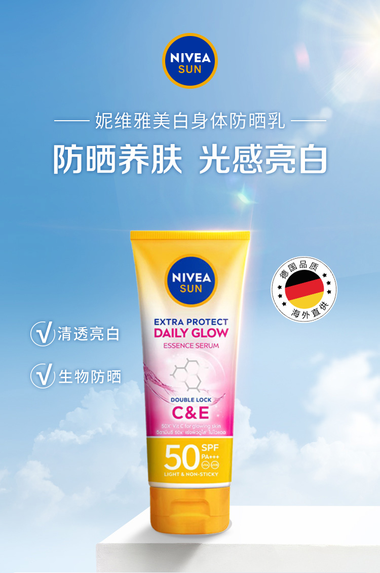 【保税直邮 义乌海关】NIVEA妮维雅泰国防晒霜SPF50焕白身体素颜霜清爽通勤户外180ml