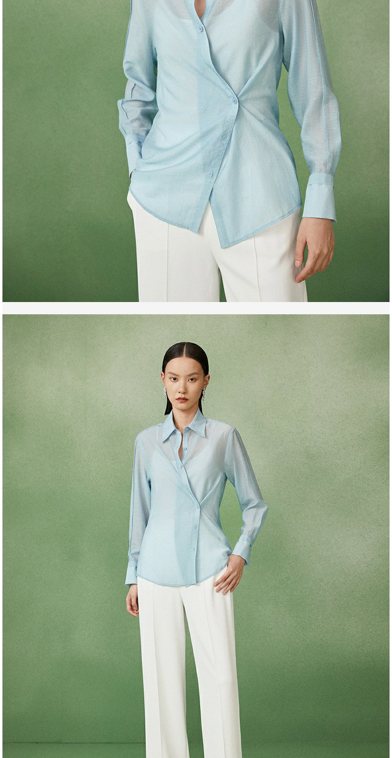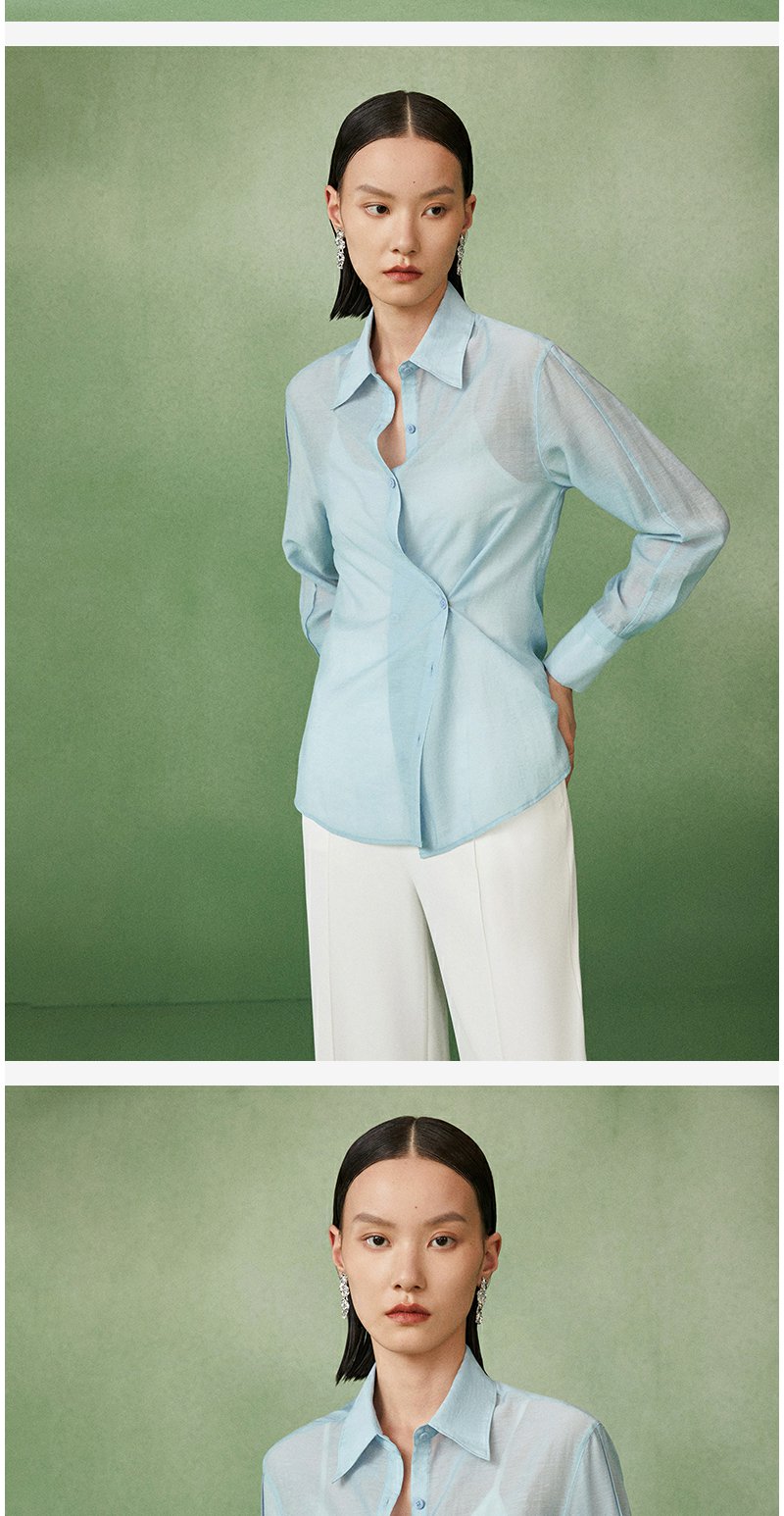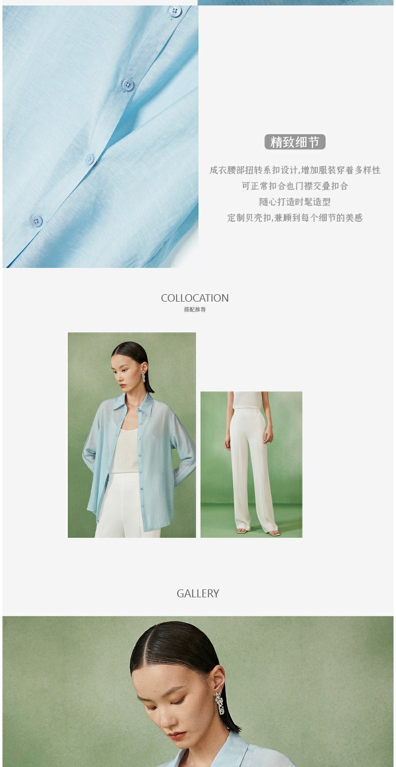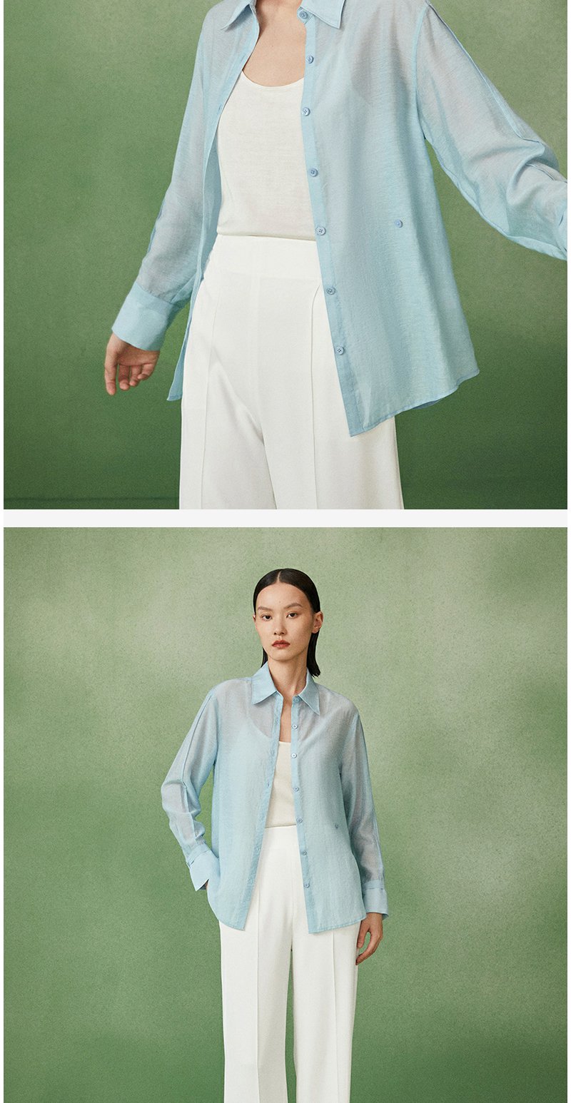 西嘉C+IMPRESS/西嘉天丝麻简约清透斜襟两穿薄款夏季防晒衬衫通勤穿搭CS2202013