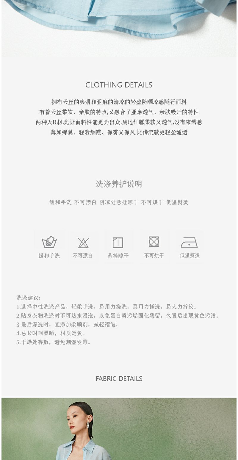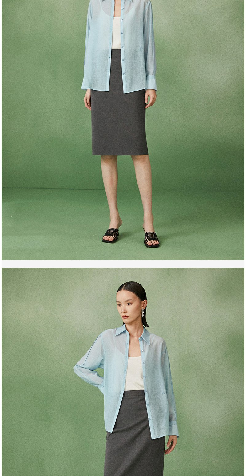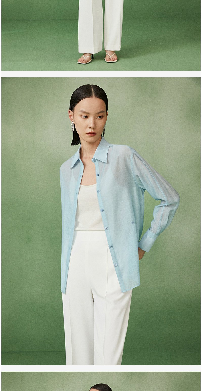 西嘉C+IMPRESS/西嘉天丝麻简约清透斜襟两穿薄款夏季防晒衬衫通勤穿搭CS2202013