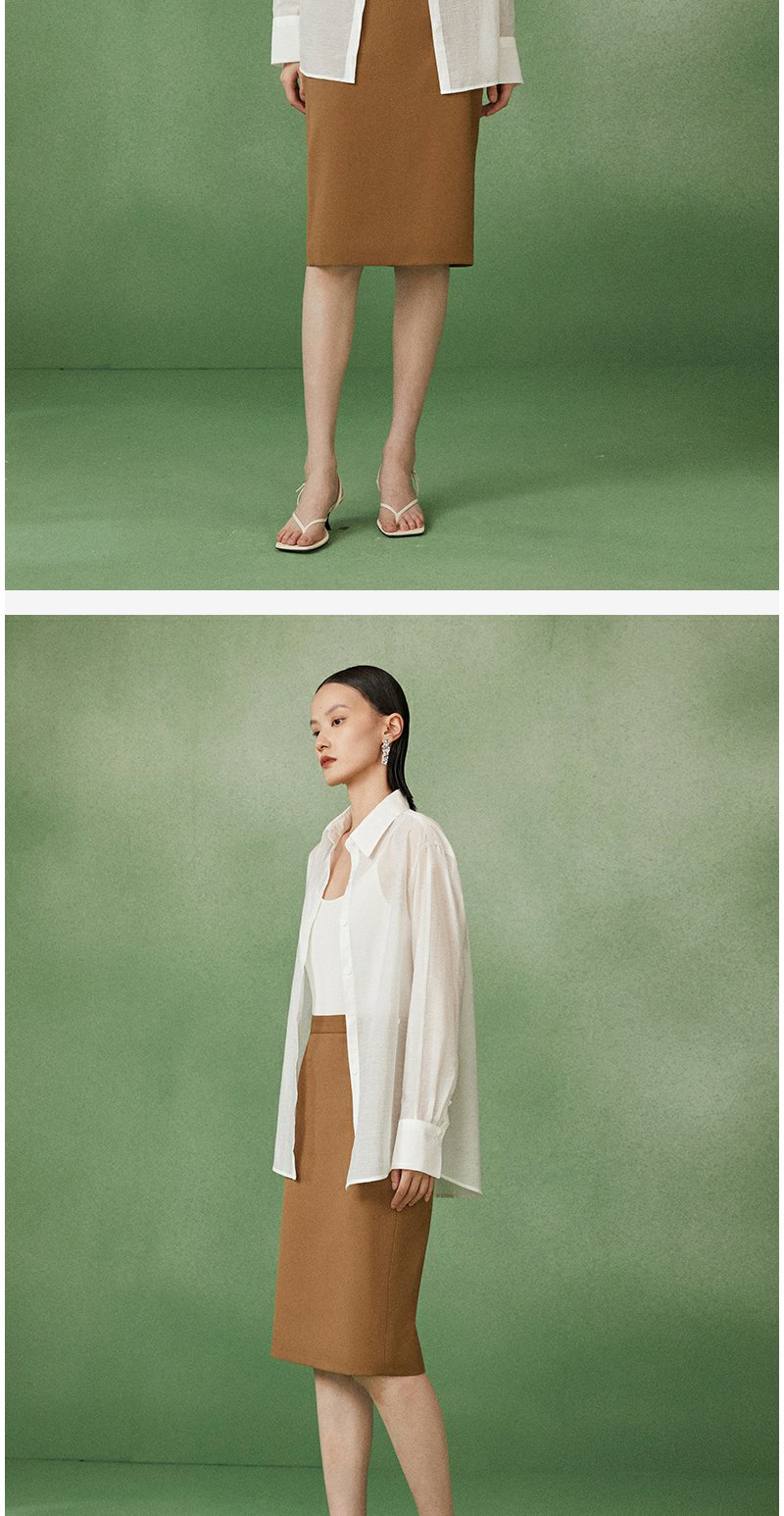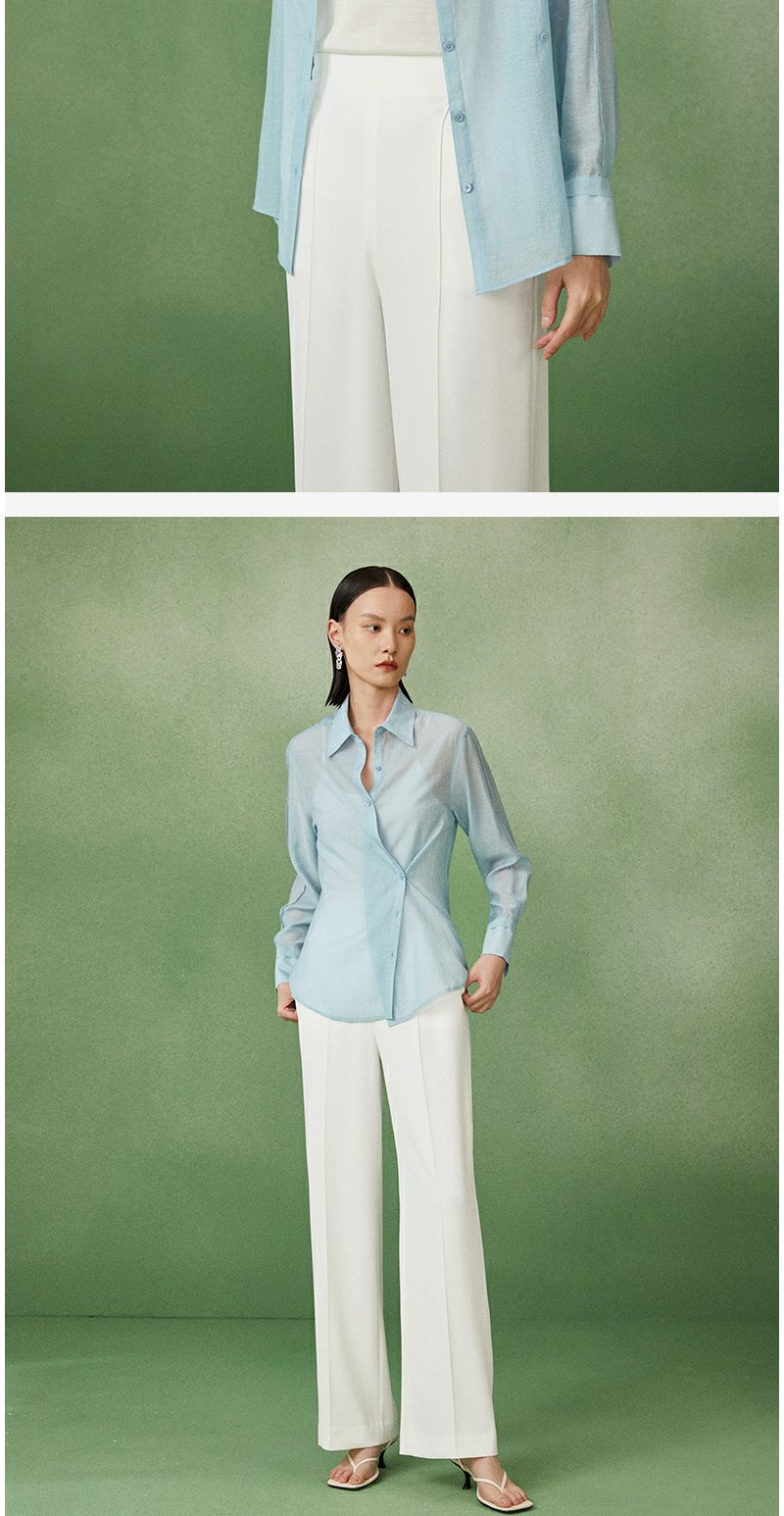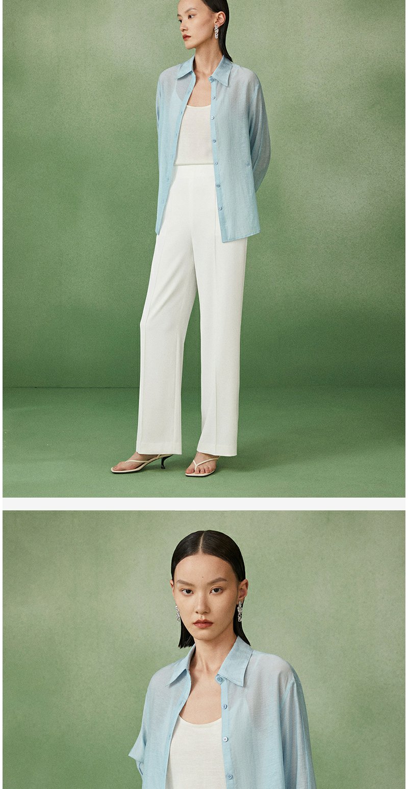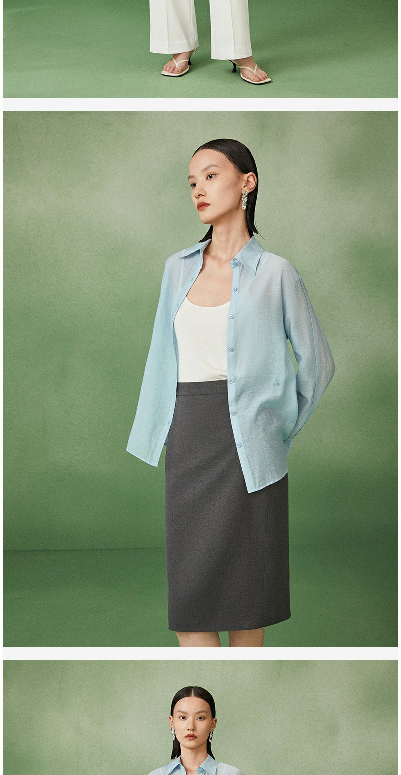 西嘉C+IMPRESS/西嘉天丝麻简约清透斜襟两穿薄款夏季防晒衬衫通勤穿搭CS2202013