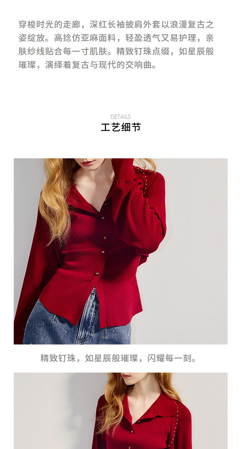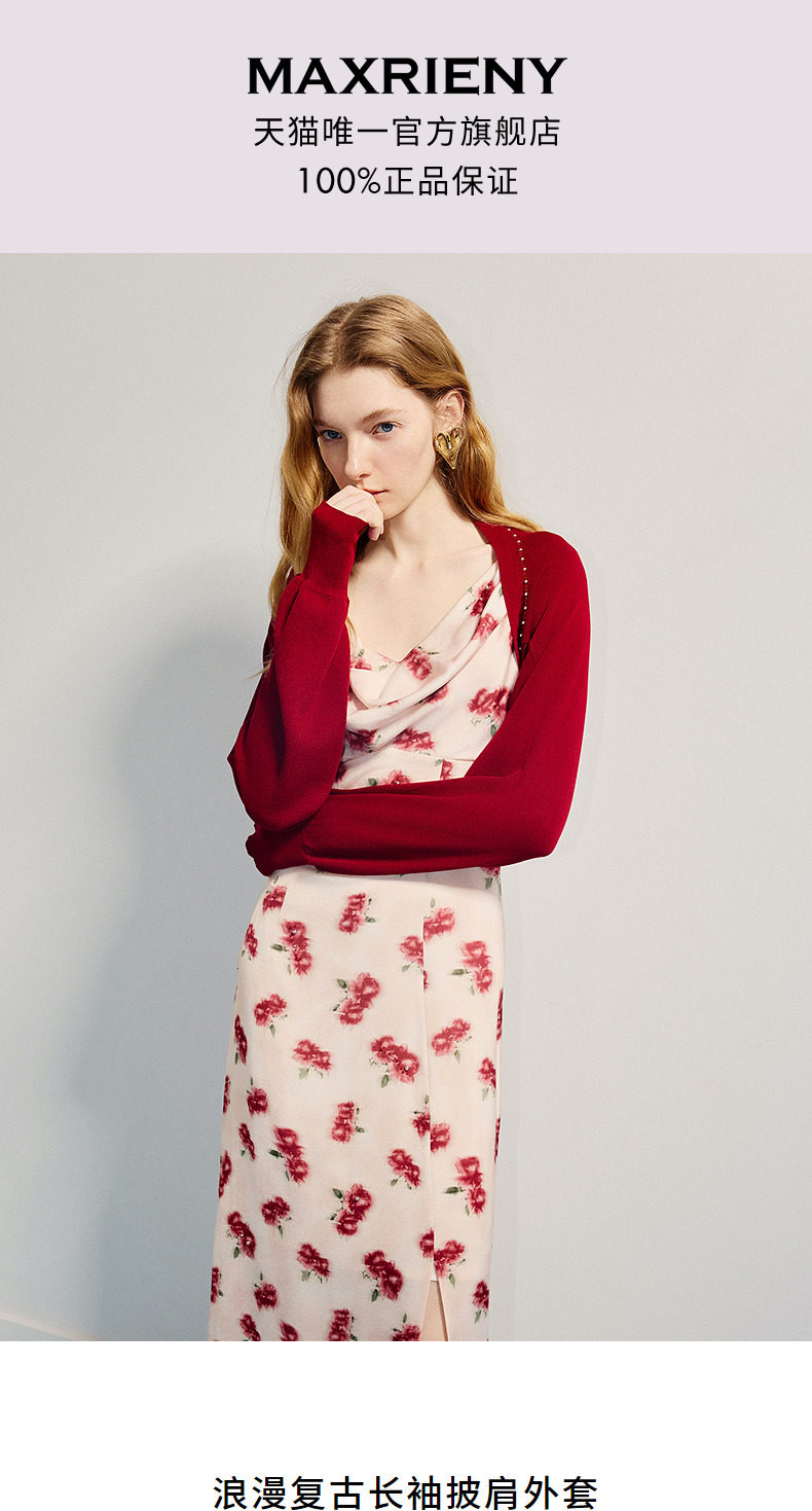 【商场同款-浅春系穿搭】MAXRIENY浪漫复古长袖披肩外套女开衫(货号:MC86JA048)