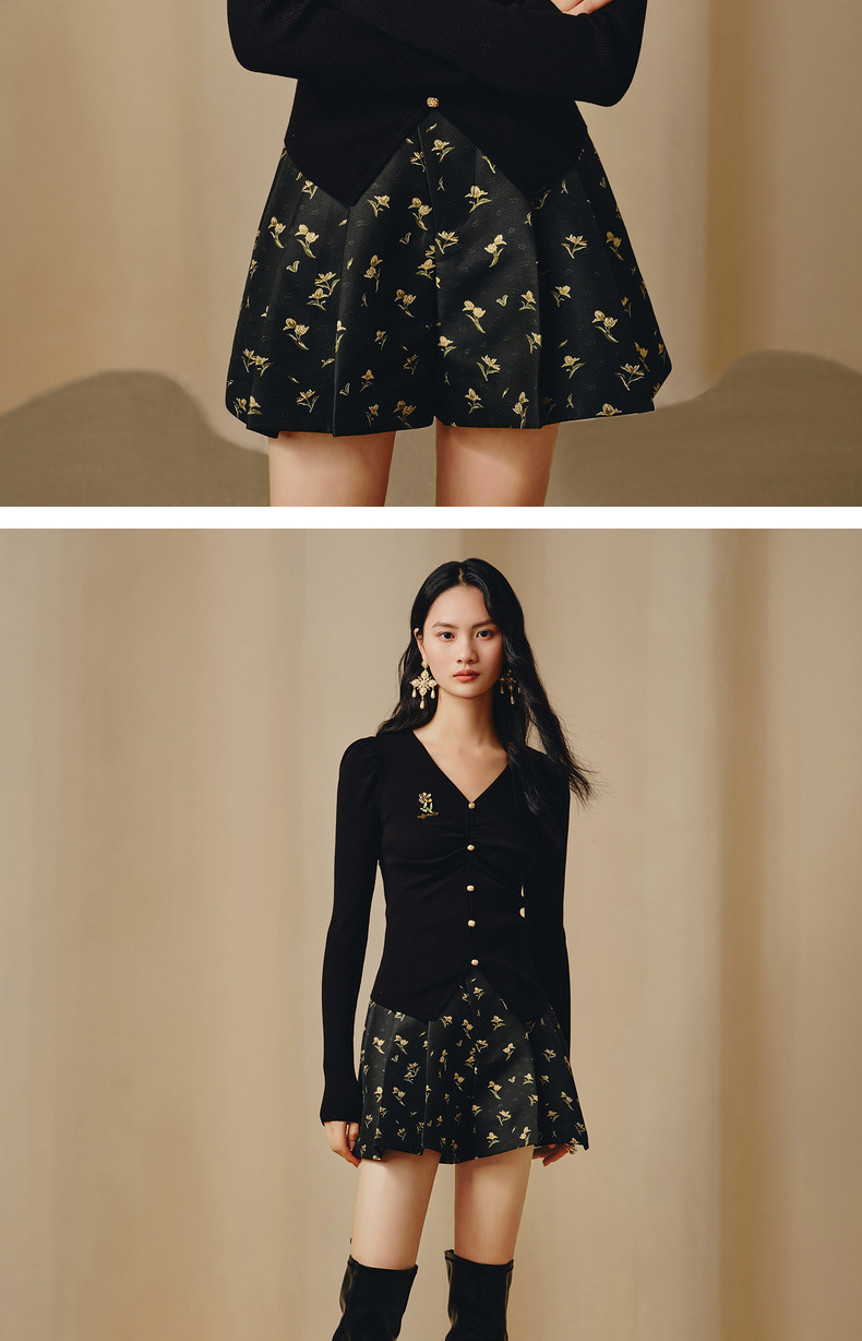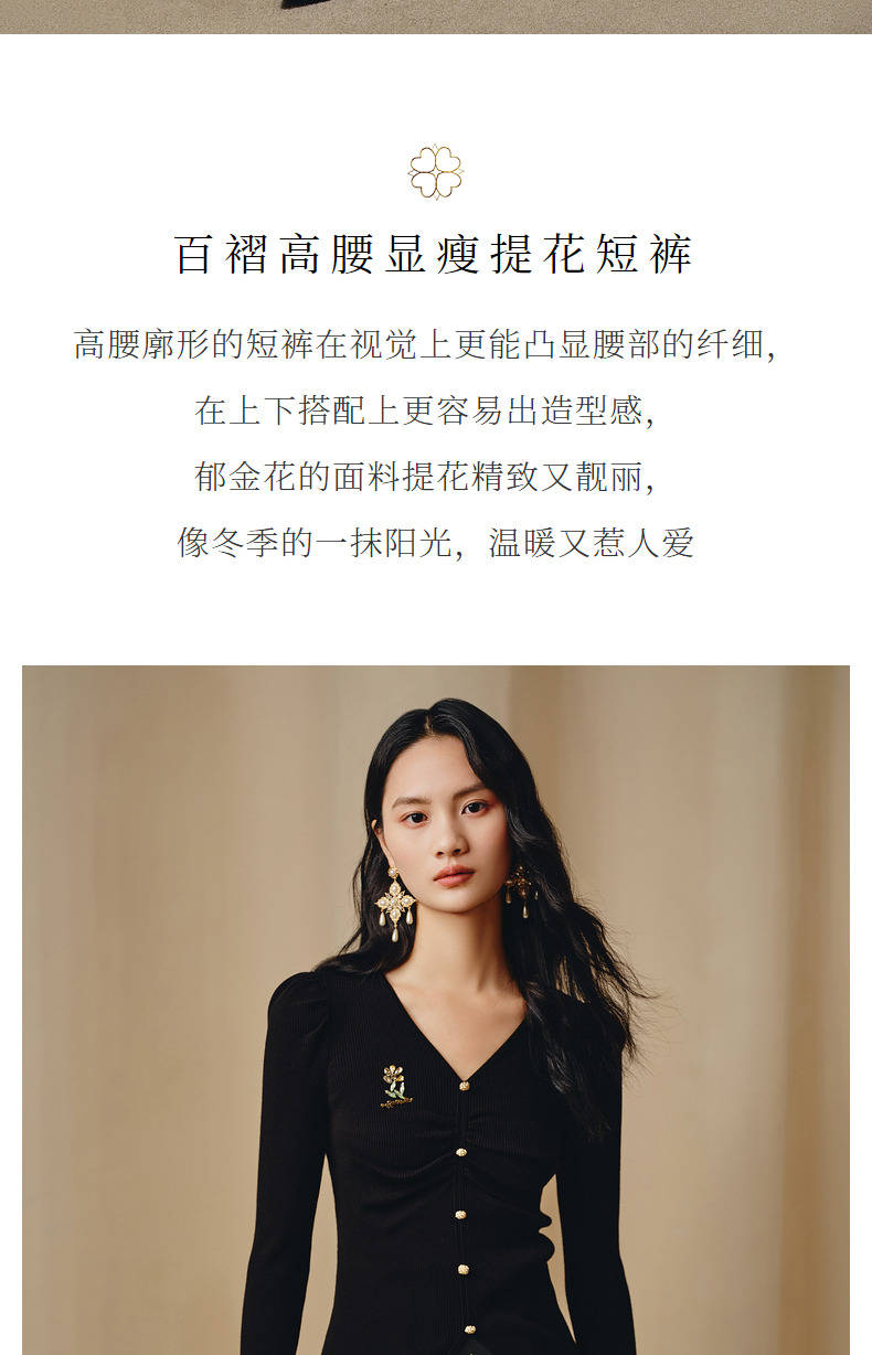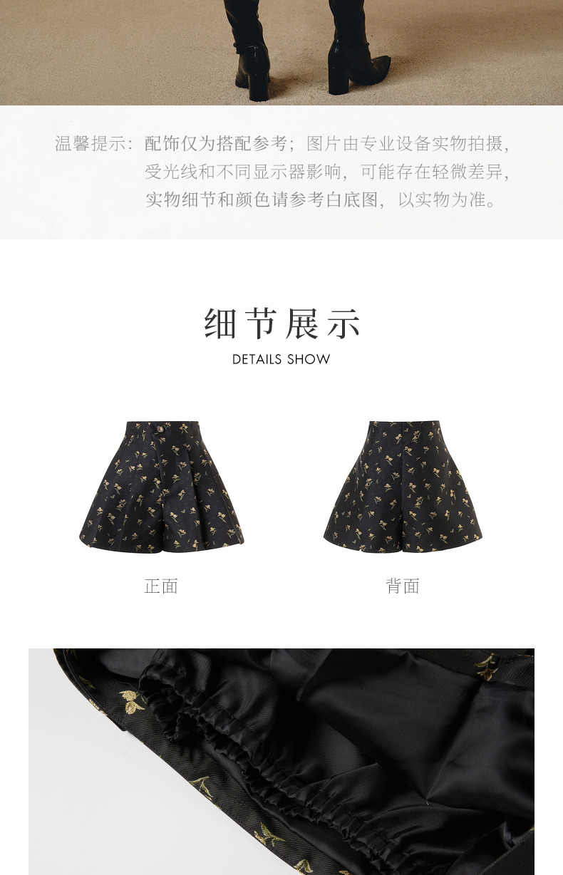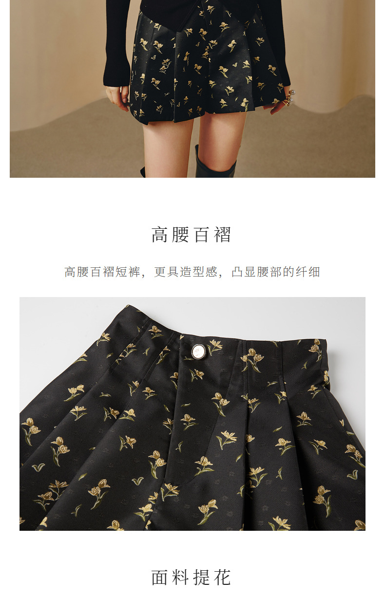 MAXRIENY宫廷复古郁金花提花高腰百褶短裤裙裤(货号:MC88PA792)