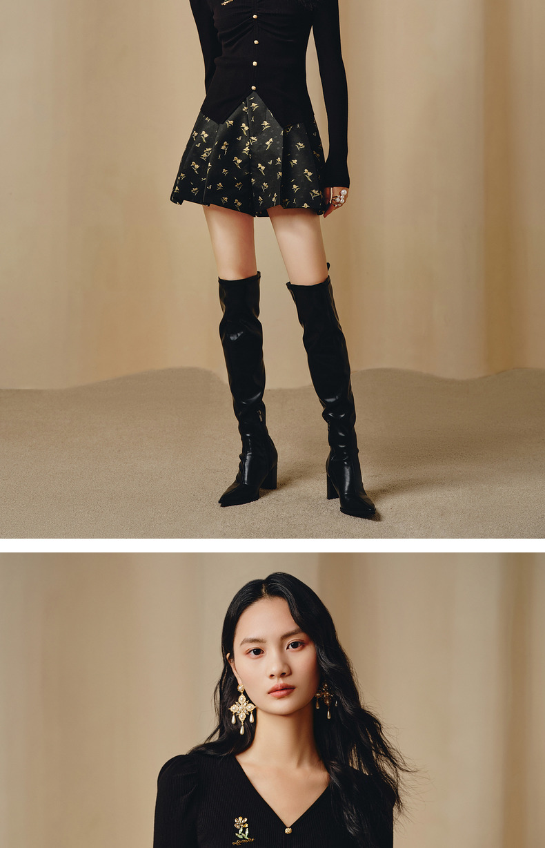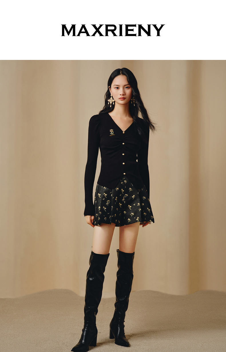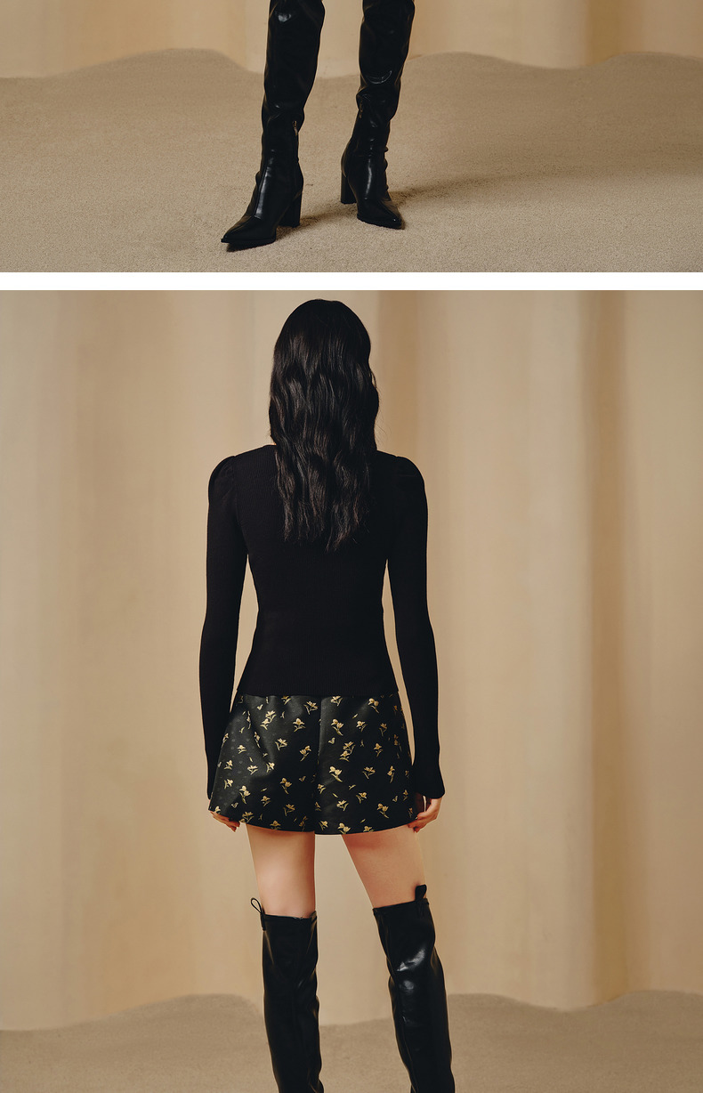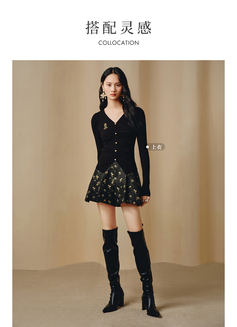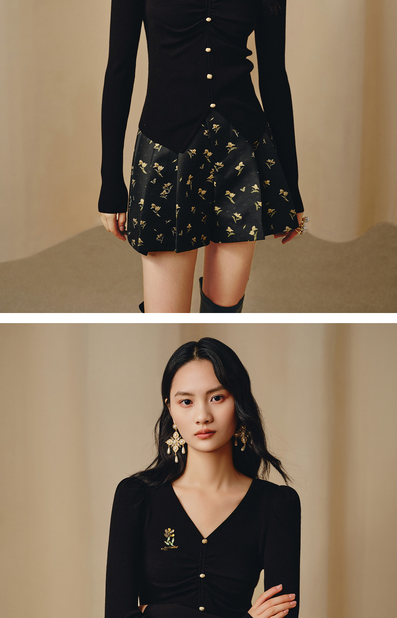 MAXRIENY宫廷复古郁金花提花高腰百褶短裤裙裤(货号:MC88PA792)
