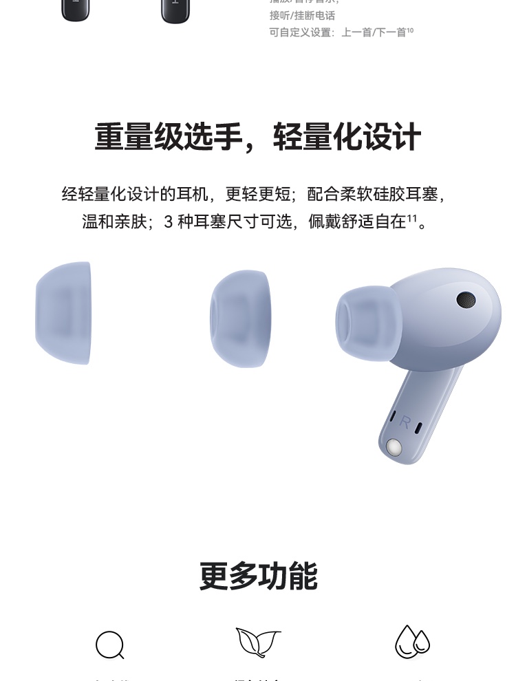 耳机X 1对 、充电盒X 1 TypeC 充电线X 1、 快速指南&安全信息&三包凭证X 1 、耳塞X 3对(大、中、小,其中中号出厂时放到耳机上)