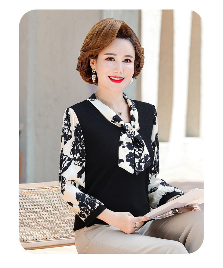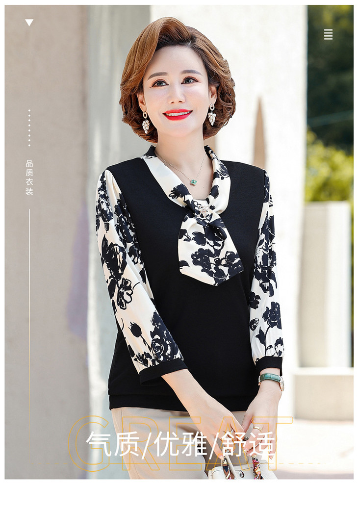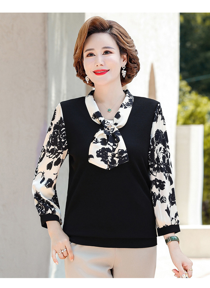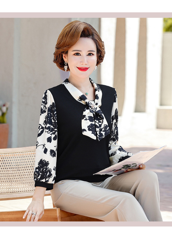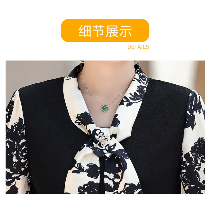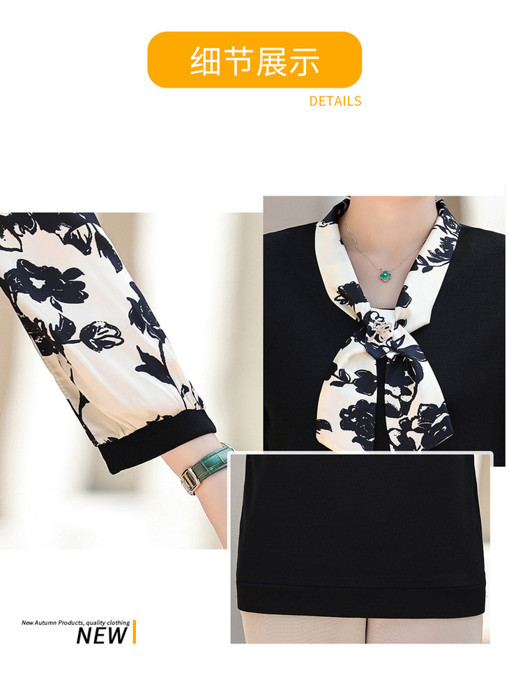 YMS-AA1374新款时尚优雅气质系带领长袖水墨画针织打底衫
