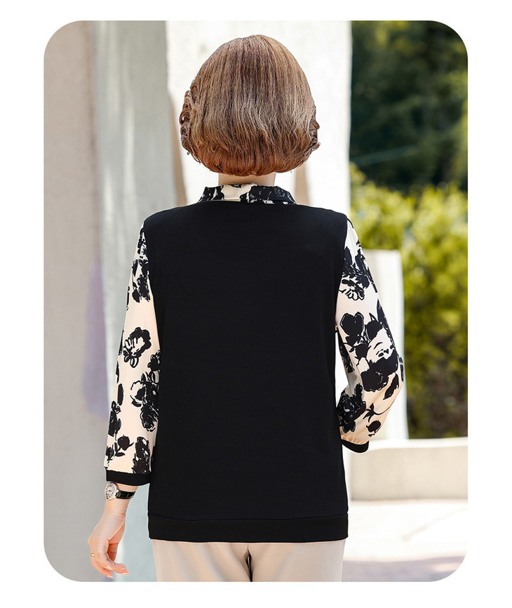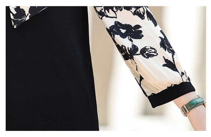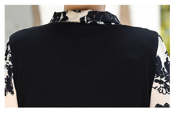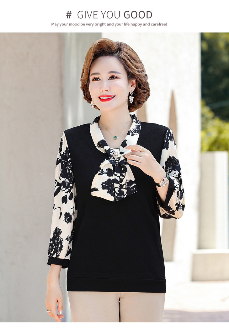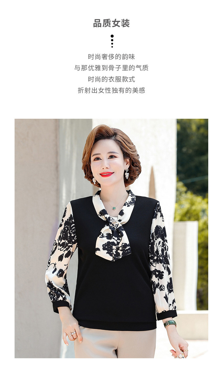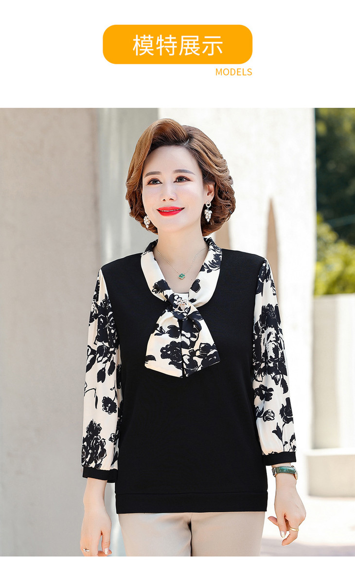 YMS-AA1374新款时尚优雅气质系带领长袖水墨画针织打底衫
