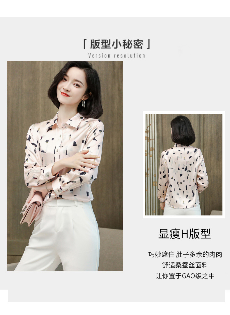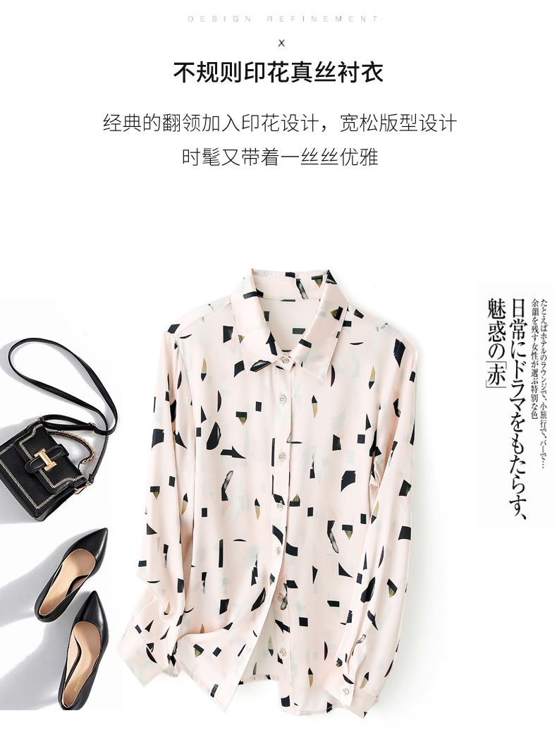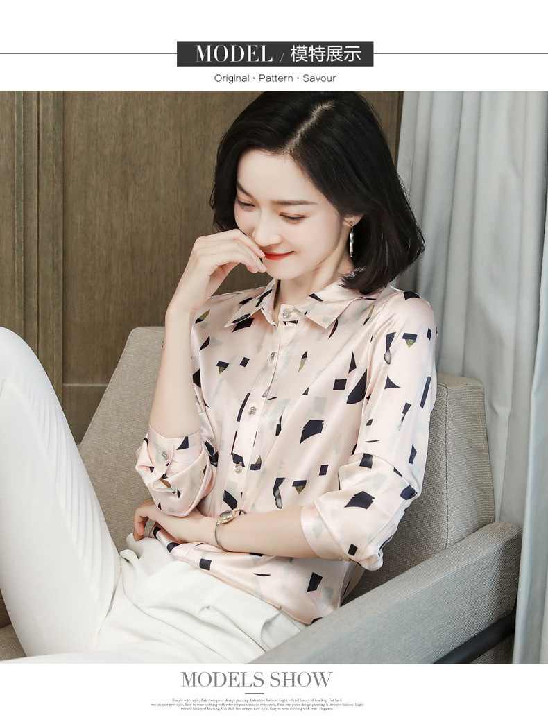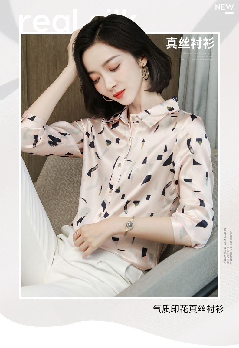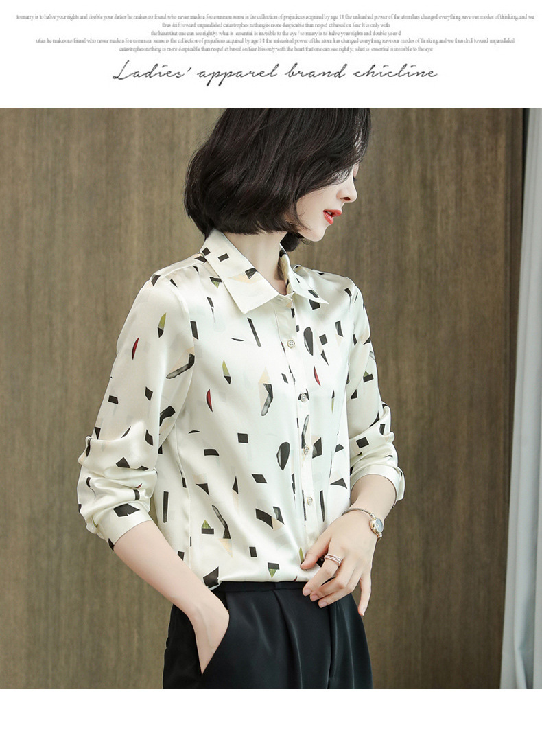 上海旗袍厂ASE-9076印花方领单排扣真丝衬衫