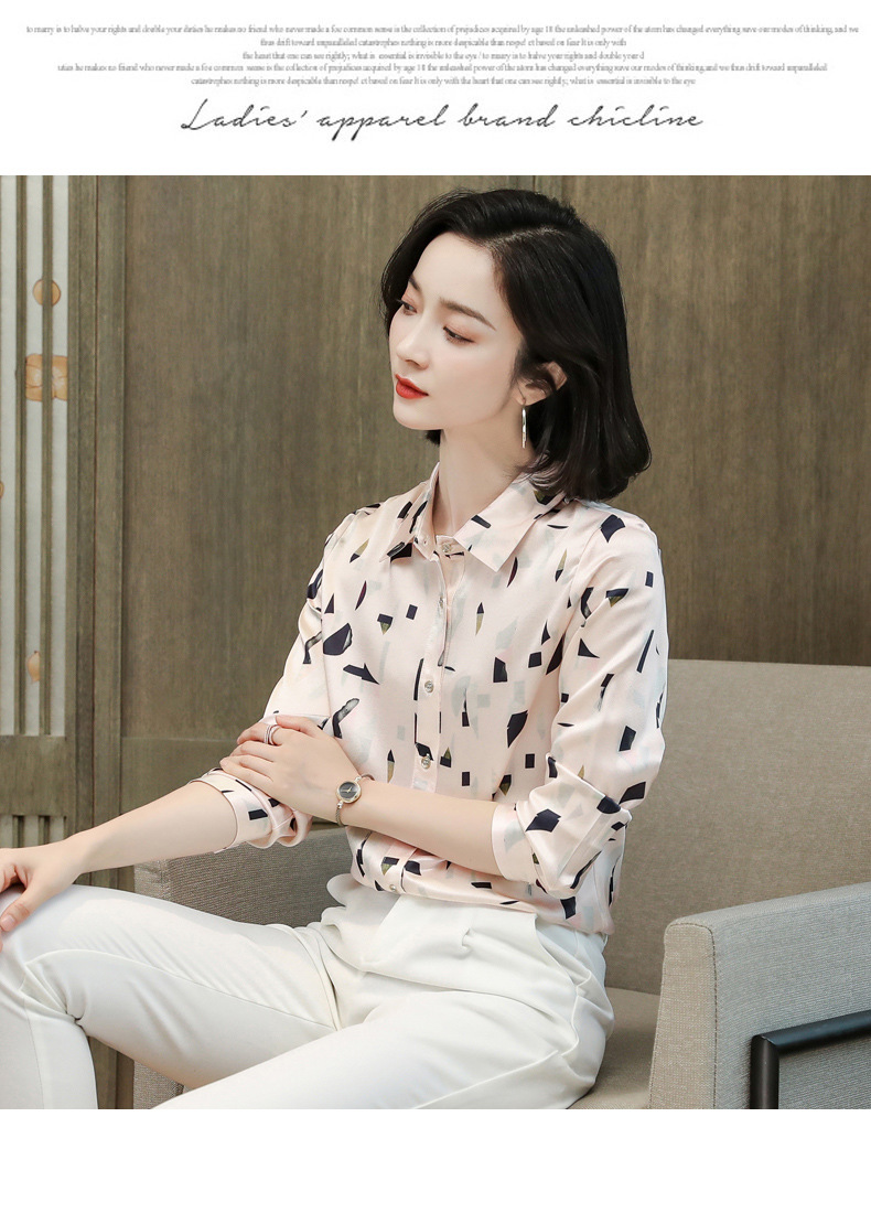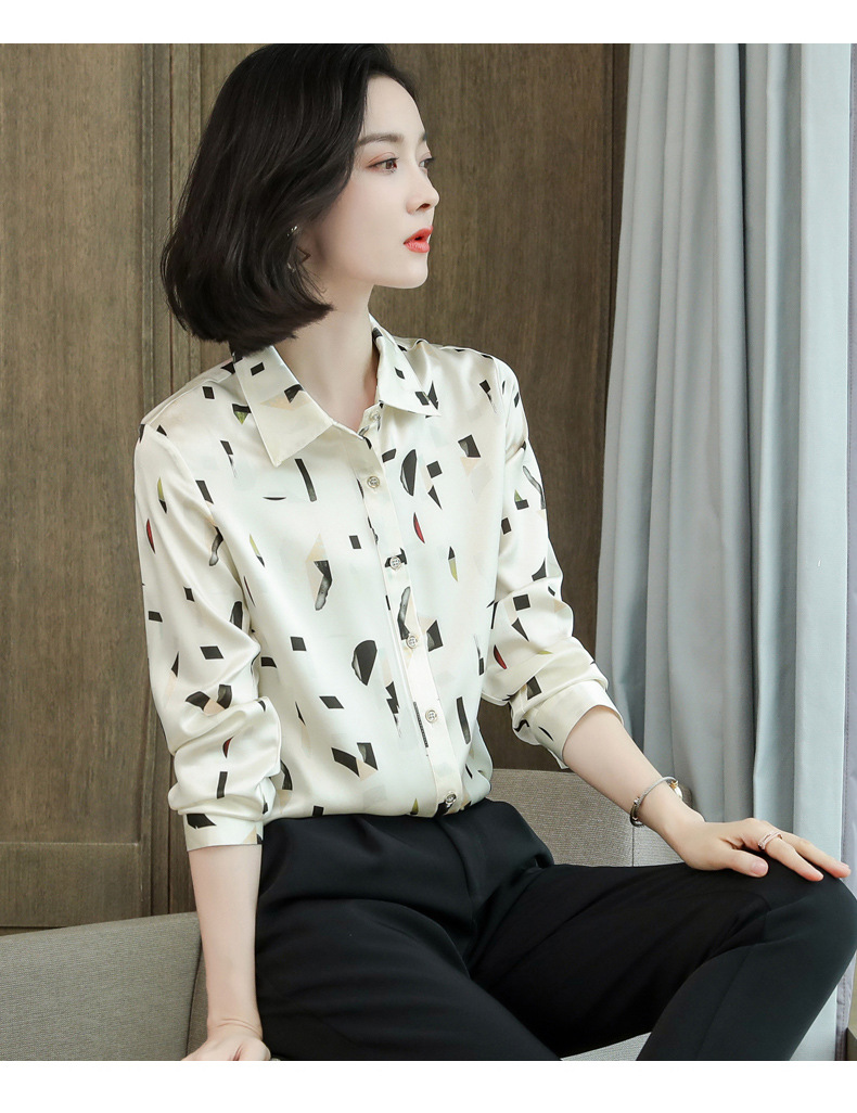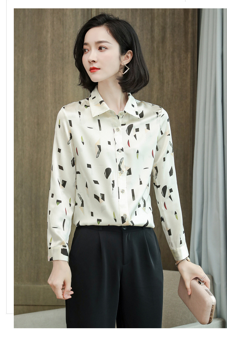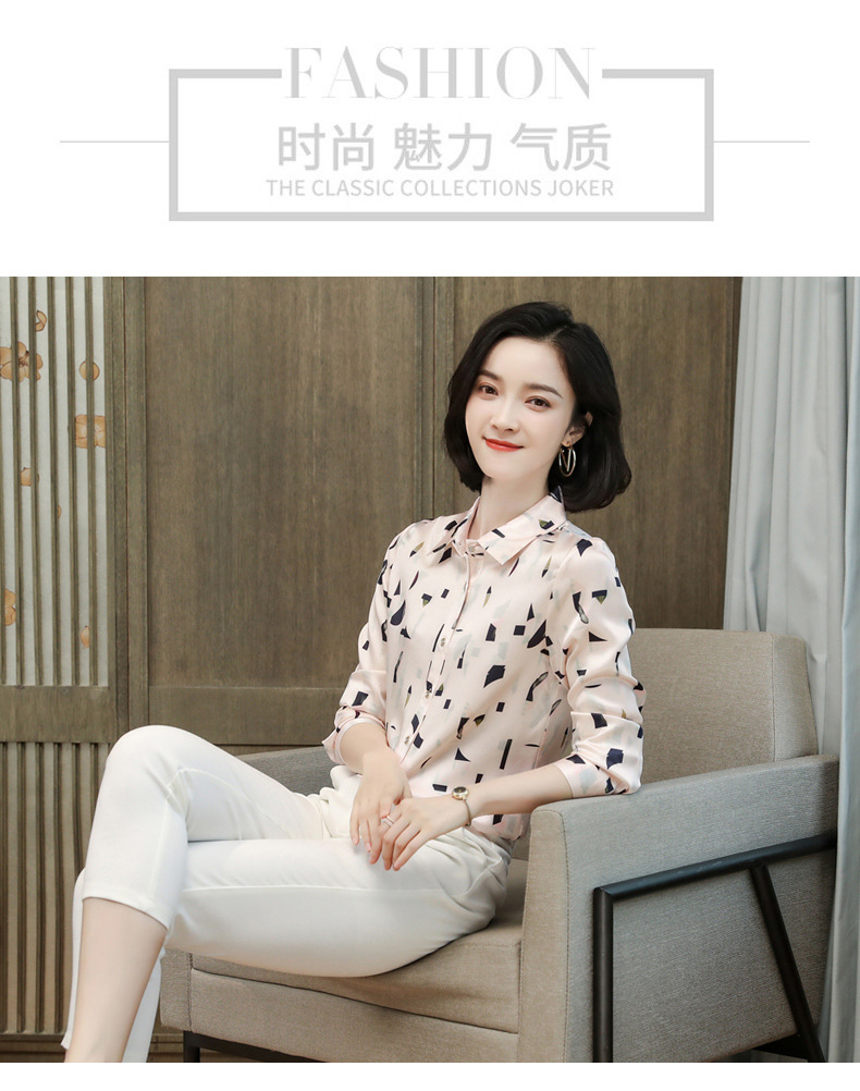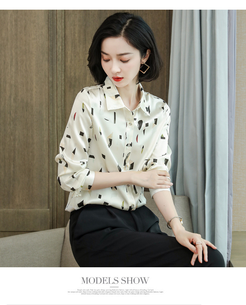 上海旗袍厂ASE-9076印花方领单排扣真丝衬衫