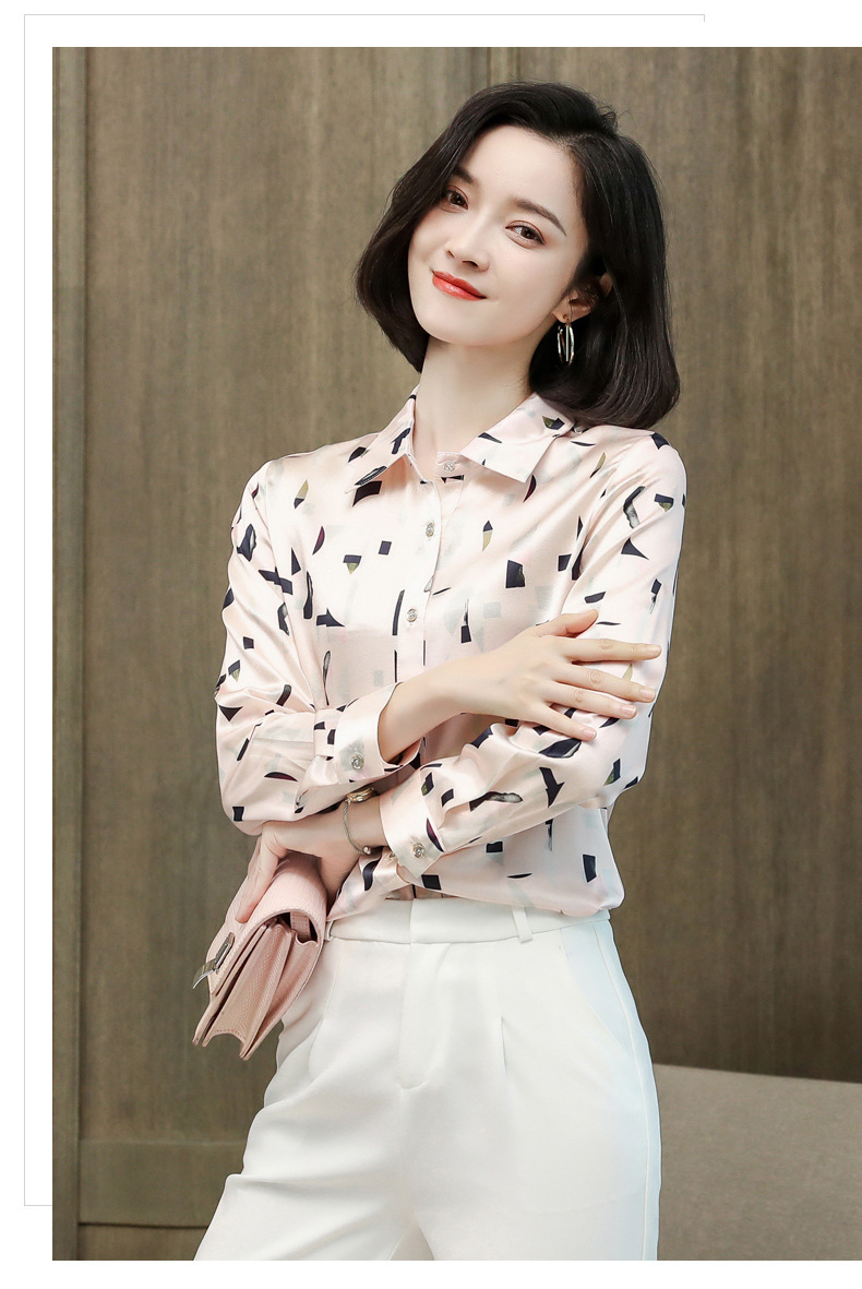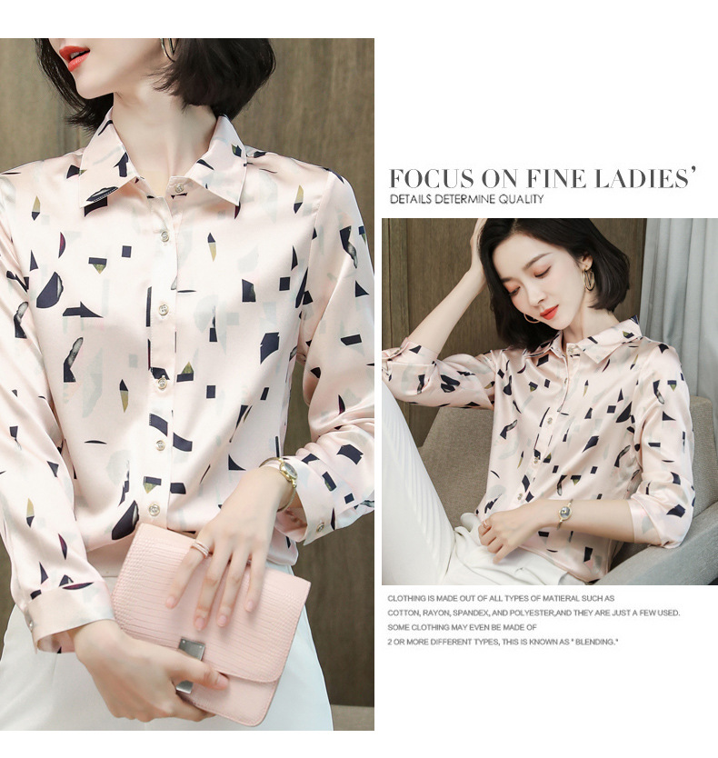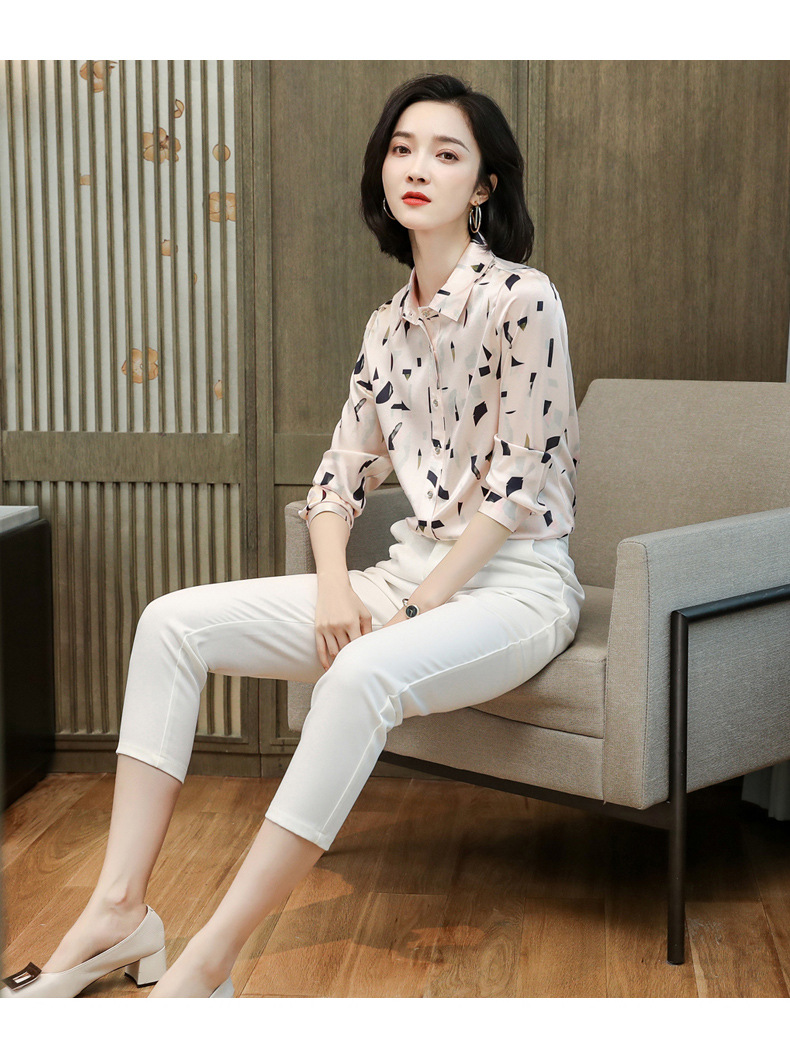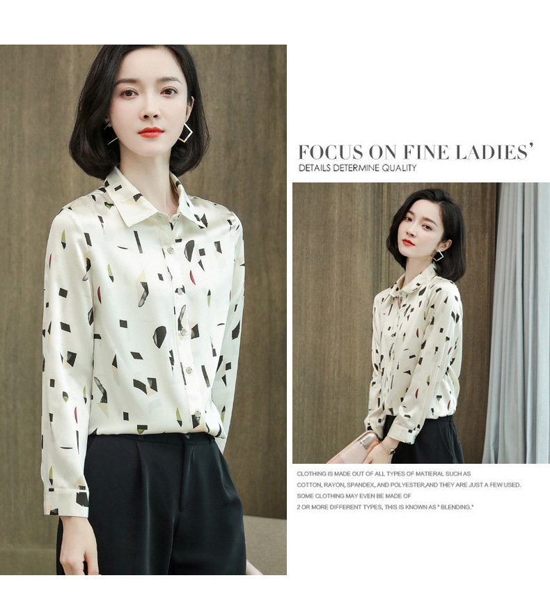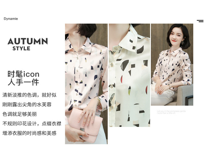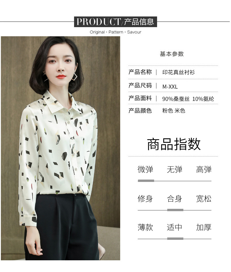 上海旗袍厂ASE-9076印花方领单排扣真丝衬衫