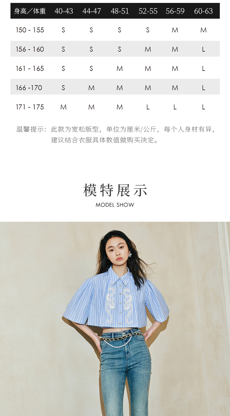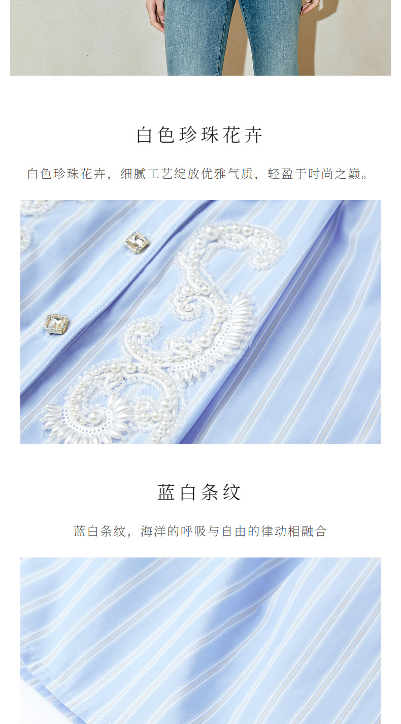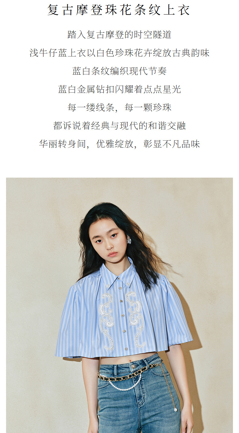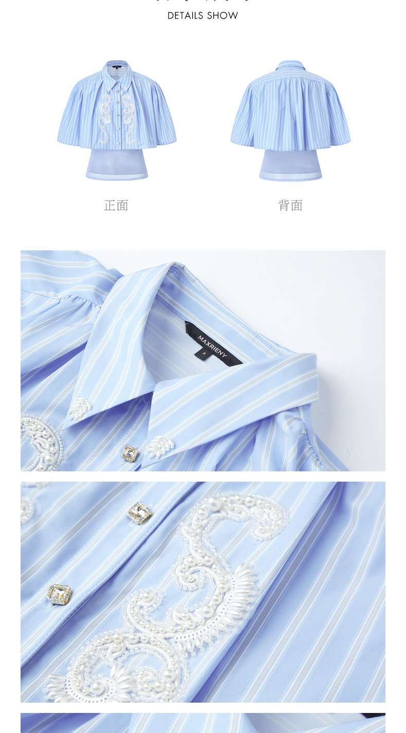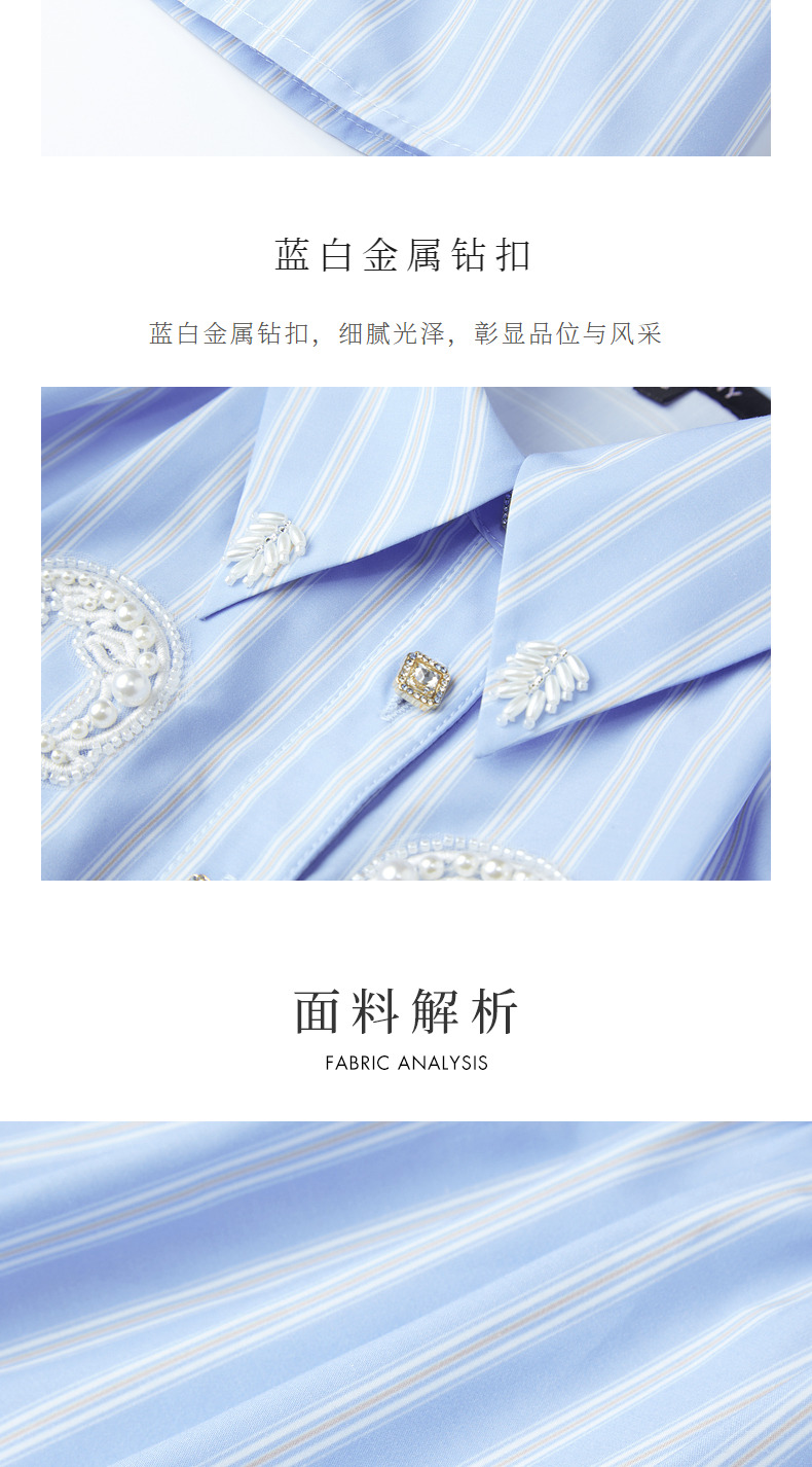 【英式雅皮士-商场同款】MAXRIENY复古摩登珠花条纹上衣衬衫女(货号:MC85TP033)