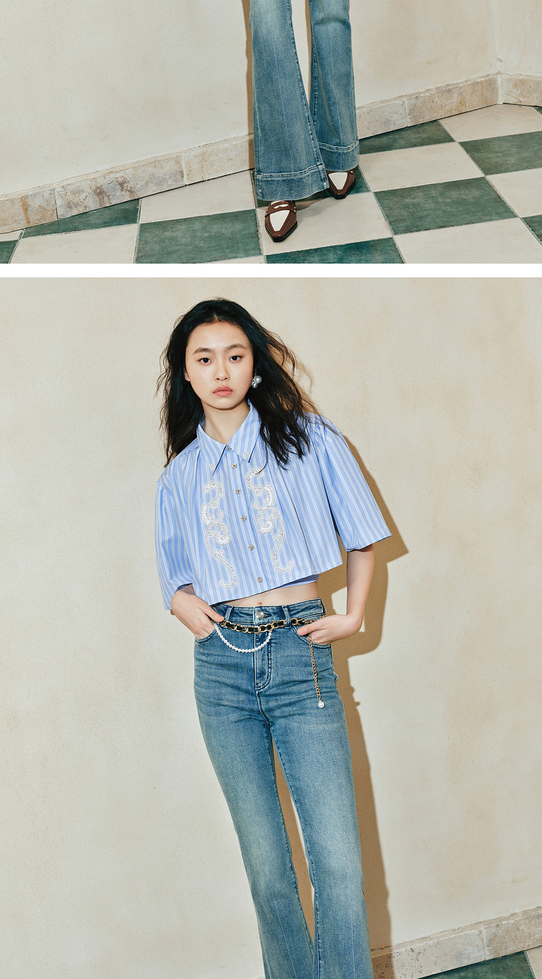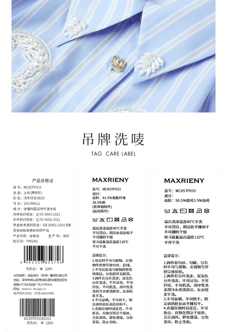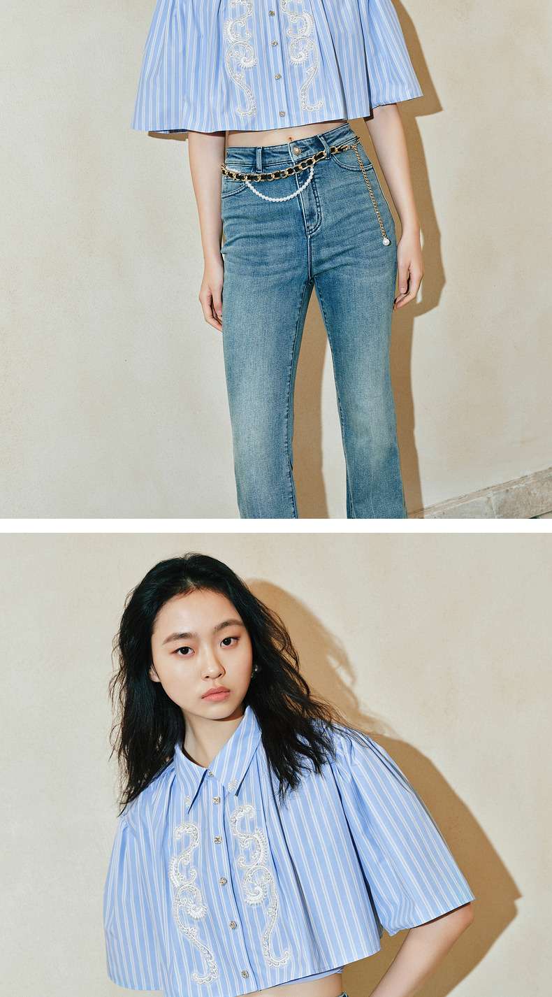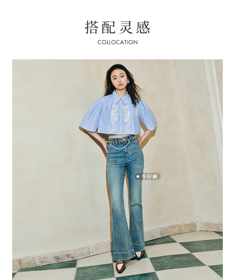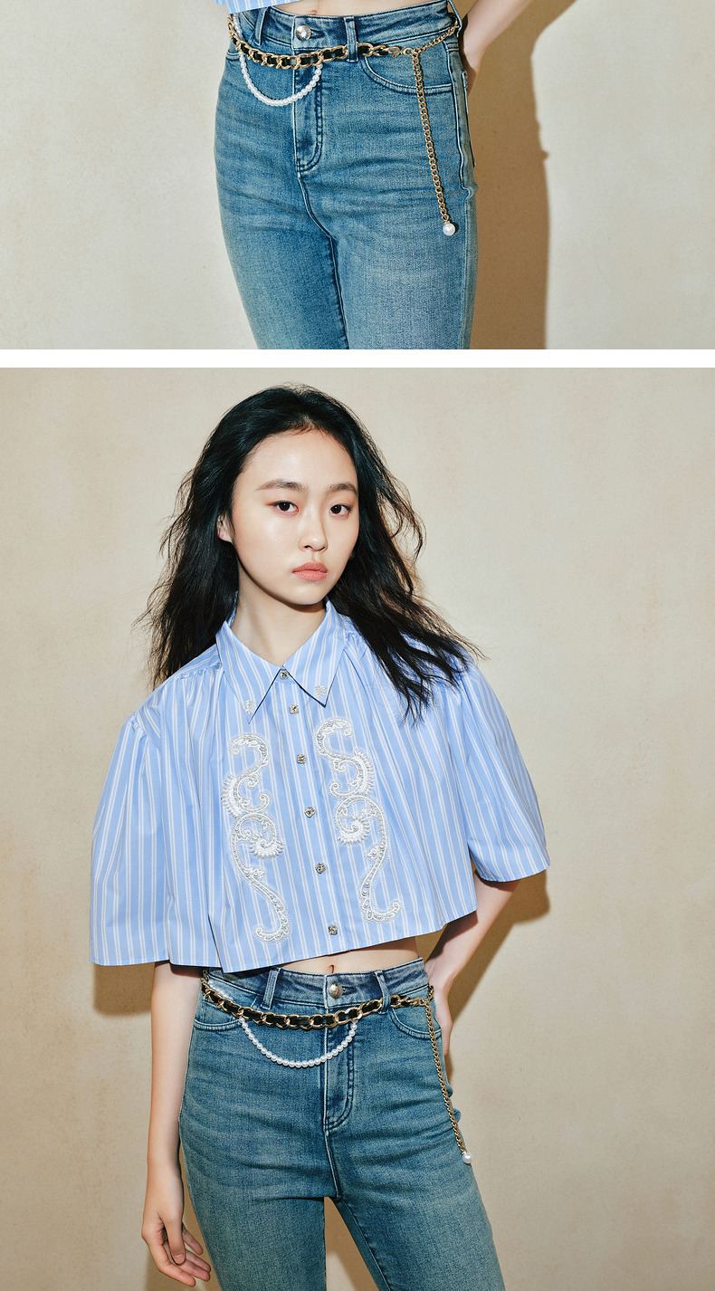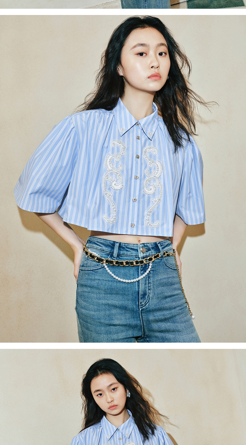 【英式雅皮士-商场同款】MAXRIENY复古摩登珠花条纹上衣衬衫女(货号:MC85TP033)