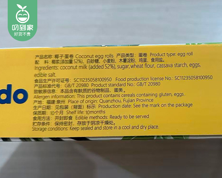 【预售-12月22日配送】美伦多椰子蛋卷/1盒(5包,共248g)生产日期:25年8月